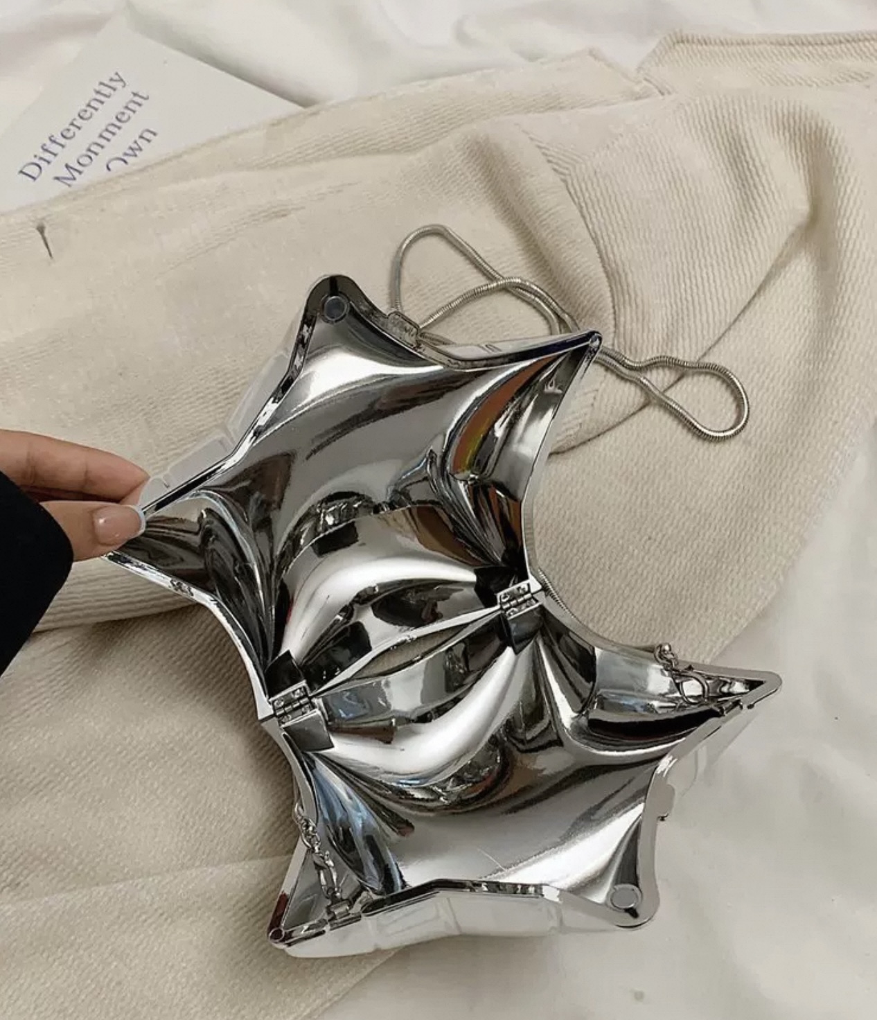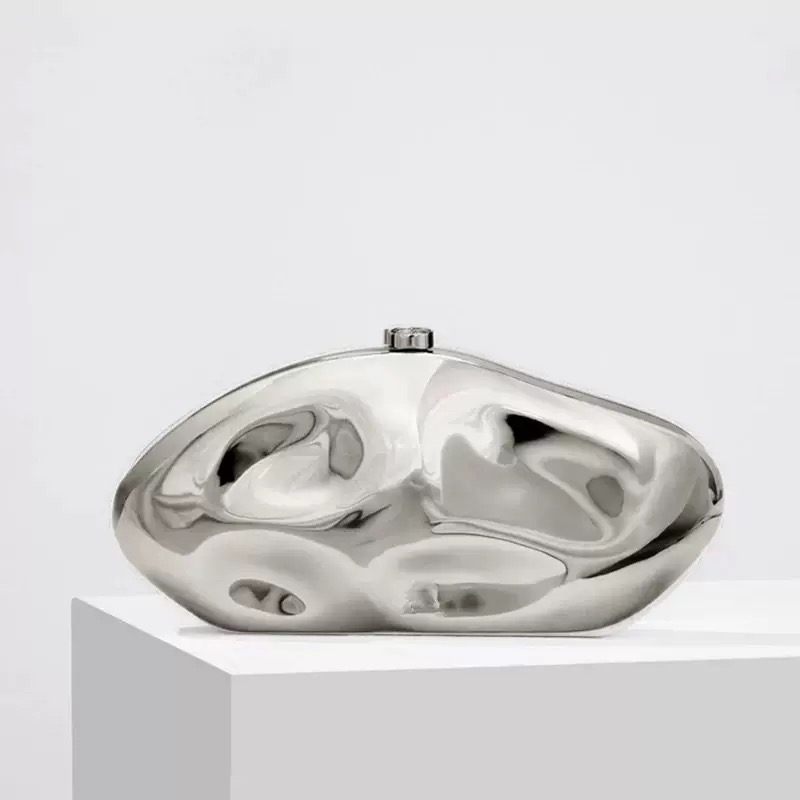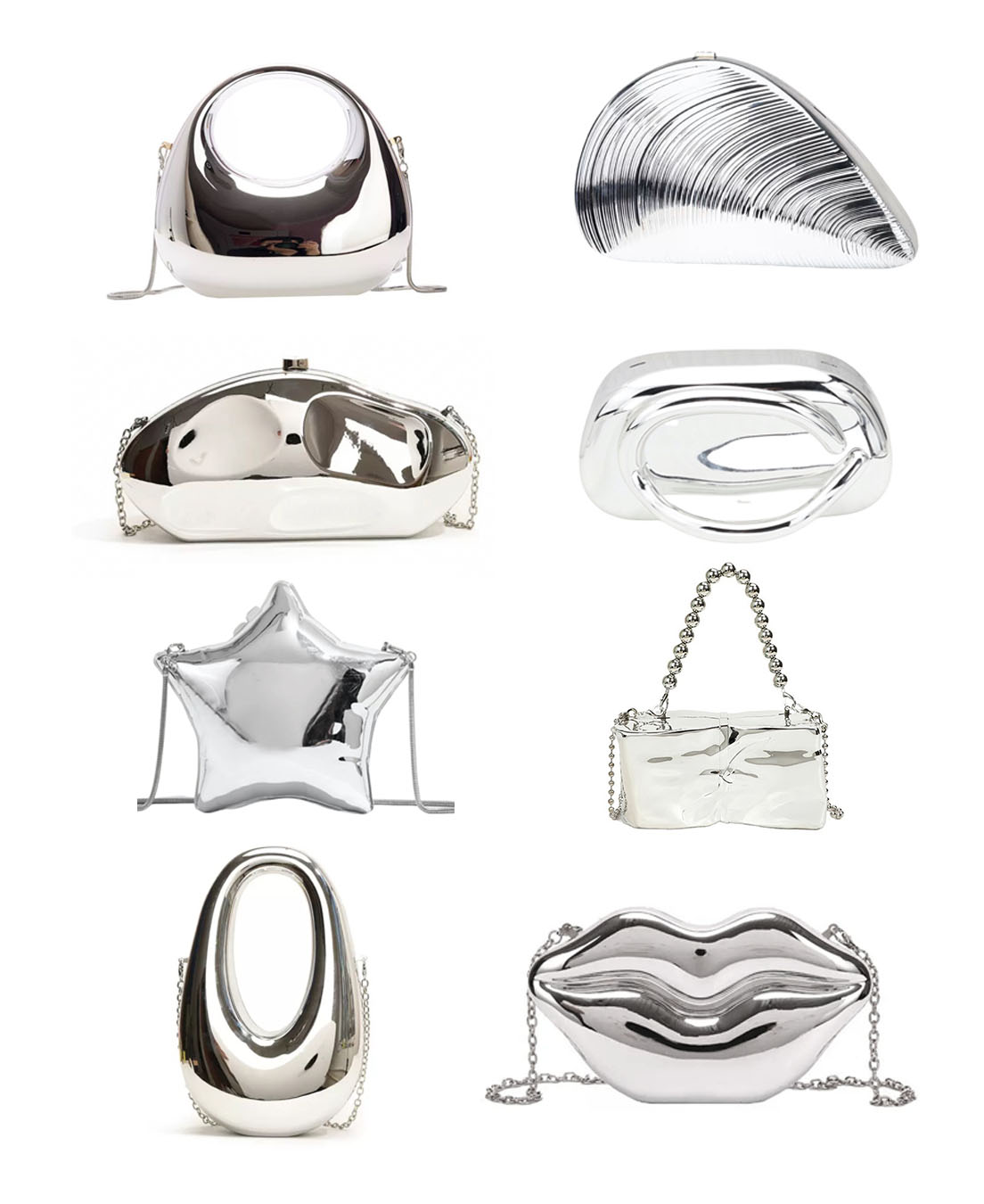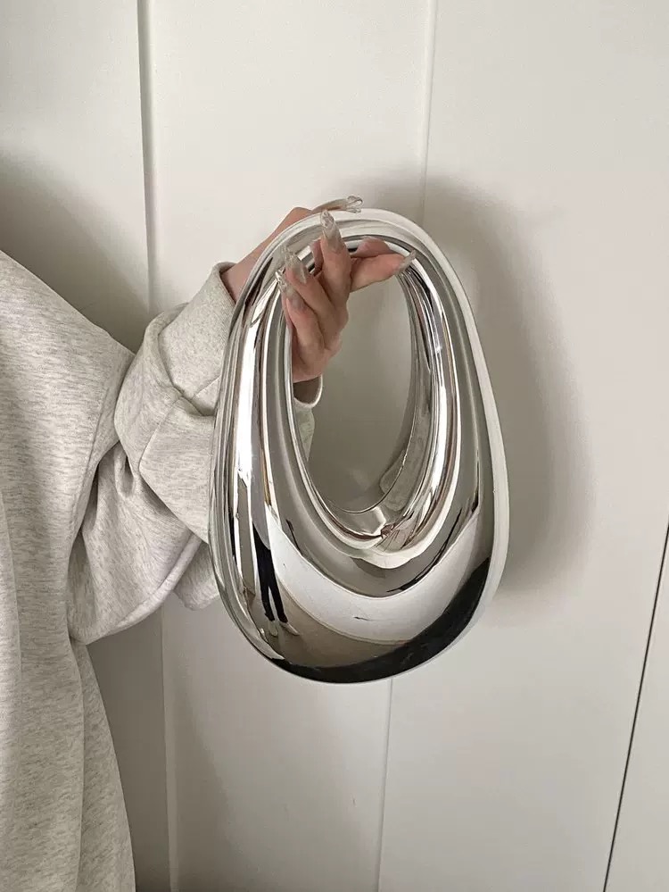 New Foreign Trade Clutch Bag for Storing Mobile Phones, Lipstick, and Keys, Silver Metal, Birthday Gift-Like, Portable Crossbody Bag