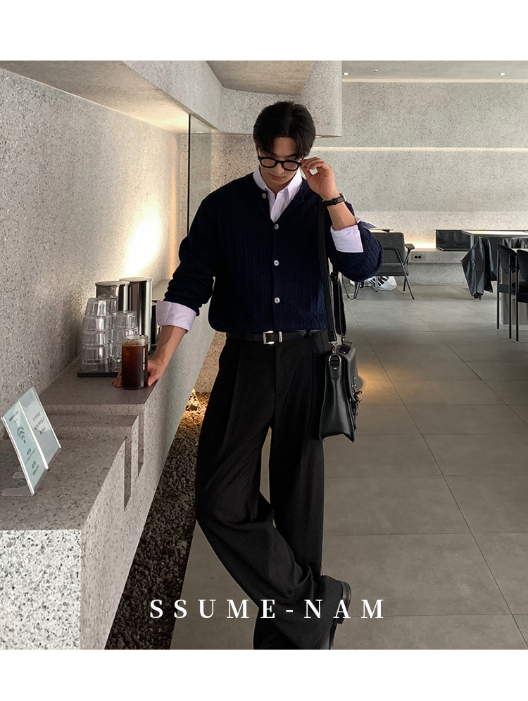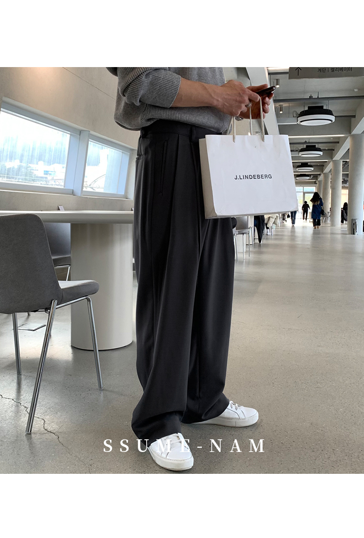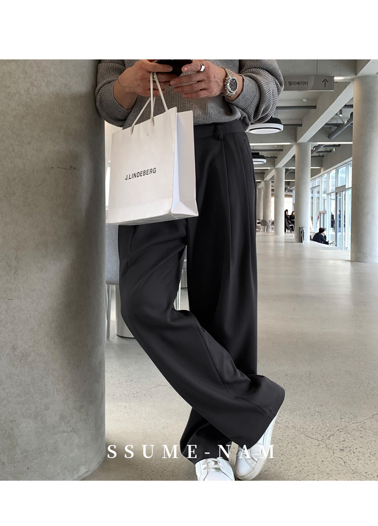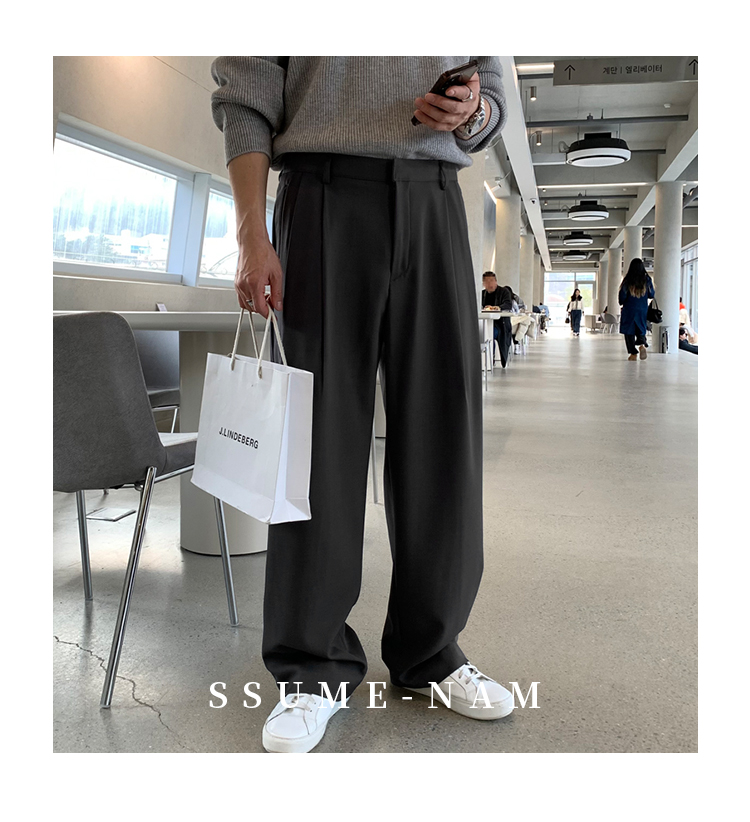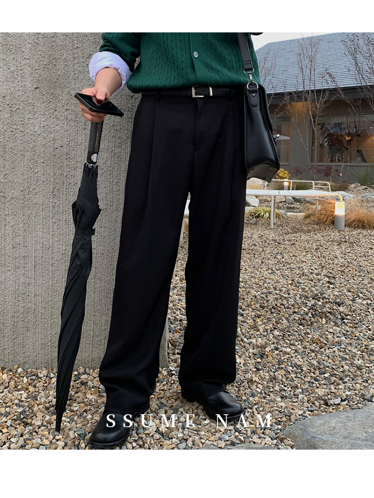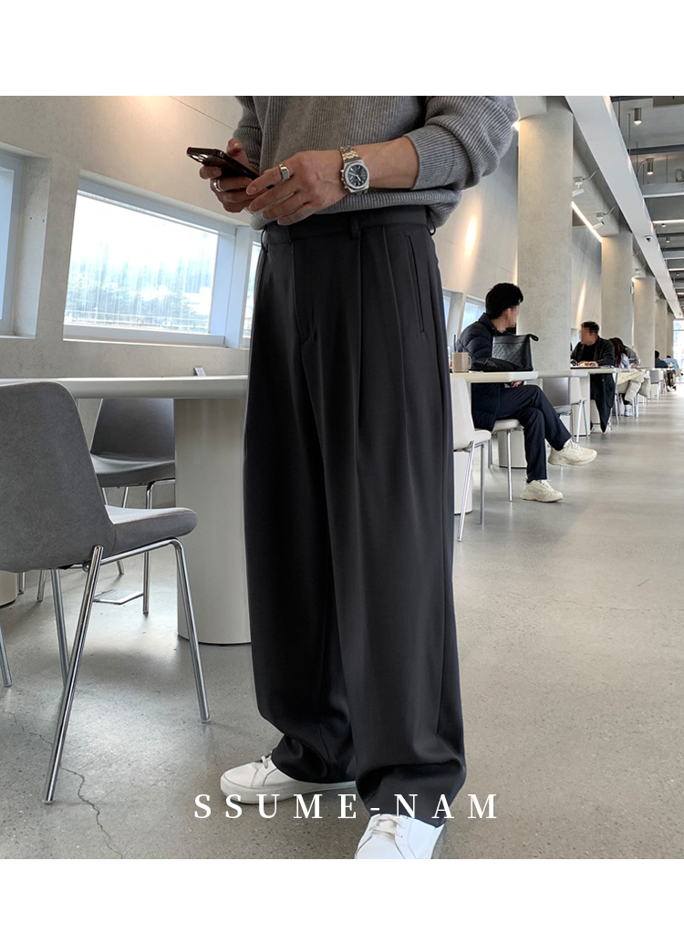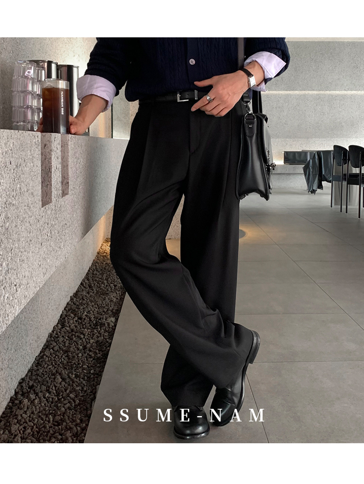 Ssumenam「Tr Blend Old Money New Rich」Gray Suit Pants Men's Autumn and Winter Loose Drape Casual Pants High-End