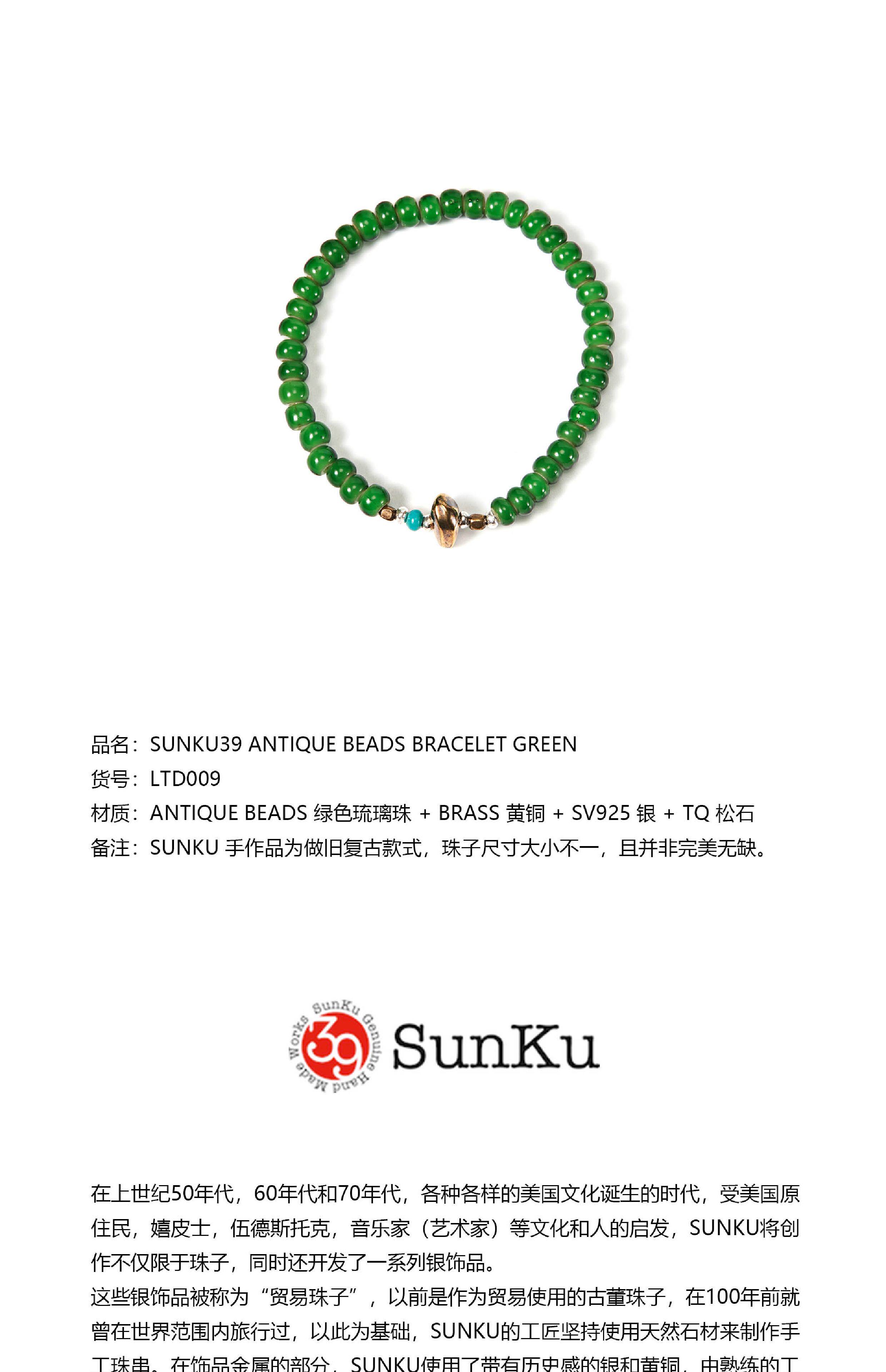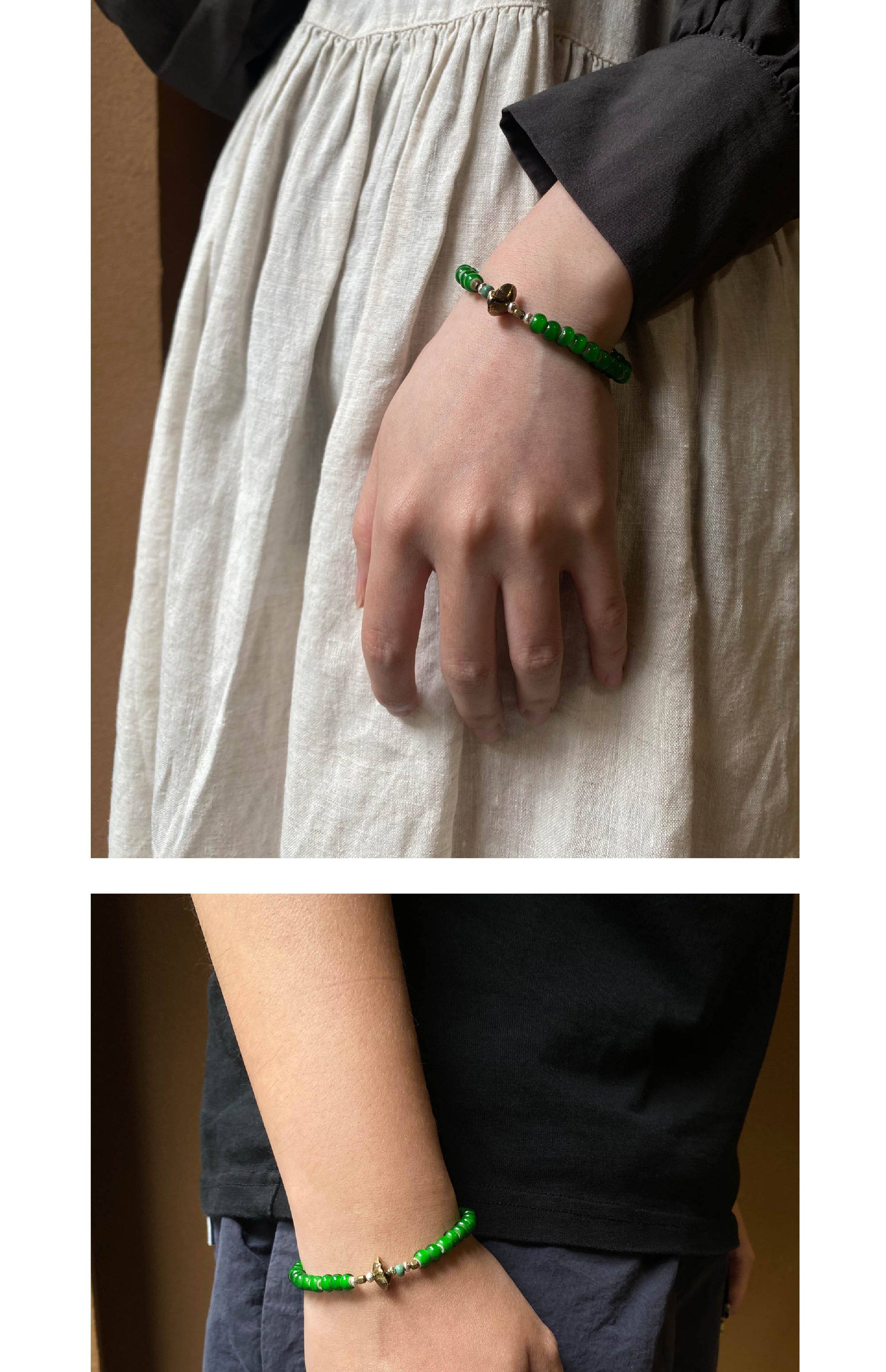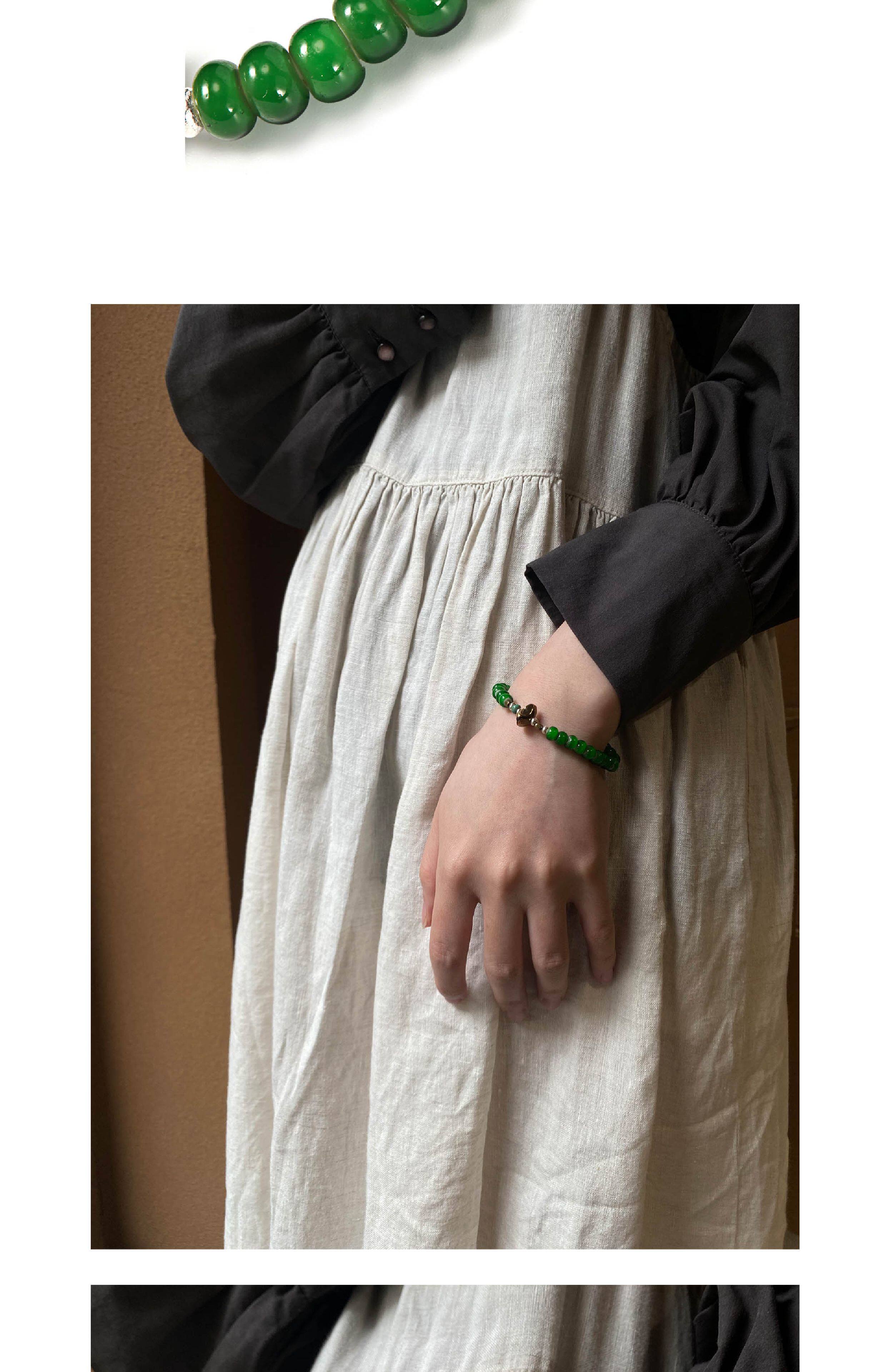 =Silvarie=Sunku39 Japanese-Made American Retro Japanese Style Green Antique Glass Bead Bracelet