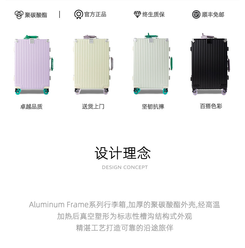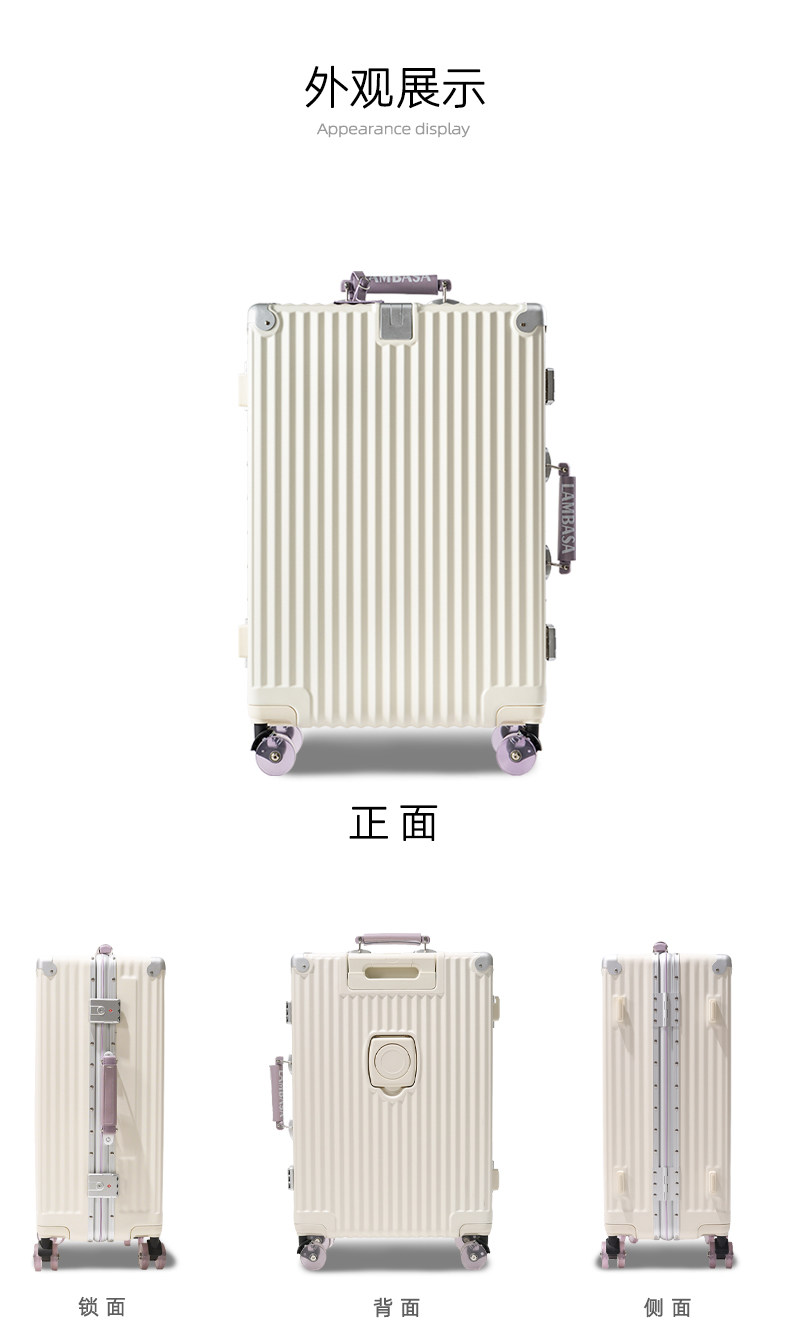 2026 New Model Suitcase 20inch Stylish Aluminum Frame Travel Suitcase for Women, Carry-On Size with Combination Lock, Trolley Case for Men 24