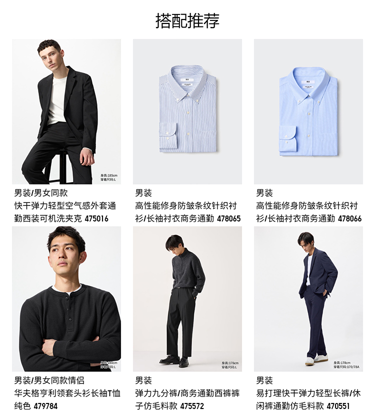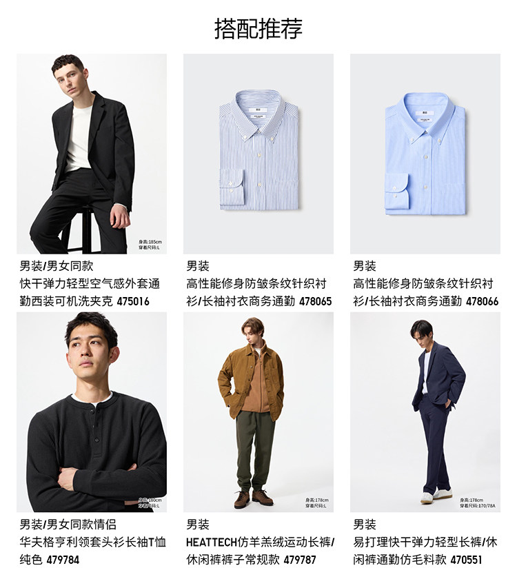 Uniqlo Men's High-Performance Slim-Fit Wrinkle-Resistant Knit Shirt/Long-Sleeve Shirt for Commuting 478073 477946