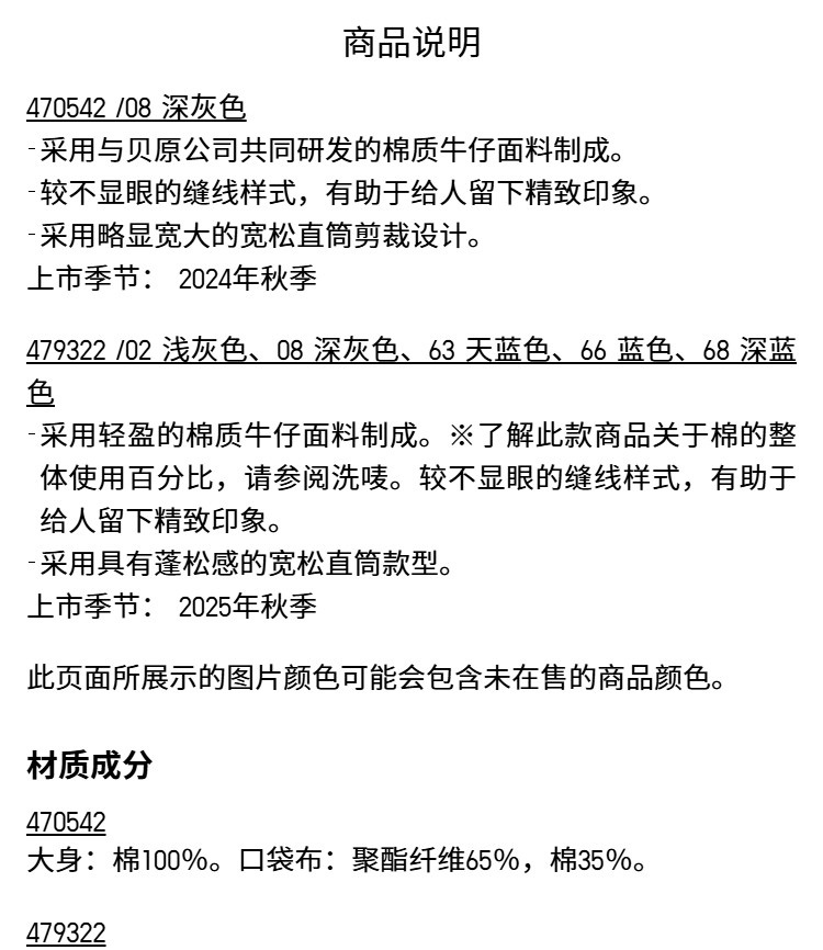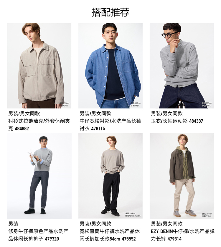 UNIQLO Men's Women's Clothing Loose Straight-leg Denim/Washed Products 25 Fall and winter New arrival 479322