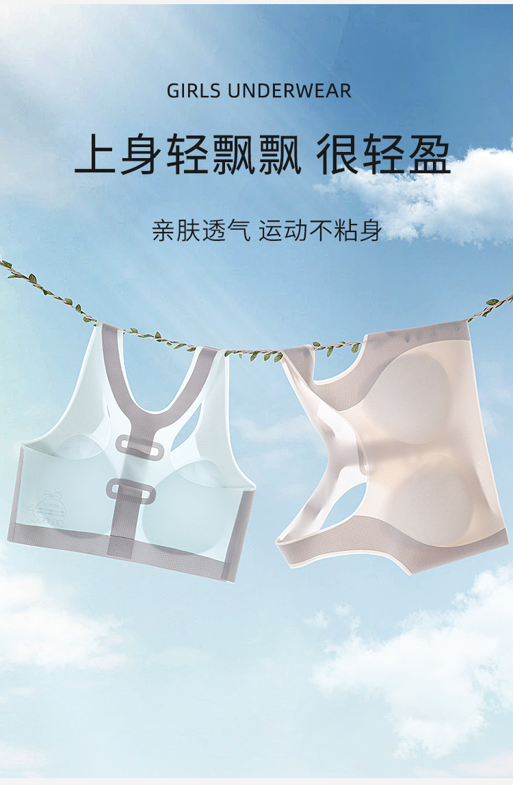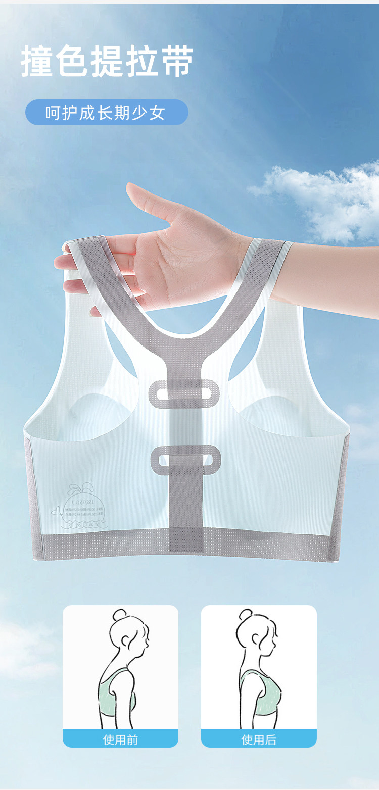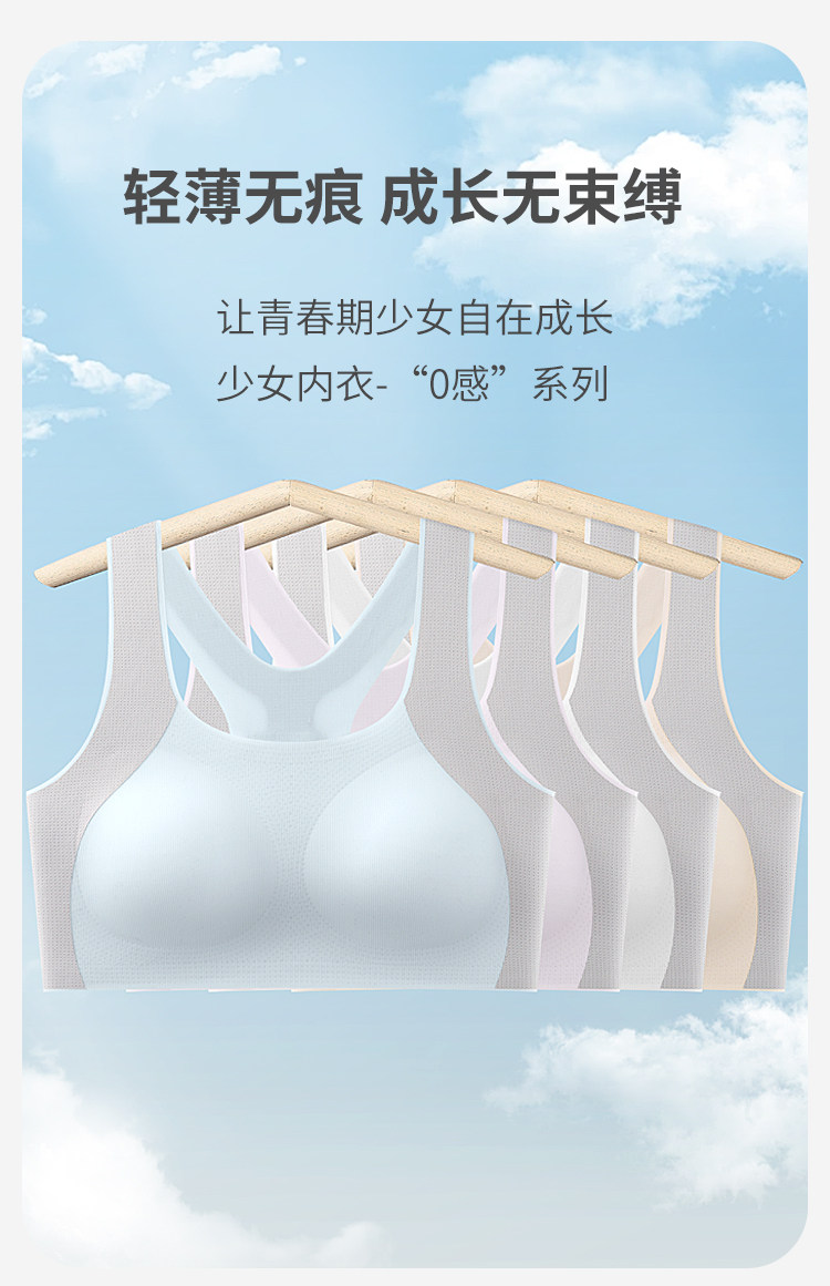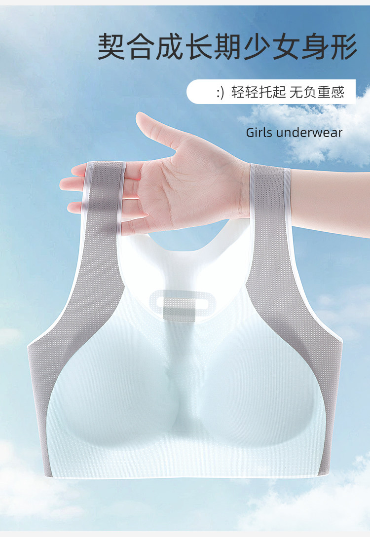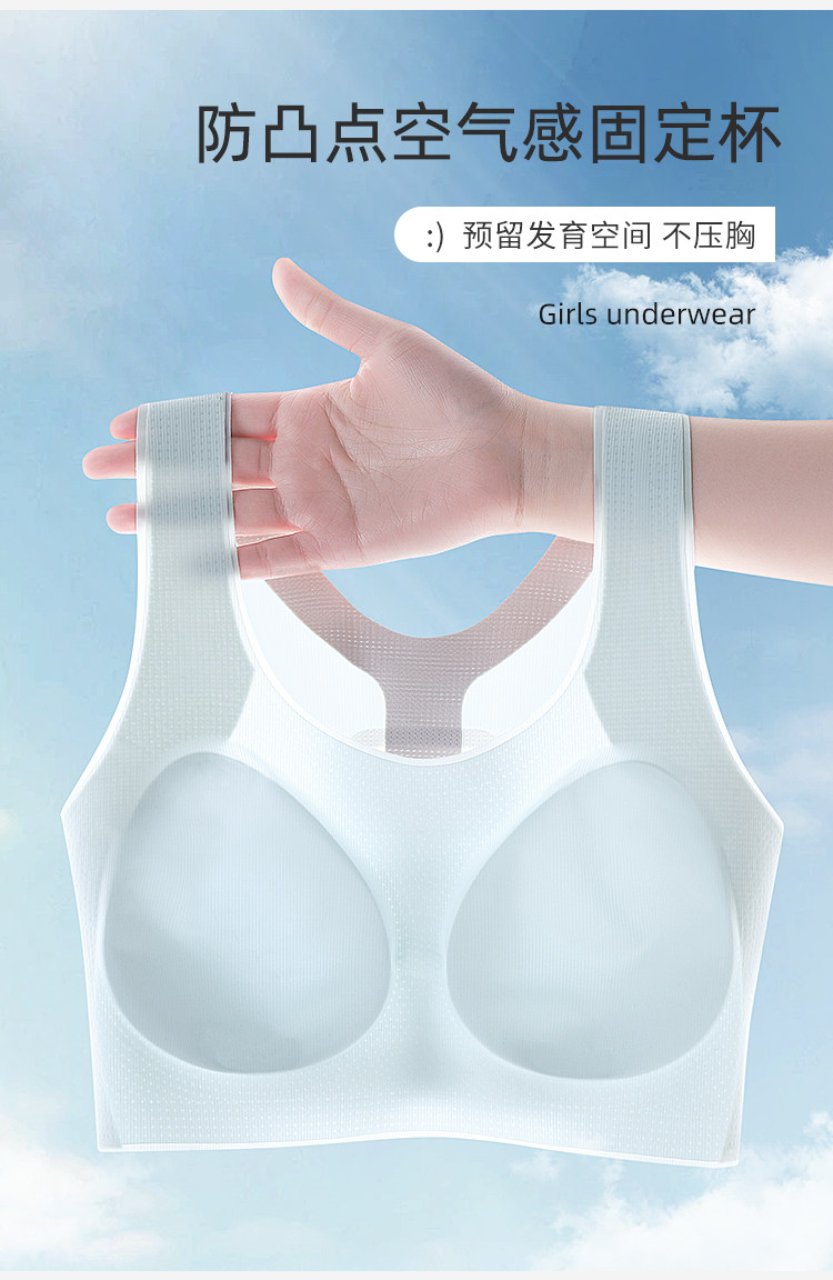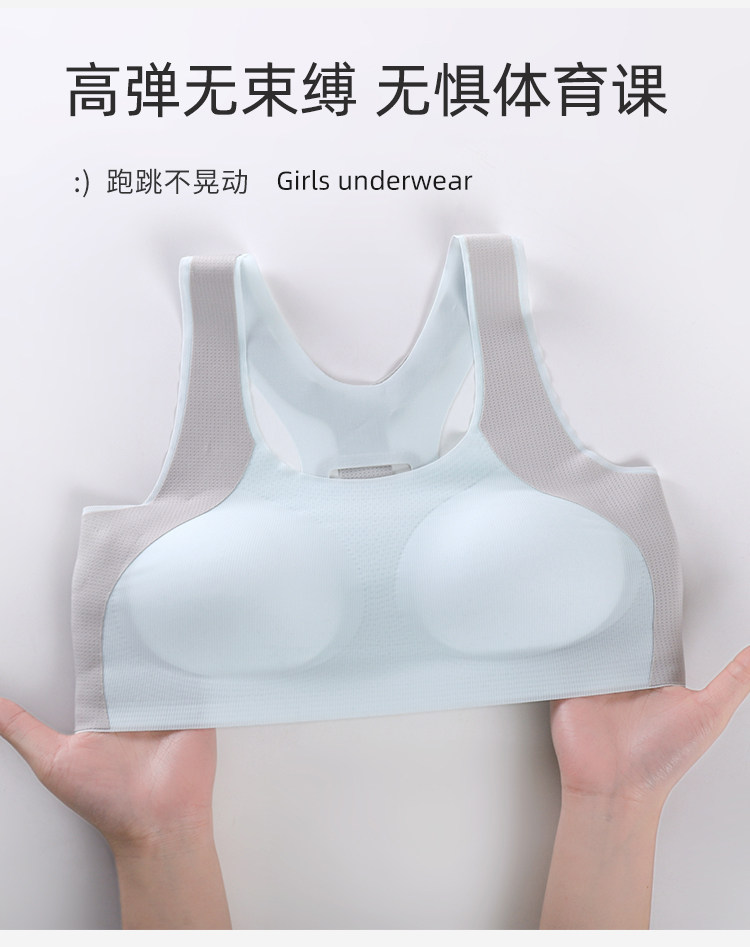 Catman Girl's Intimates, Junior High School and High School Students' Adolescent Development Period, Seamless Cloud-Like Bra, Women's Sports Shock-Proof Vest