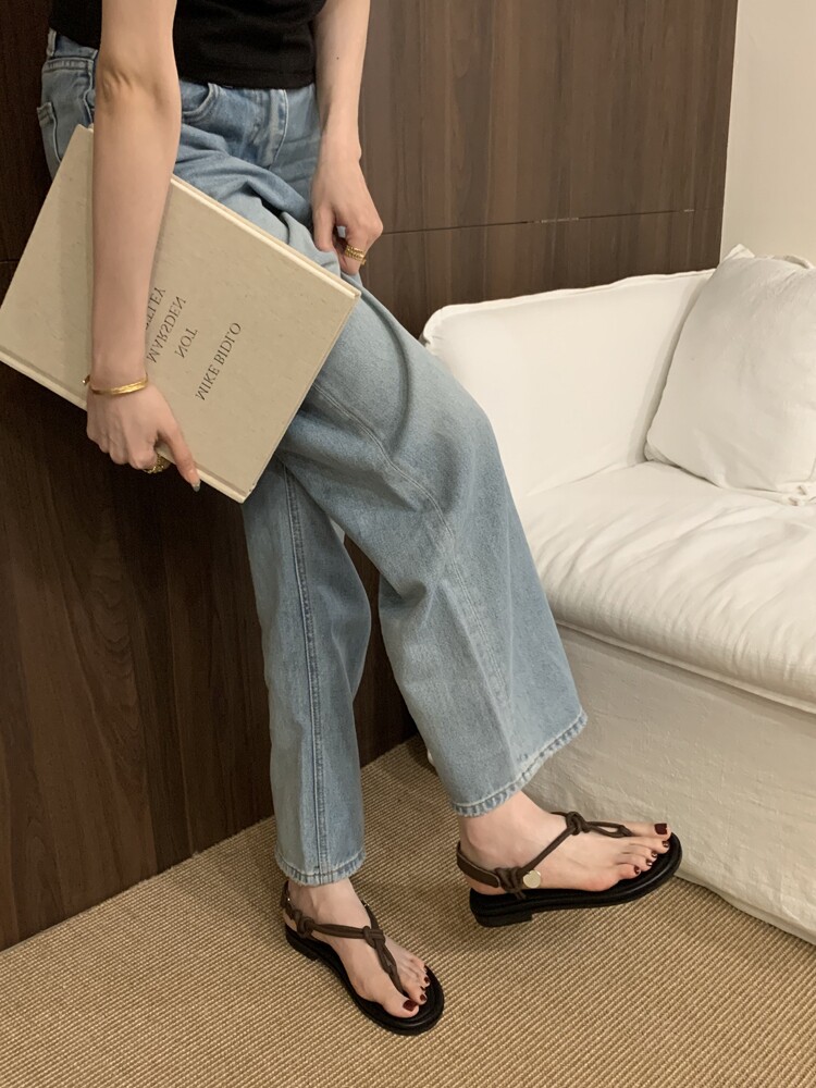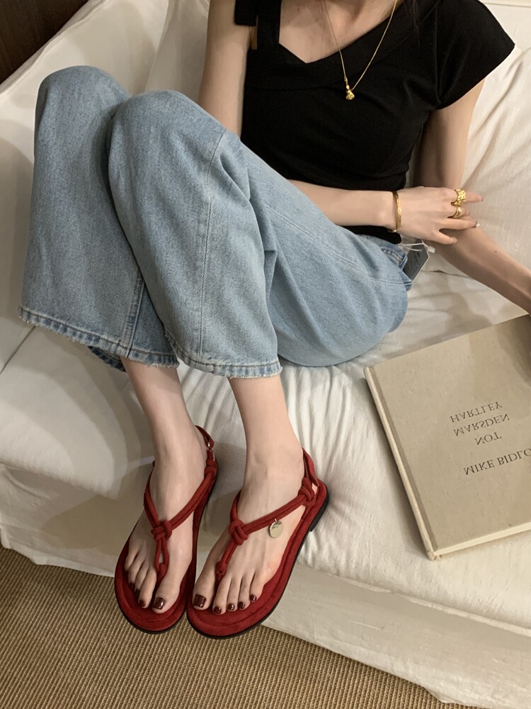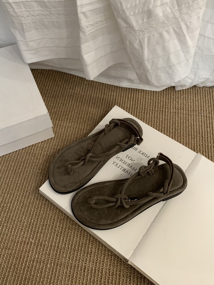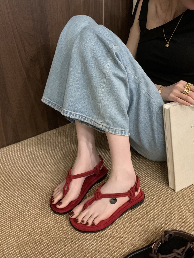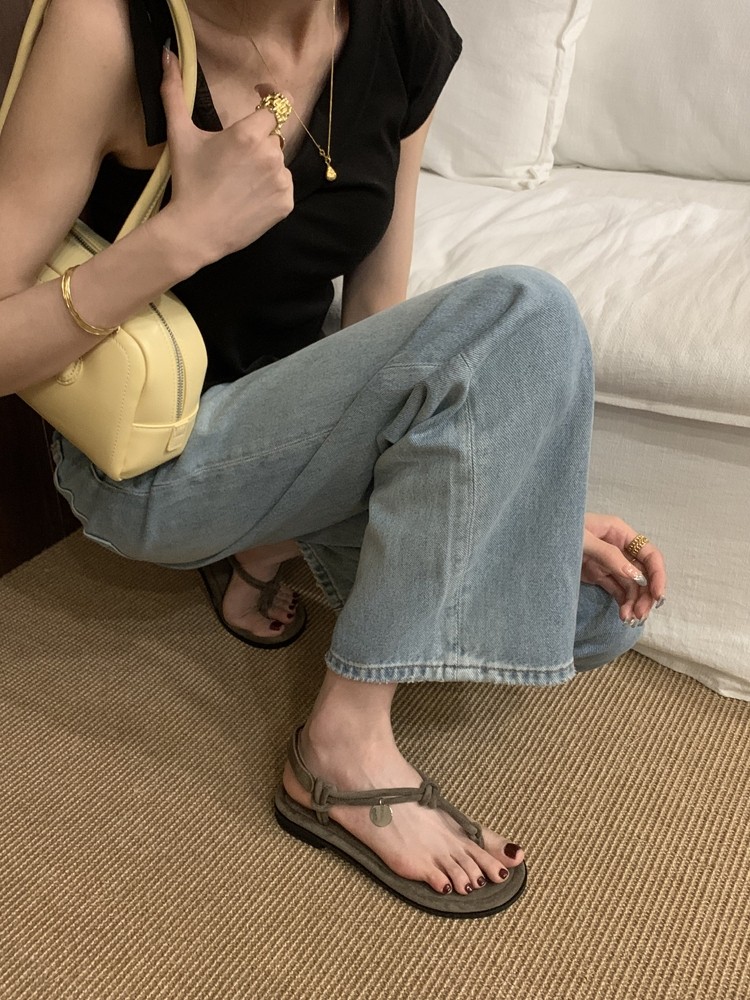 French-Style Black Thong Sandals, Fairy Shoes, 2025 New Summer Niche Design, Suitable for Pairing with Dresses, Thin Strap Roman Shoes