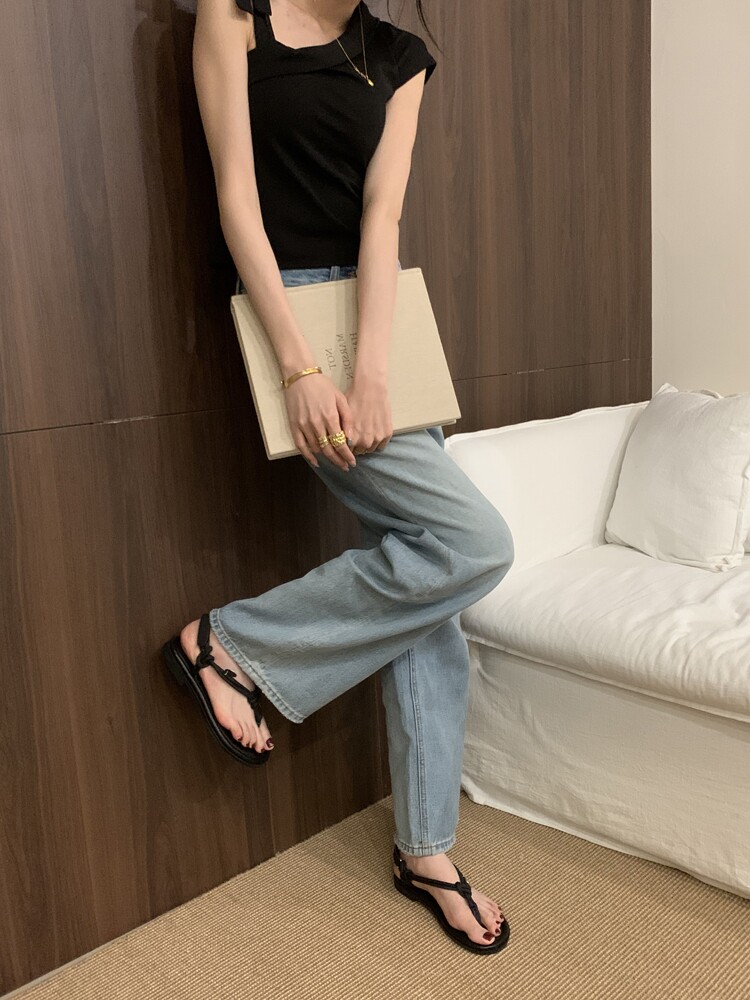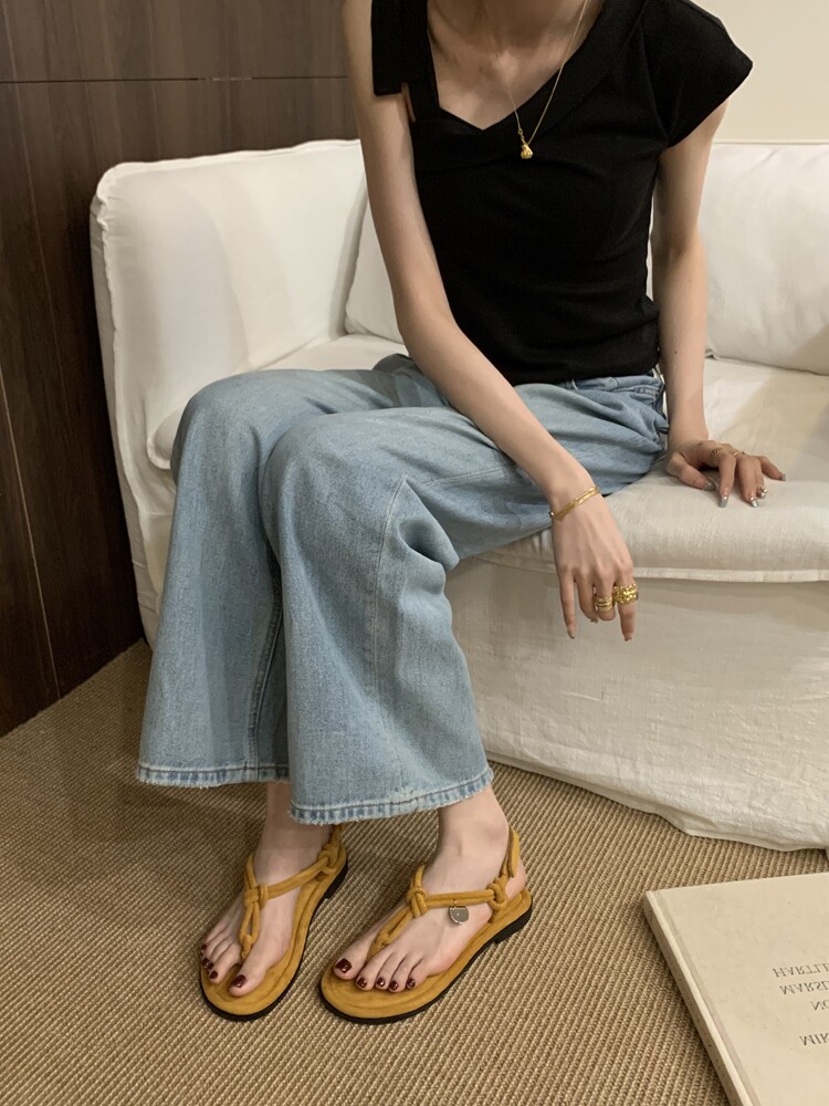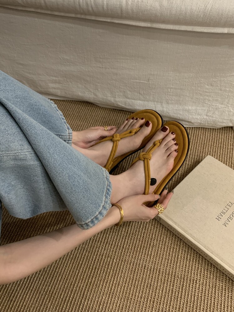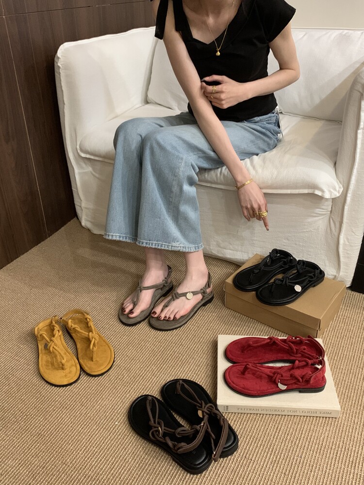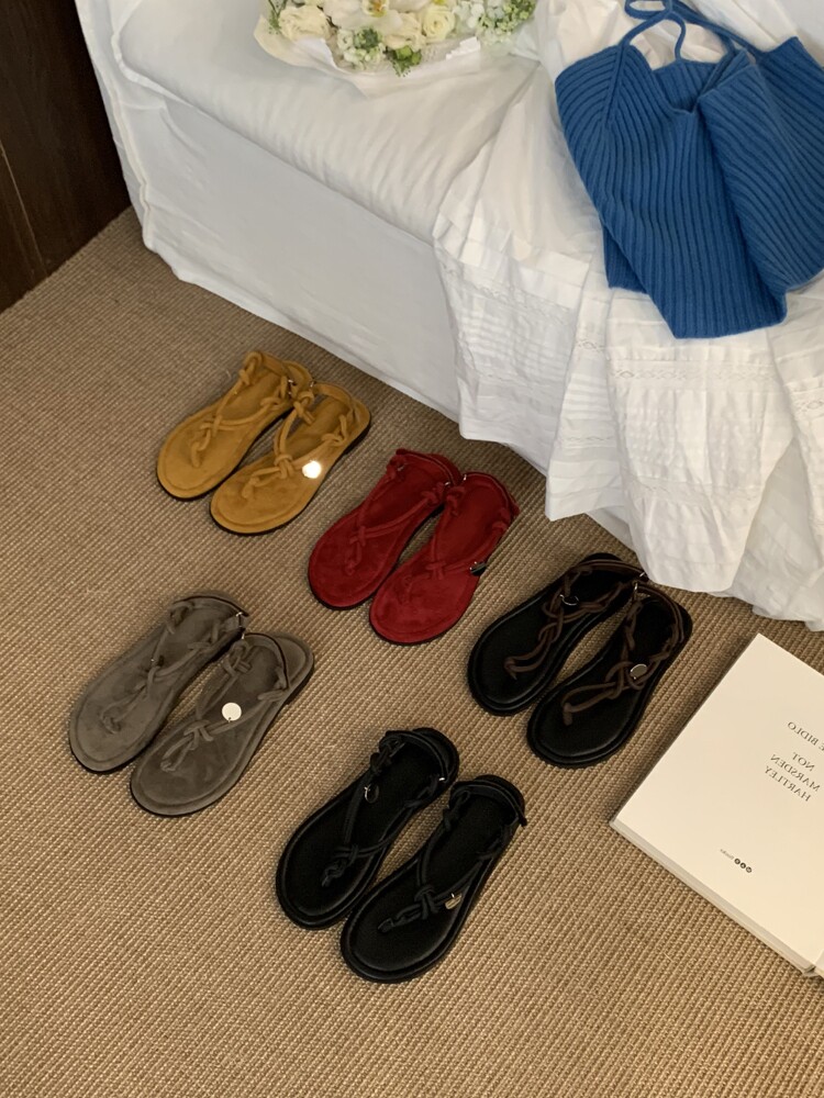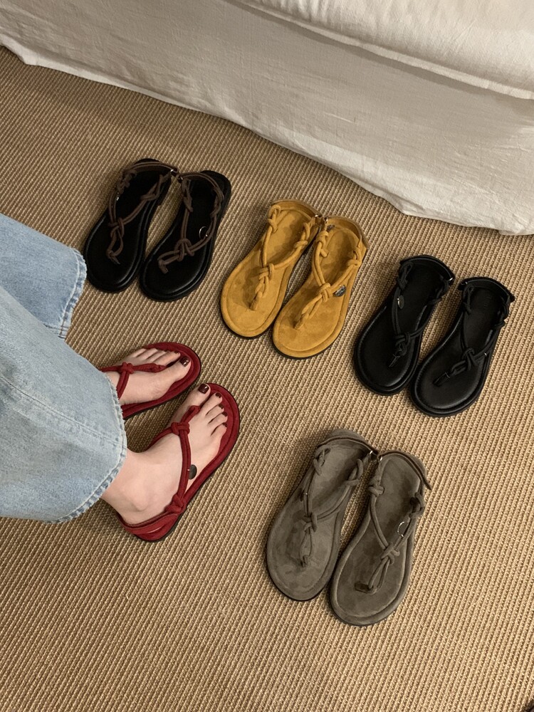 French-Style Black Thong Sandals, Fairy Shoes, 2025 New Summer Niche Design, Suitable for Pairing with Dresses, Thin Strap Roman Shoes
