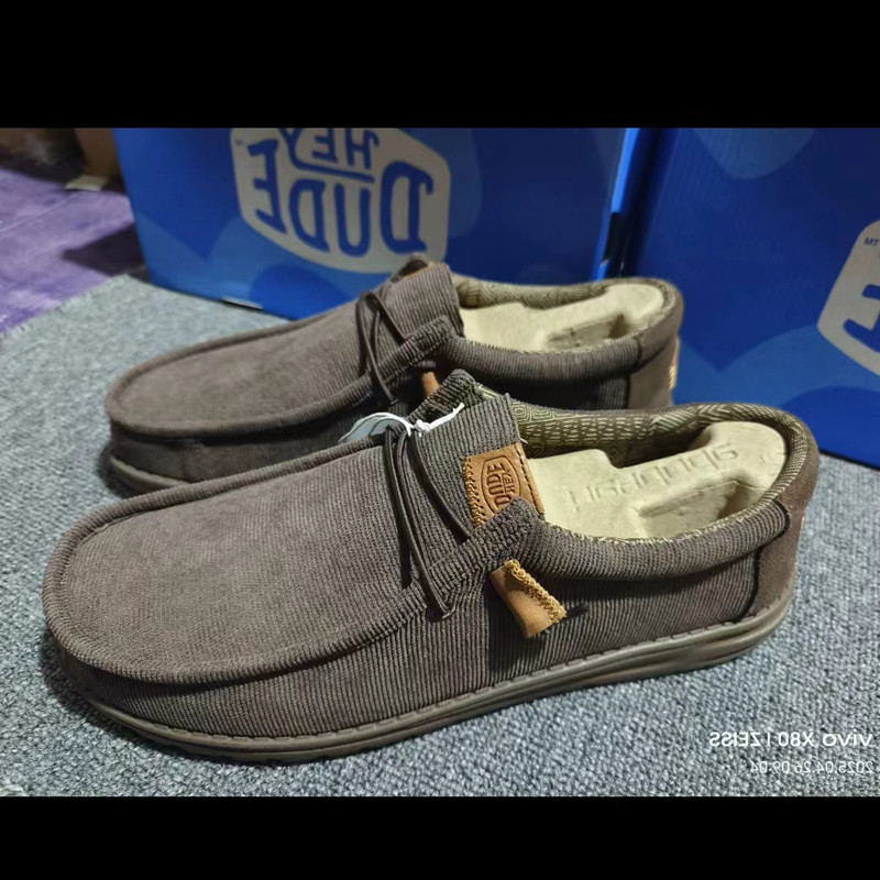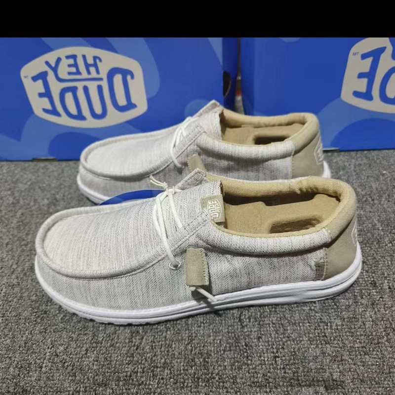 Dude Canvas Shoes for Men, Slip-On, 2025 Spring and Summer New Style, Linen Retro Fly-Knit Fashion Lazy Shoes