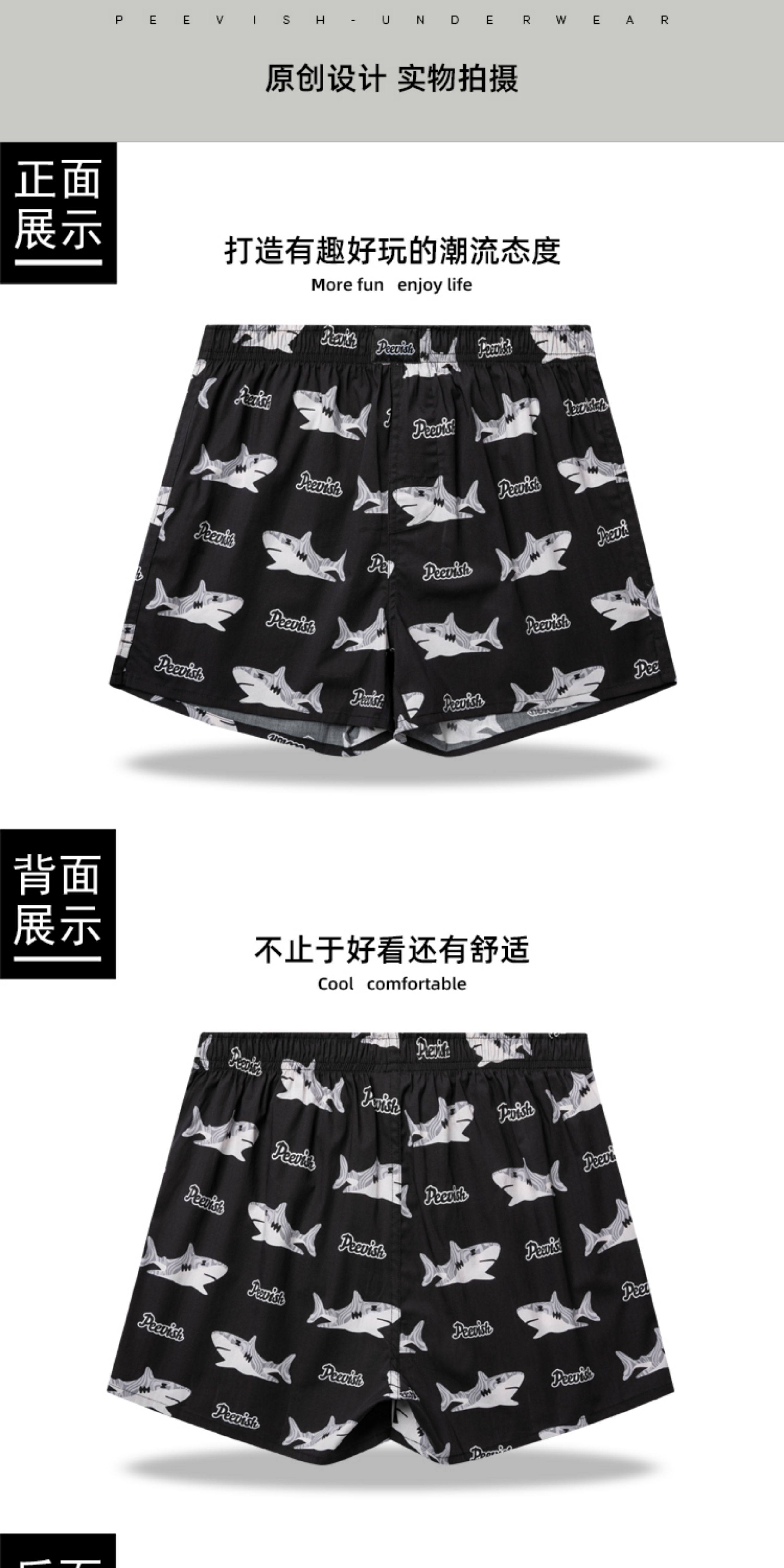 Peevish Pure Cotton Loose-Fitting Underwear Men's Briefs Women's Home Short Sleep Pants Double Cigarette Pants