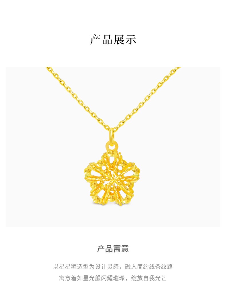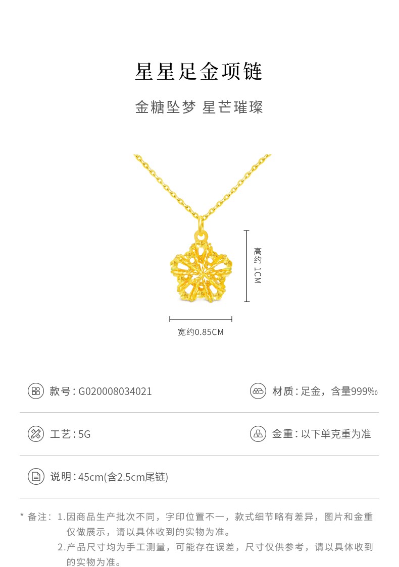 Lao Fengxiang Hollow Star Fragment Gold Sparkling Star Candy Gold Necklace for Women, Fragmented Ice New Year Gift