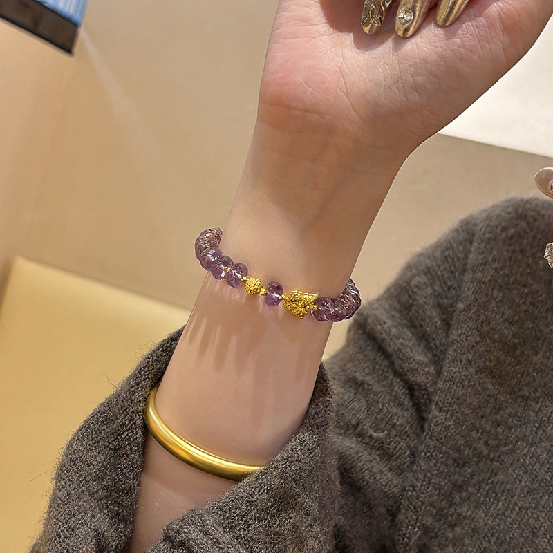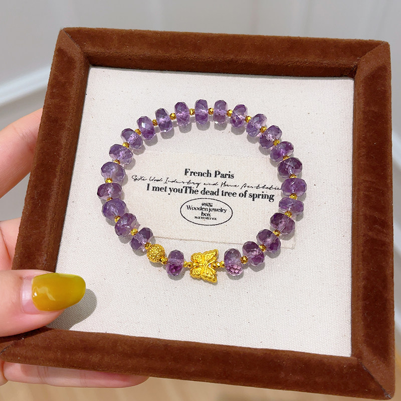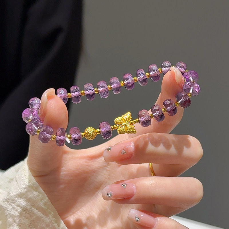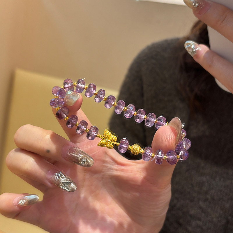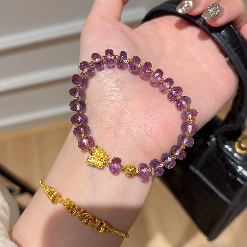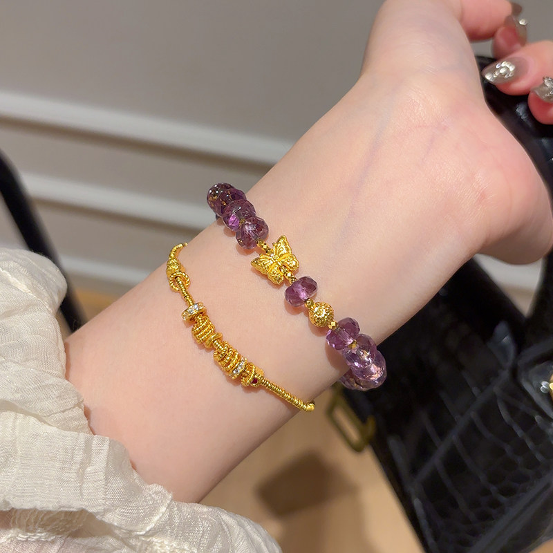 Sea Rover Gold Butterfly Amethyst Bracelet for Women, New 999 Pure Gold Disco Bead Bracelet, Birthday Gift for Girlfriend