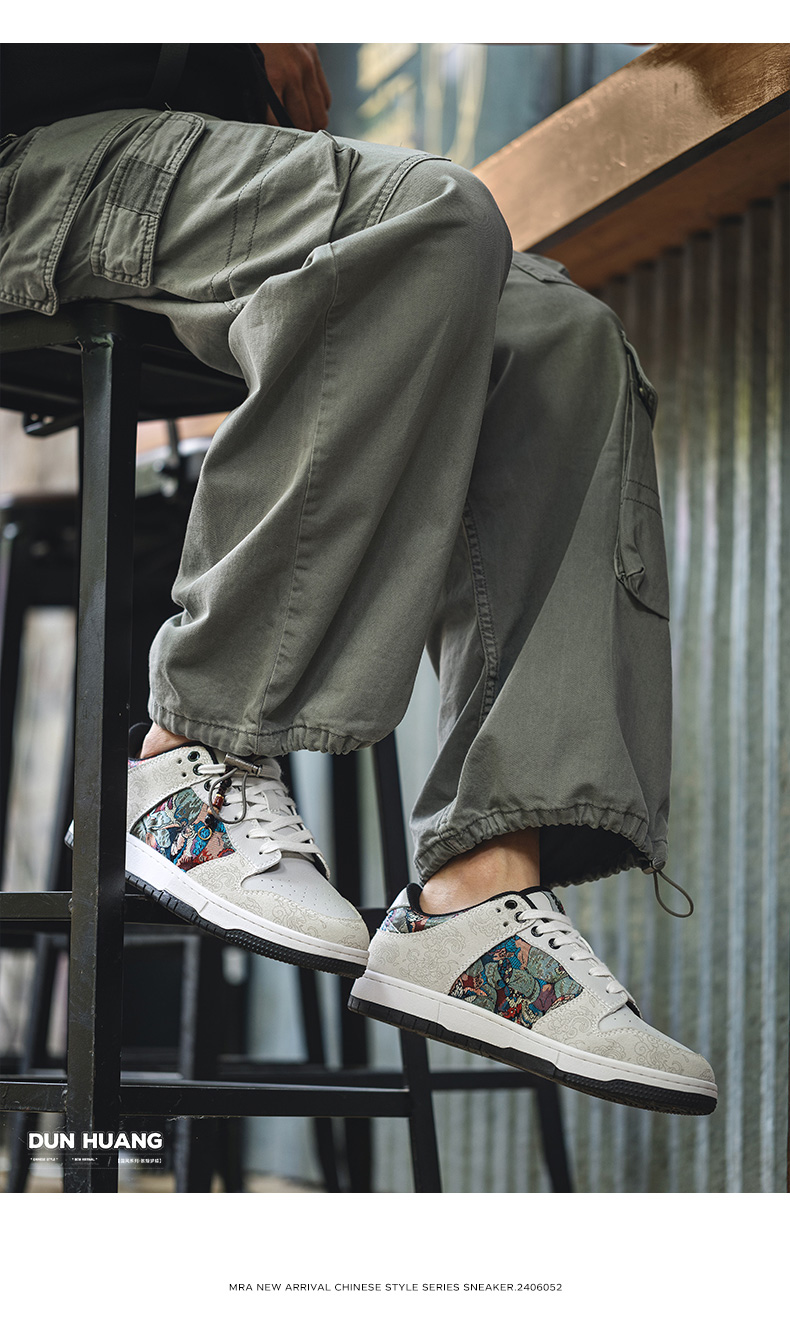Mra Dunhuang Mengdie Chinese Style Sneakers Men's Shoes 2025 New Thick-Soled Sports and Casual Shoes Painted Embroider Trbottomy Shoes