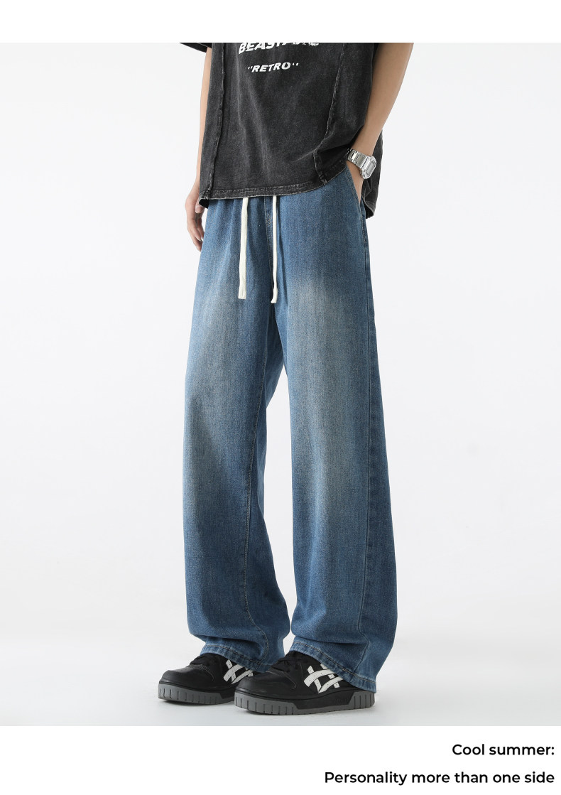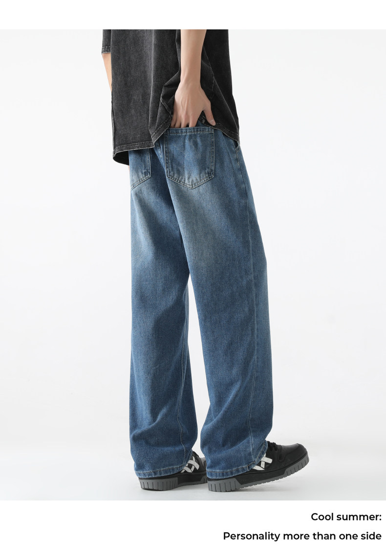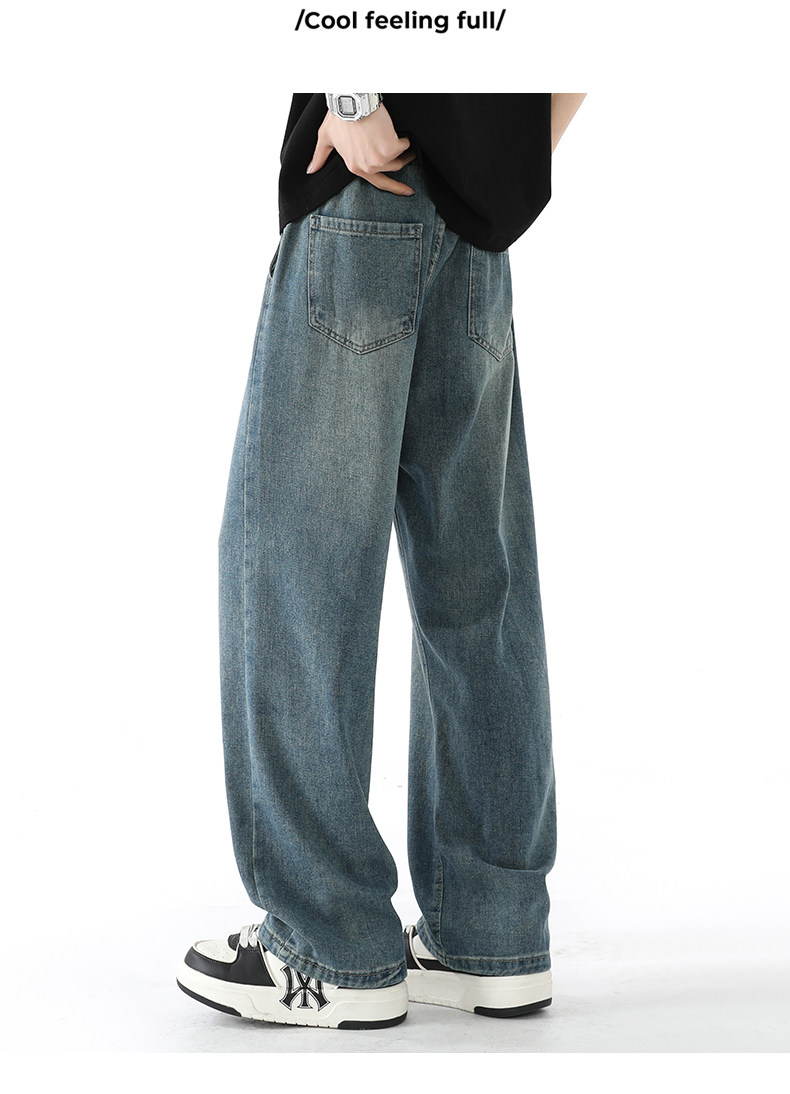Vintage Straight-Leg Jeans for Men, Autumn Trendy Brand, Loose Fit, Versatile, American Casual, Youth High Street Long Pants