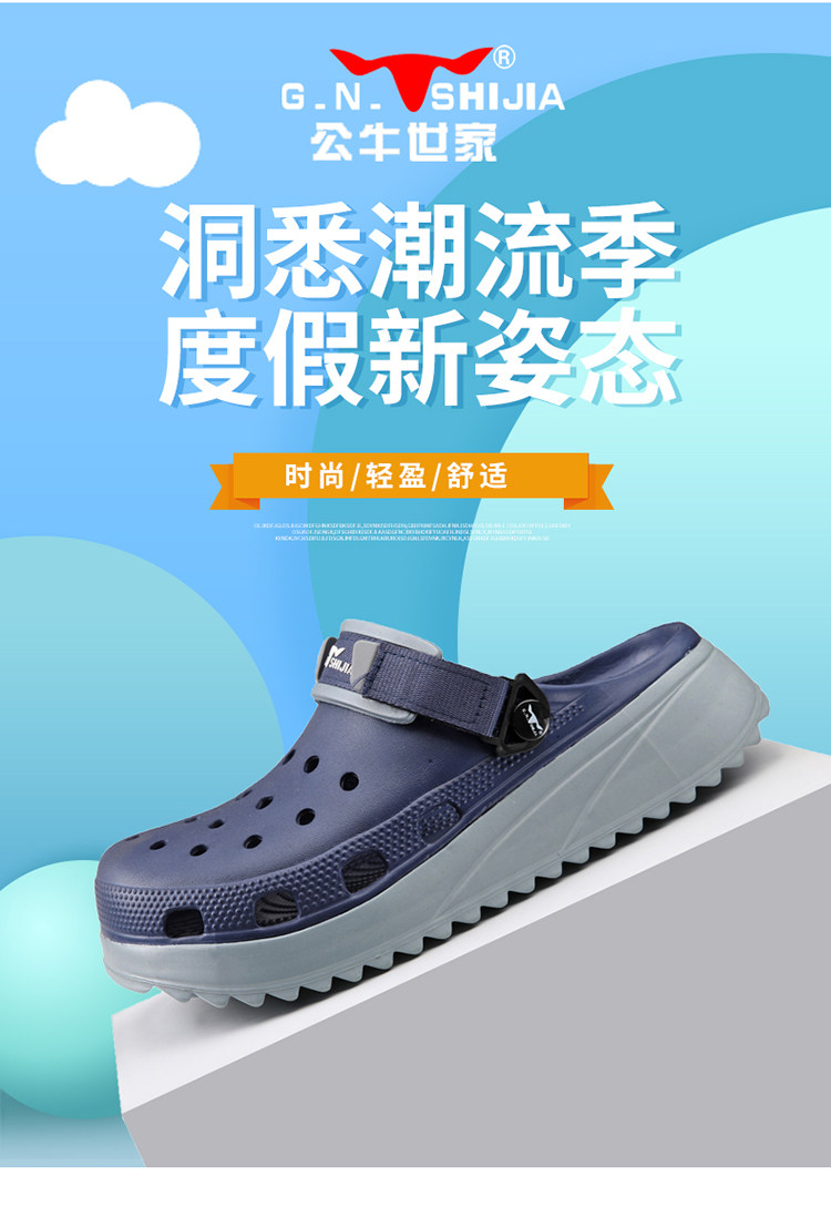 Bull Family Clogs for Men: Summer Breathable Thin Sports Sandals, Outdoor Thick-Soled Height-Increasing Non-Slip Beach Shoes