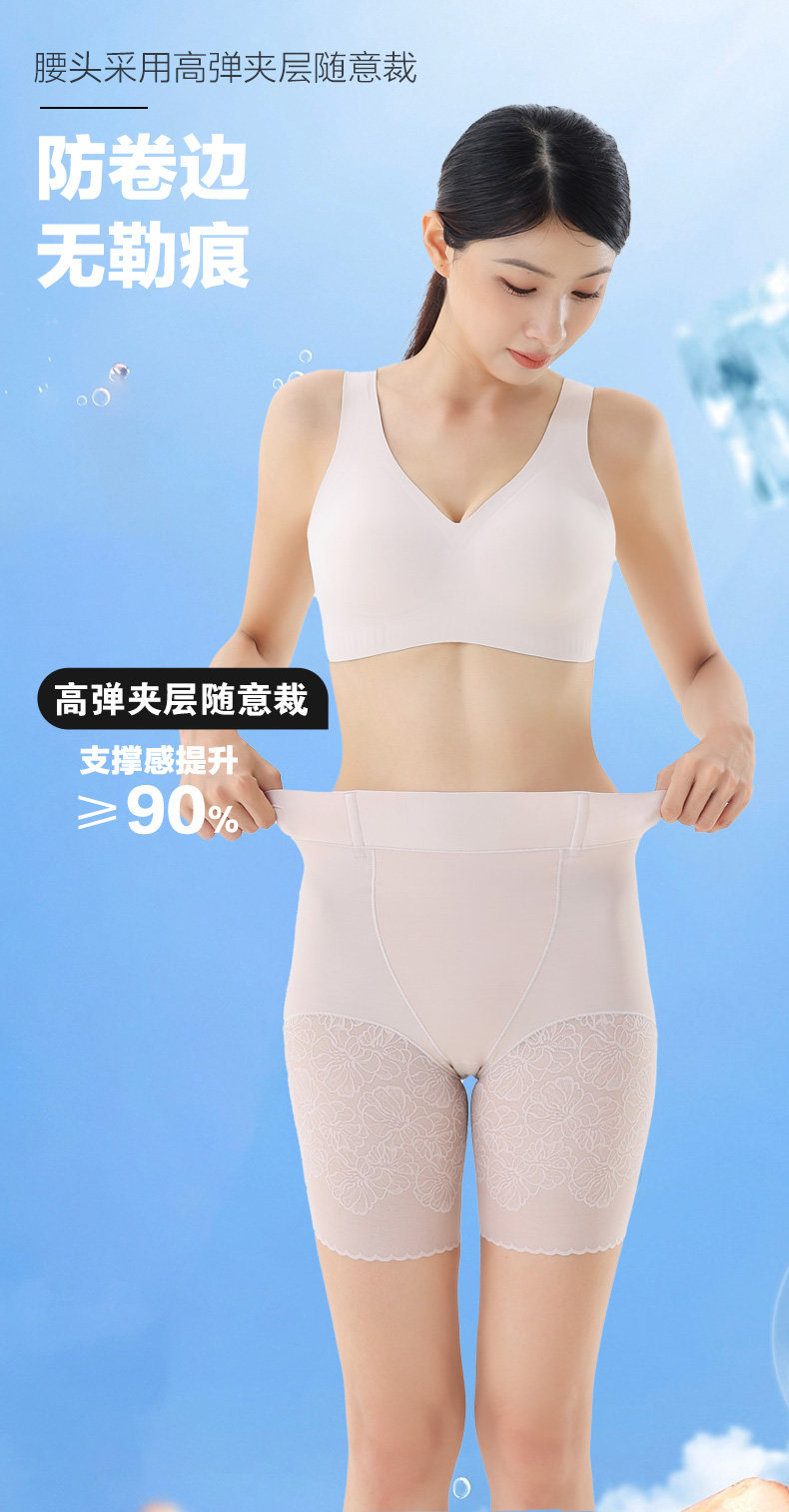 Lace-Trimmed Safety Shorts and Underwear Two-In-One Women's Butt-Lifting Shorts, Anti-Exposure Three-Point Base Layer, Ultra-Thin Ice Silk for Summer