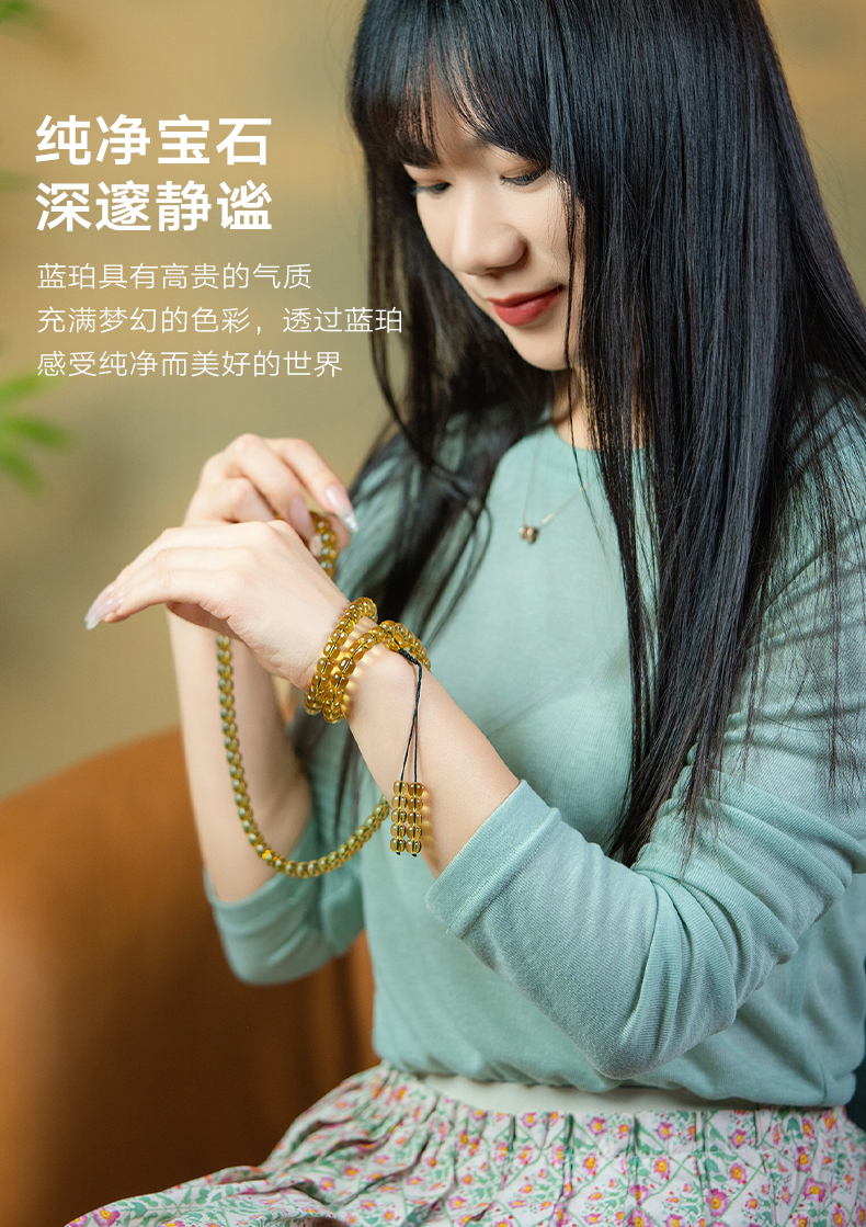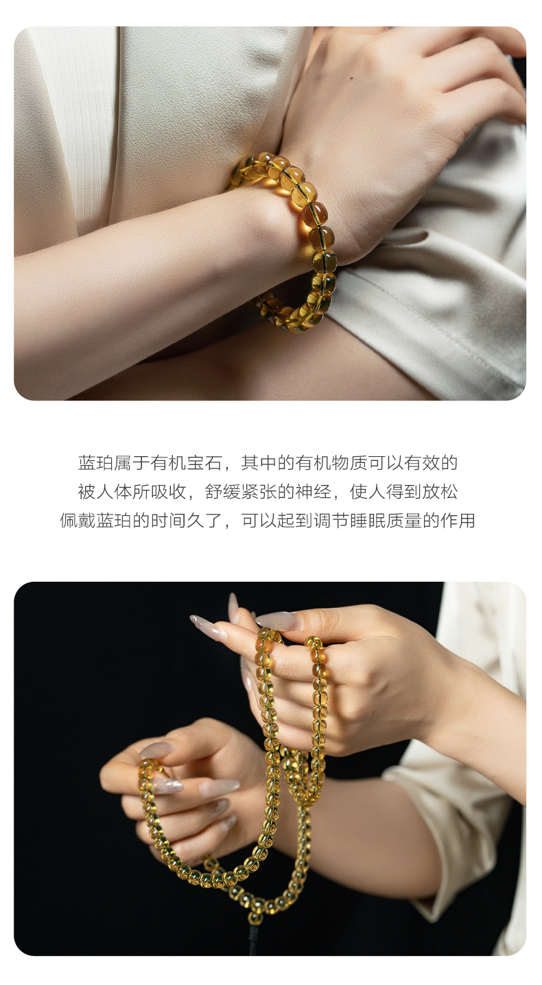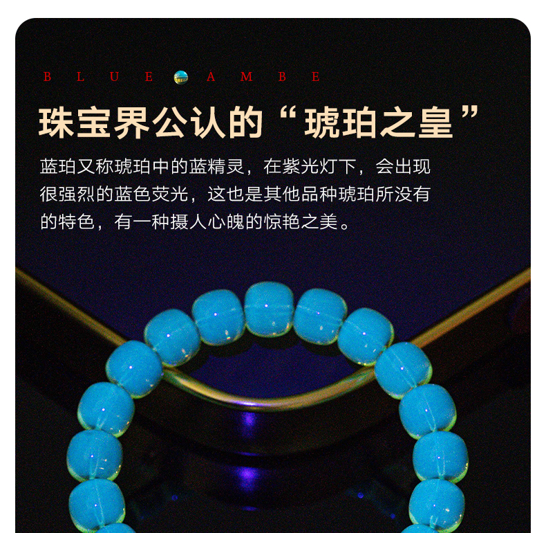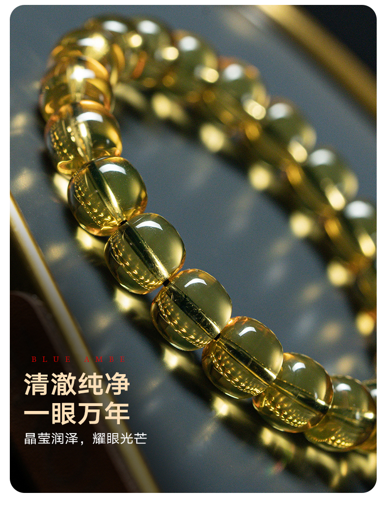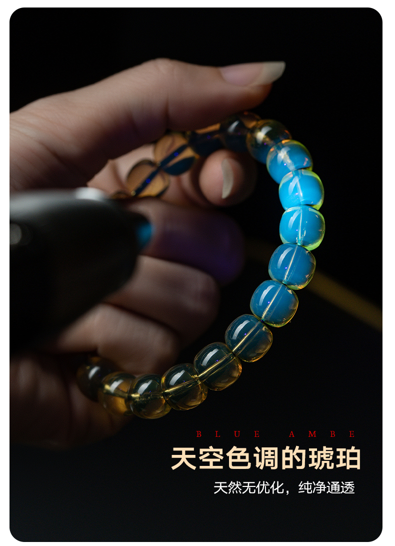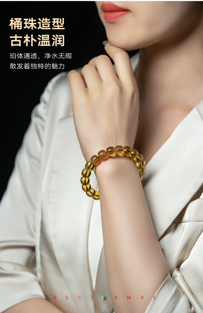 Su Xiaobei Natural Raw Mineral Water Purifying Blue Amber Tibetan Barrel Bead Bracelet for Men, Natural Amber Raw Stone Cultural Jewelry Bracelet for Women