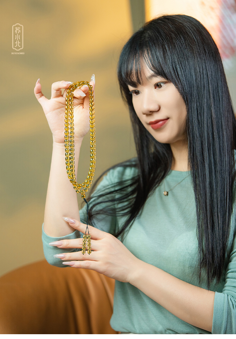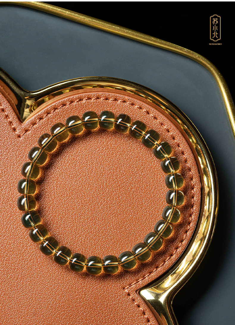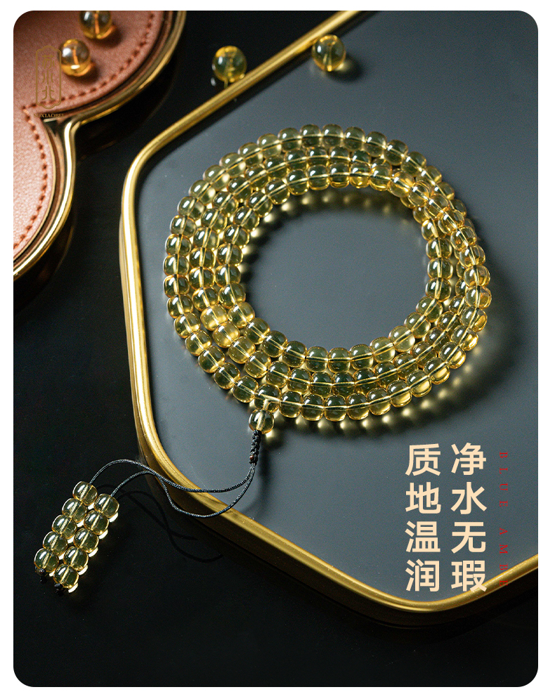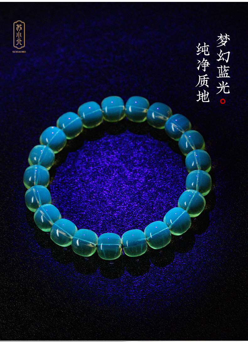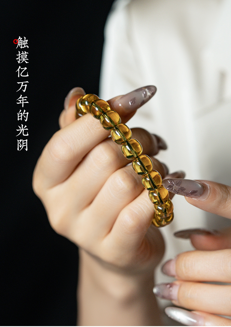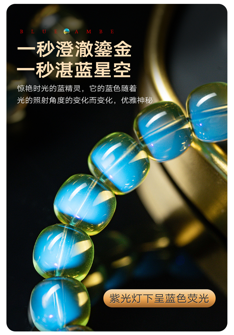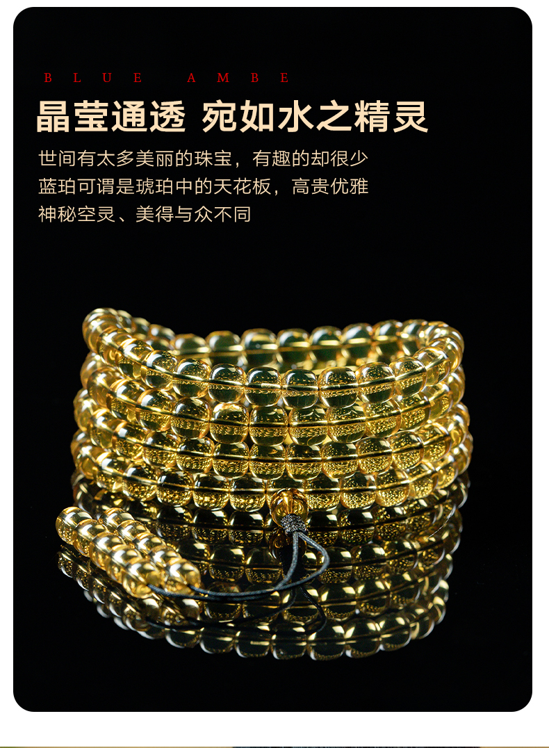 Su Xiaobei Natural Raw Mineral Water Purifying Blue Amber Tibetan Barrel Bead Bracelet for Men, Natural Amber Raw Stone Cultural Jewelry Bracelet for Women