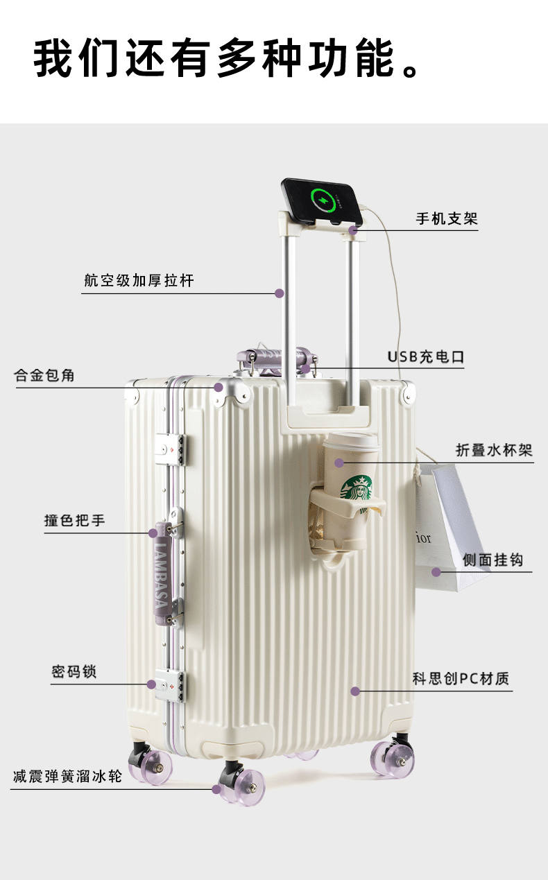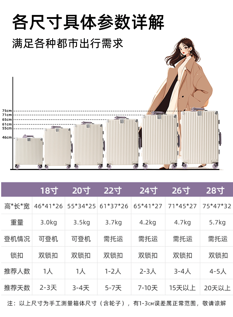 2026 New Style Suitcase for Women 20inch High-Quality Aluminum Frame Travel Suitcase for Girls, Carry-On Luggage, 24-Inch Password Lock Suitcase, 28-Inch