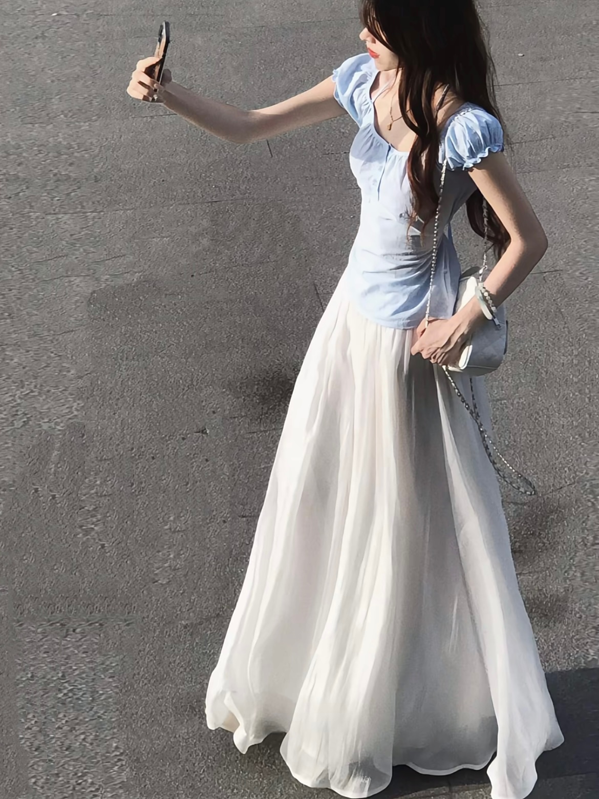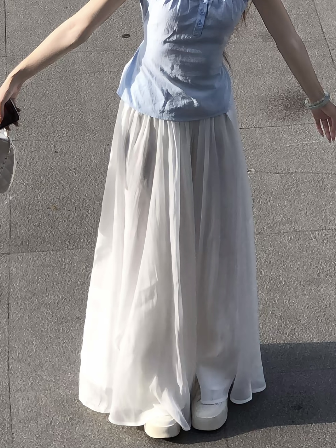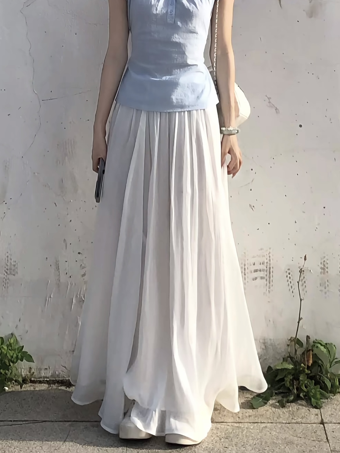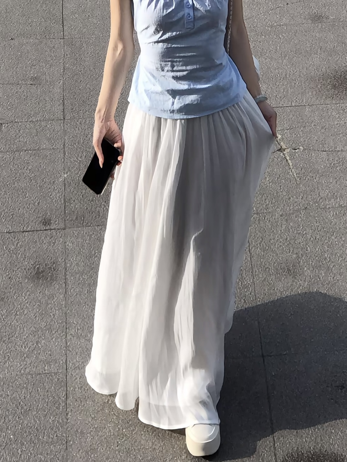 Tea Break French Style ~ Flowing Gauze Skirt for Women, High-Waisted, Drapey A-Line Long Skirt, White, Cool and Unique Half Skirt