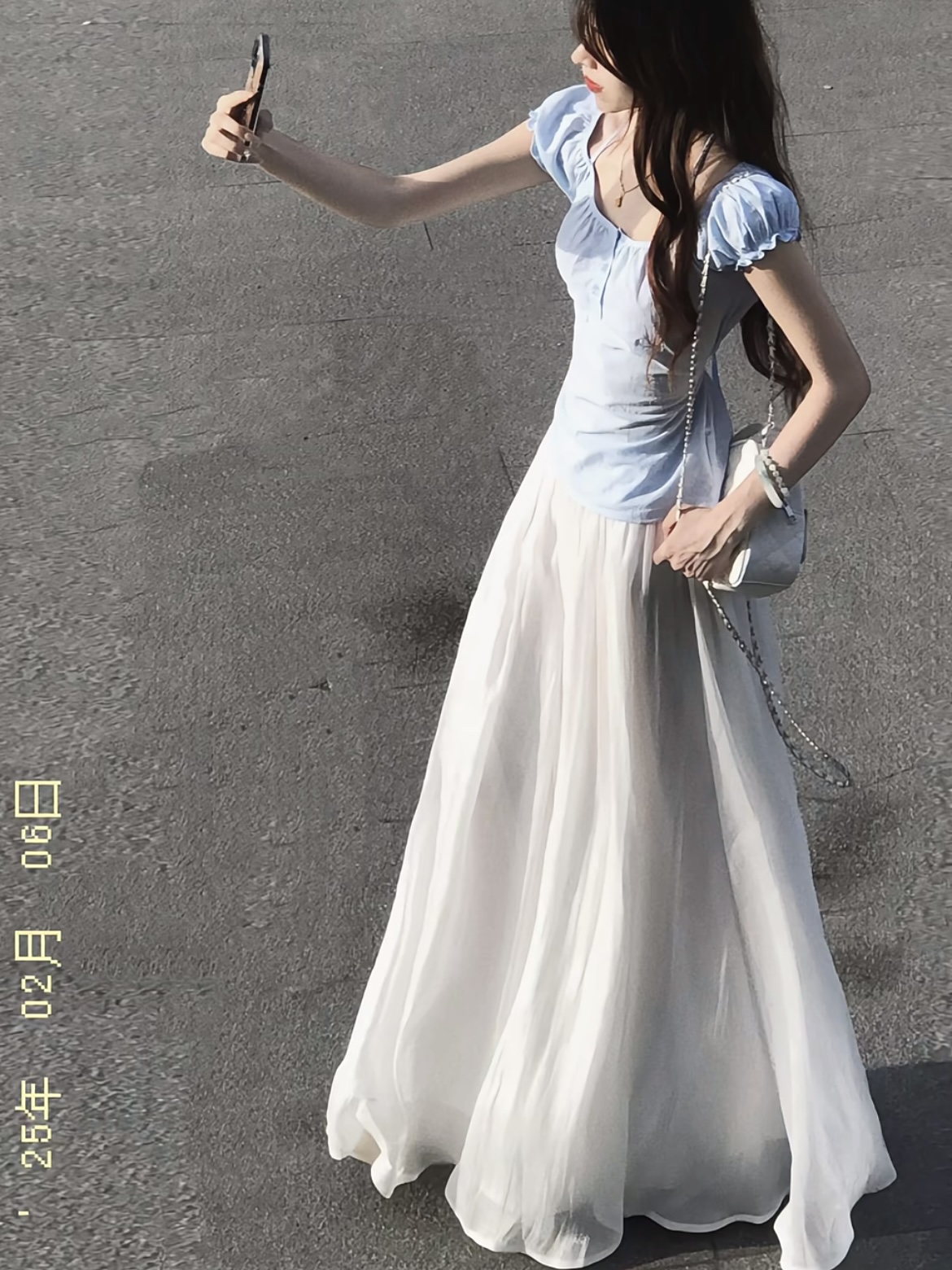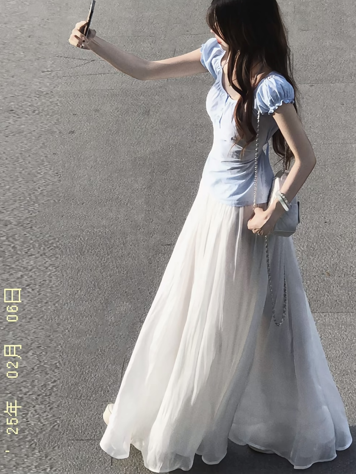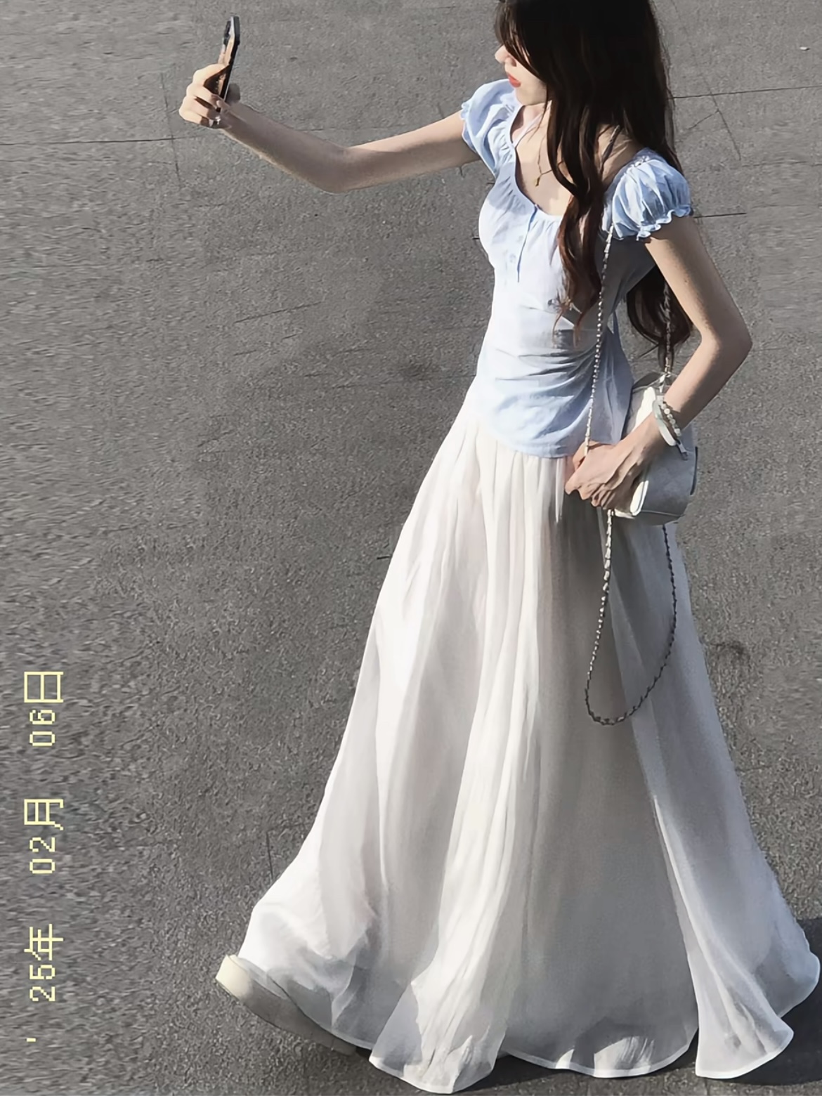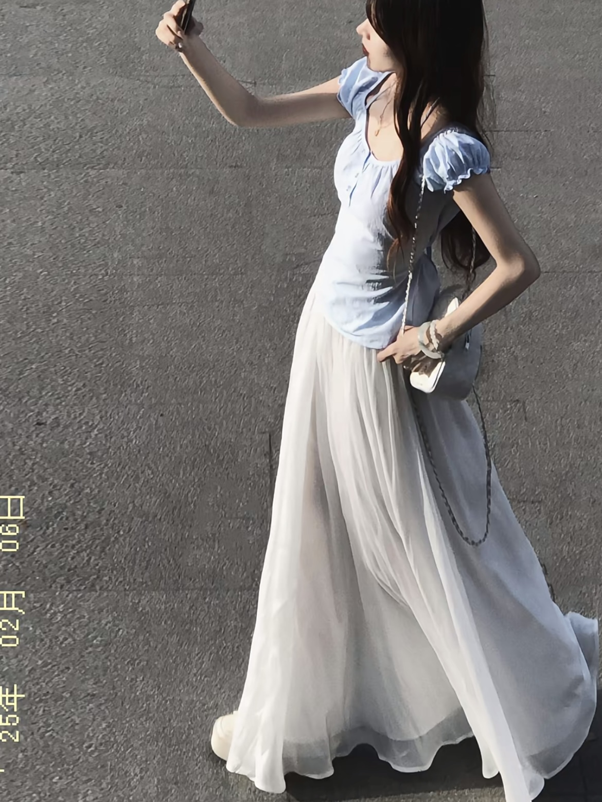 Tea Break French Style ~ Flowing Gauze Skirt for Women, High-Waisted, Drapey A-Line Long Skirt, White, Cool and Unique Half Skirt