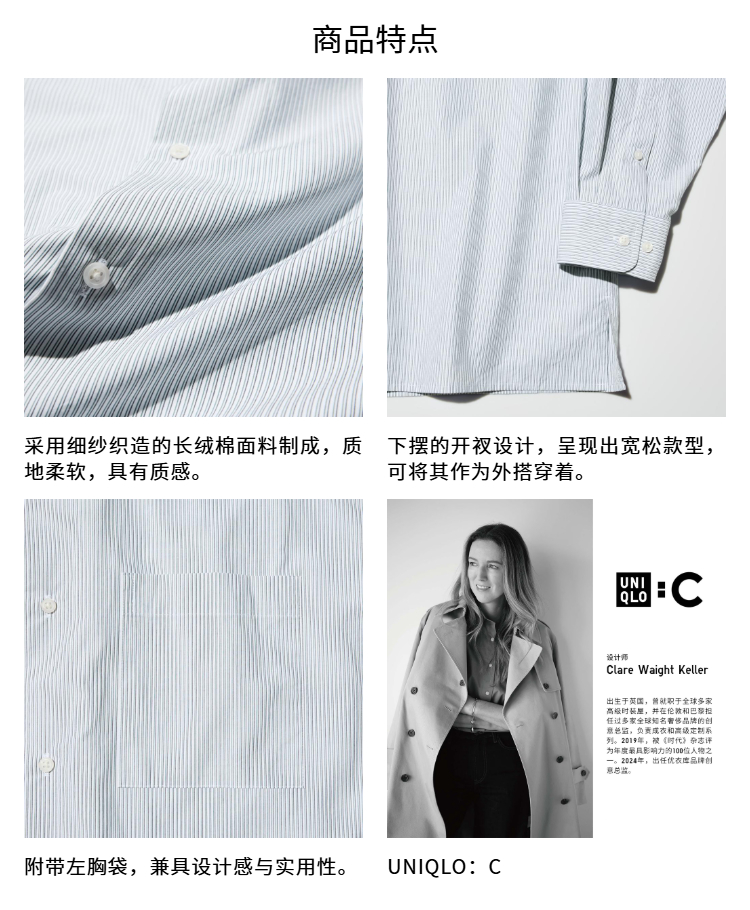 UNIQLO Cooperation/Men's and Women's Loose Stripes Shirt/Long sleeves Shirt Casual 25 Fall and winter New arrival 480763