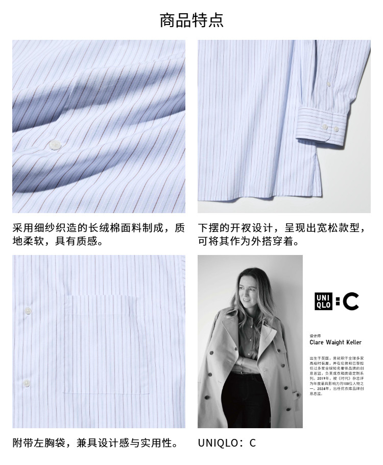 Uniqlo Collaboration/Loose Striped Shirts for Men and Women/Long-Sleeved Casual Shirts 481391
