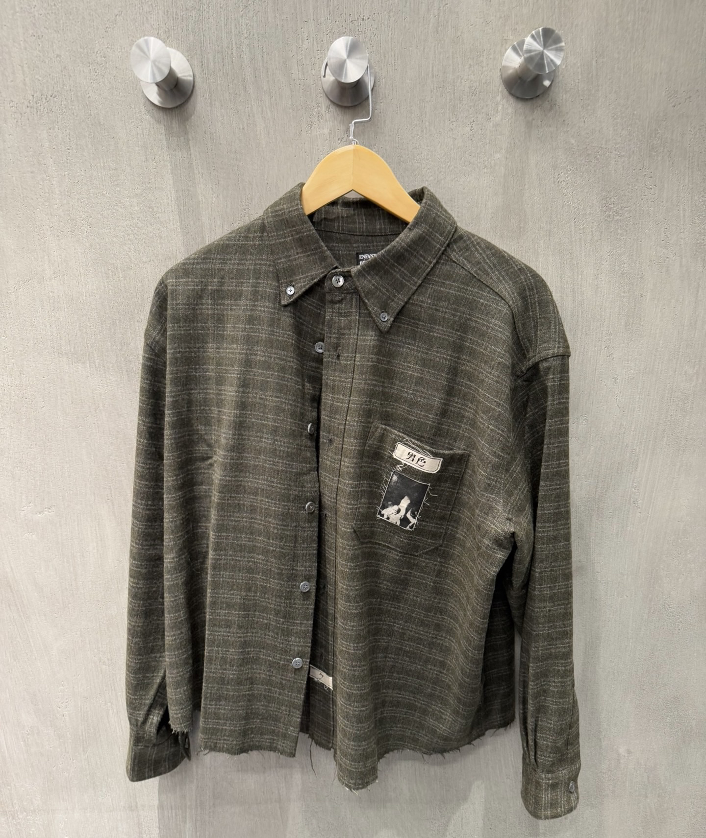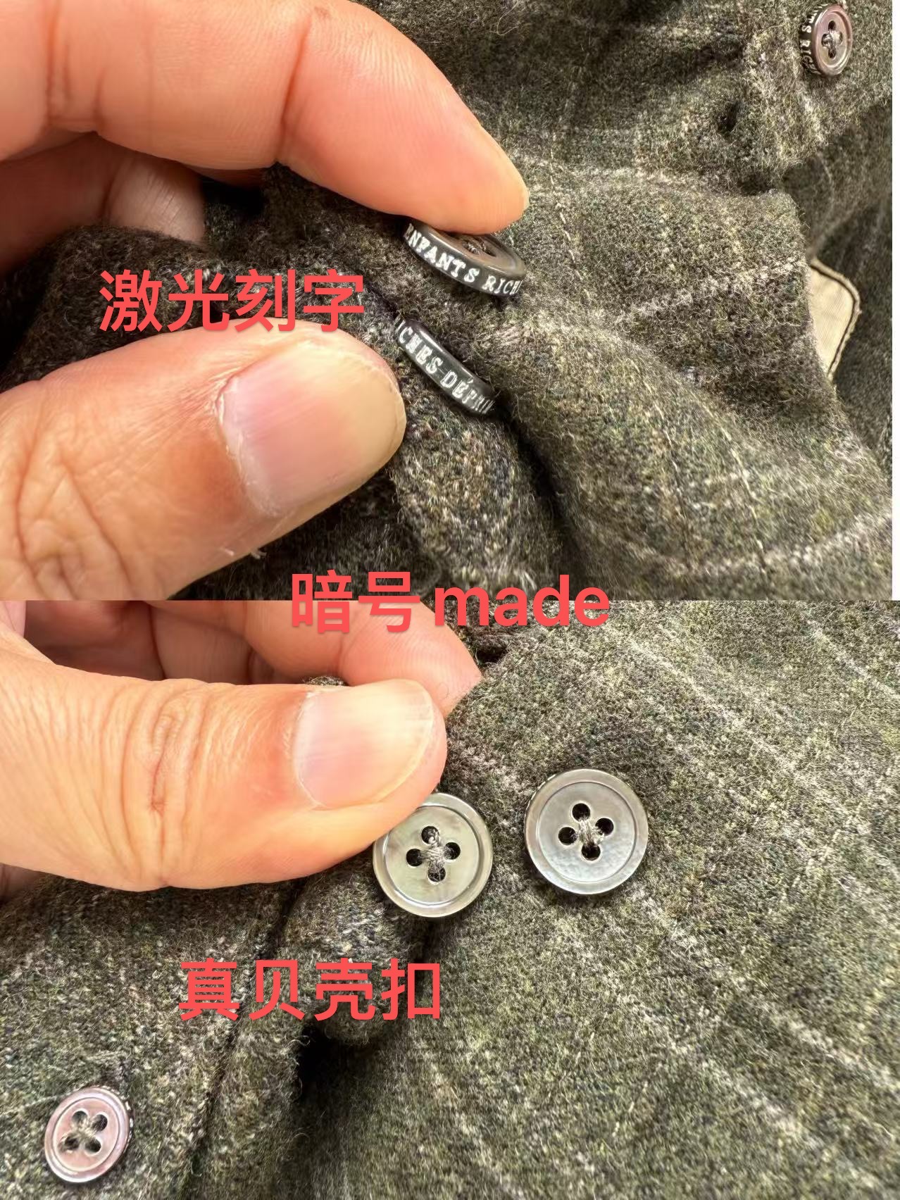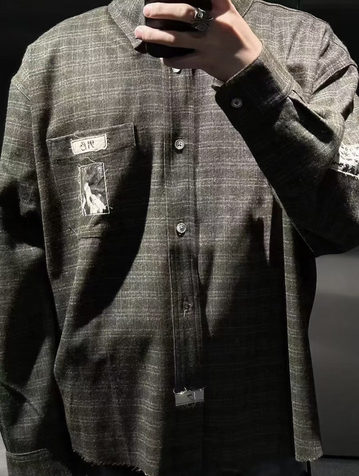 Erd24Fw Melancholic Rich Second-Generation Patchwork Flannel Poetry Wool Shell Button Blended Green Plaid Shirt