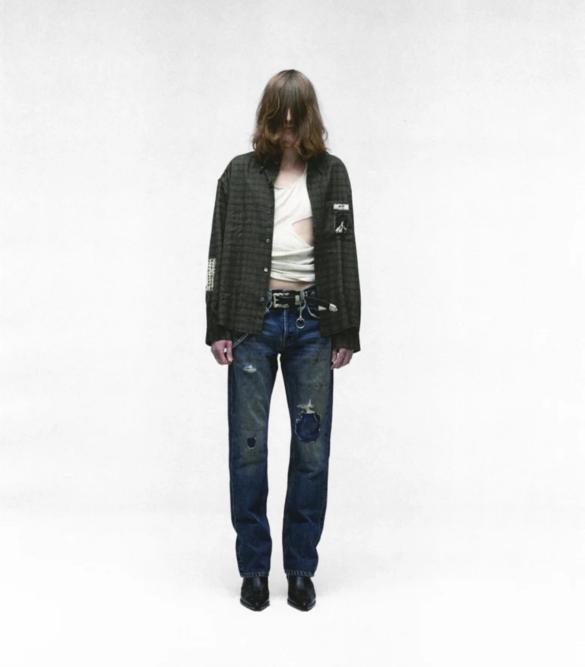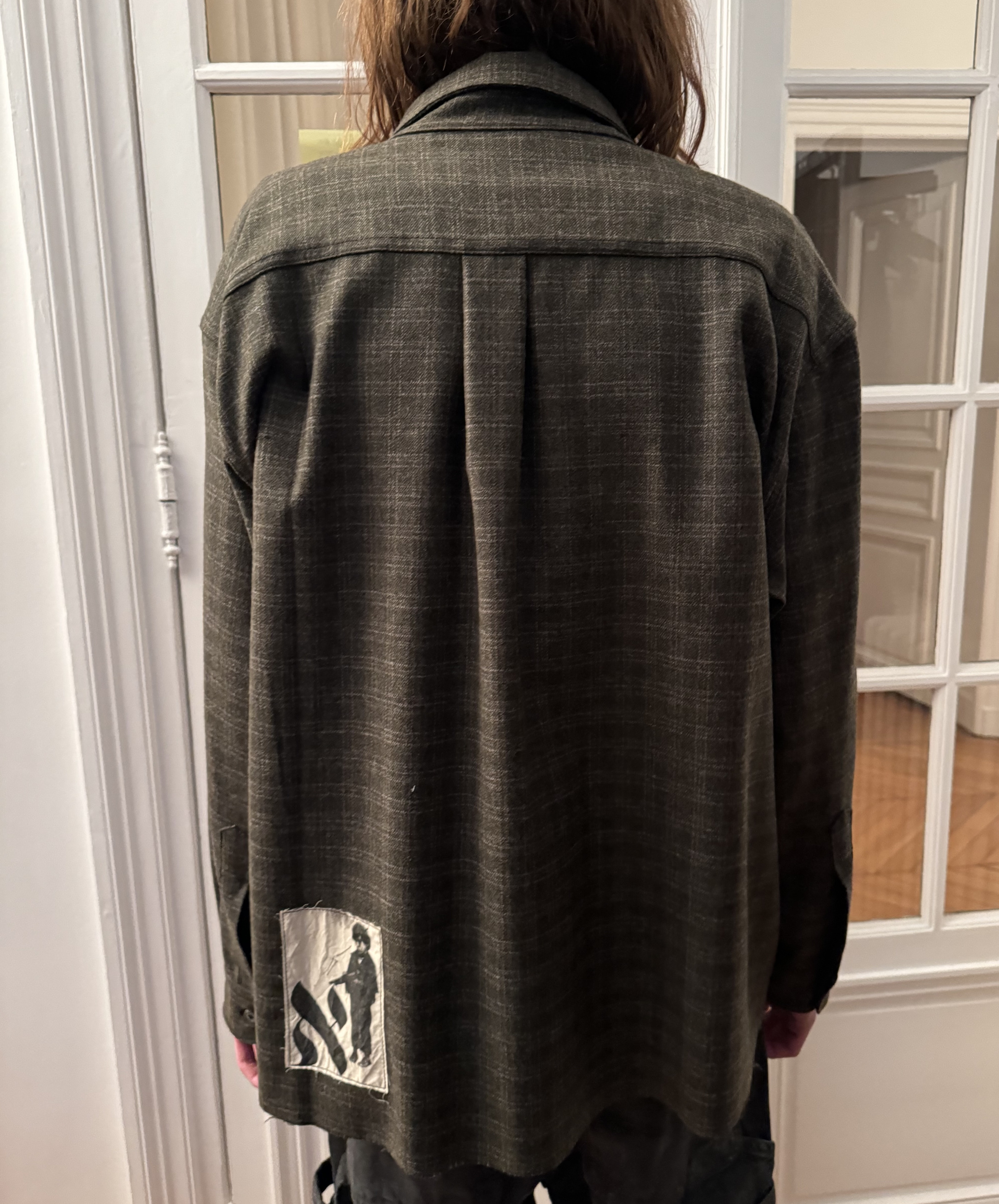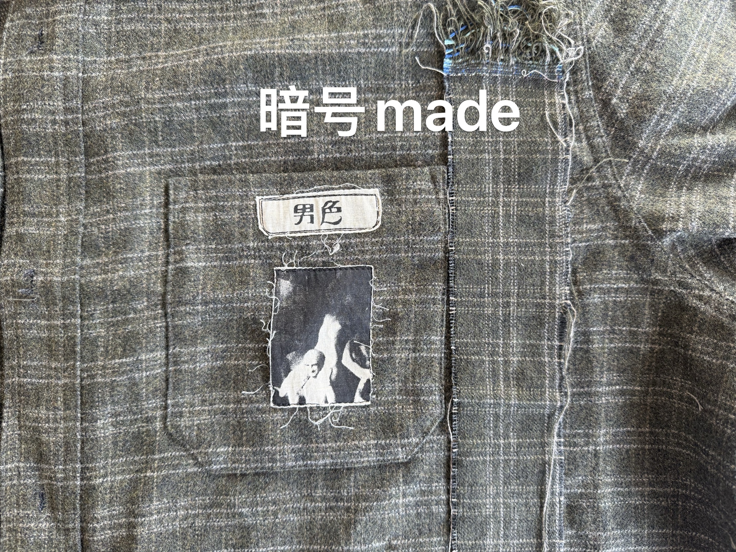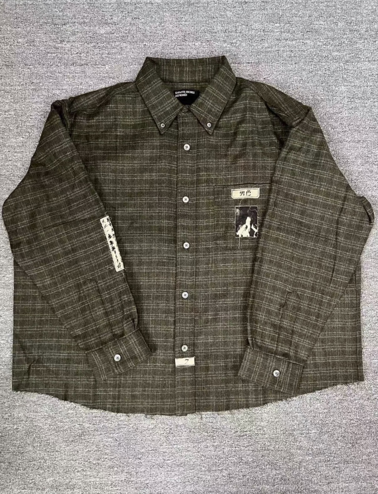 Erd24Fw Melancholic Rich Second-Generation Patchwork Flannel Poetry Wool Shell Button Blended Green Plaid Shirt