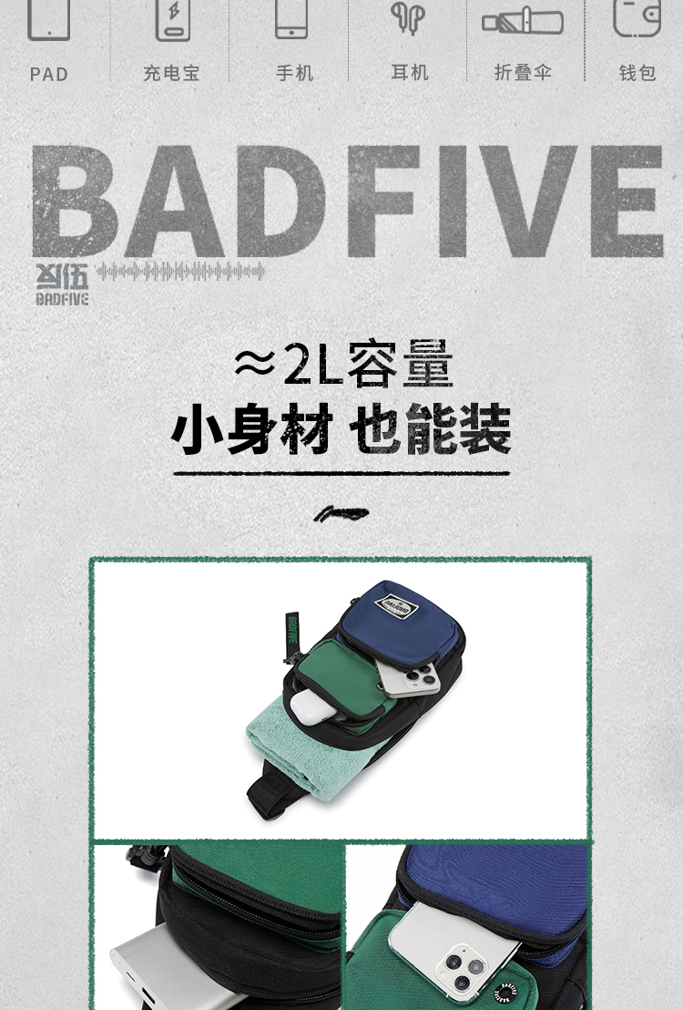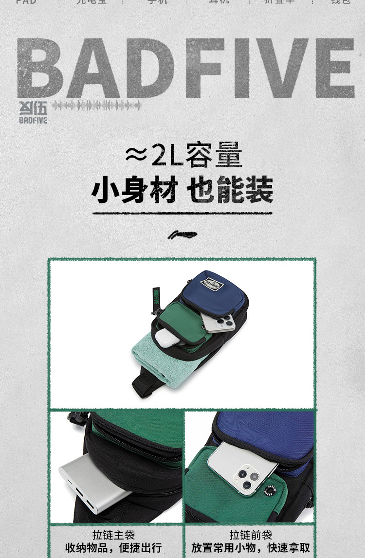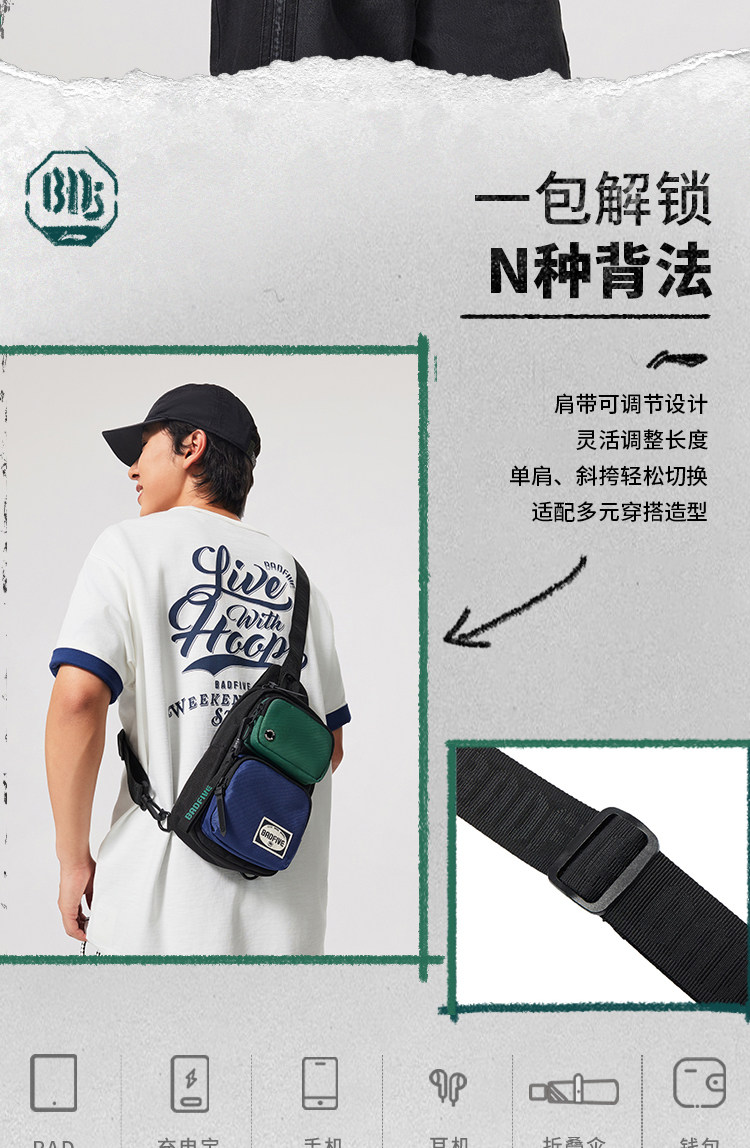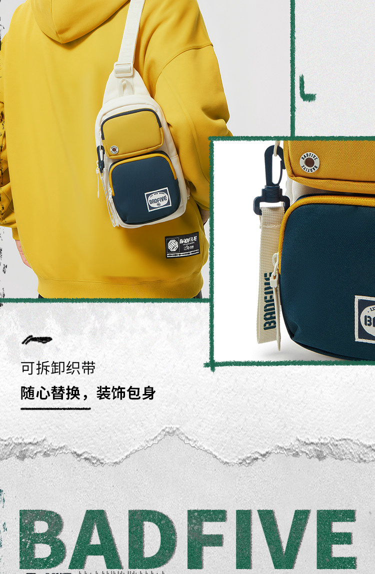 Li-Ning Multifunctional Chest Bag for Men and Women, New Outdoor Lightweight Casual High-End Color-Blocking Crossbody Shoulder Sports Bag