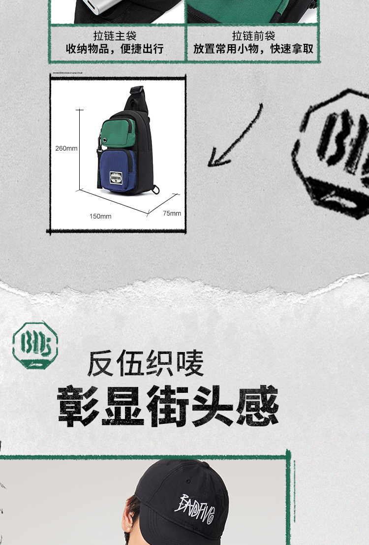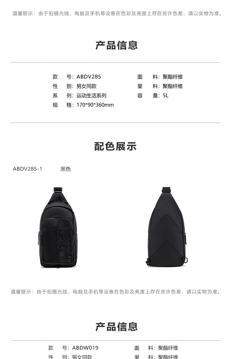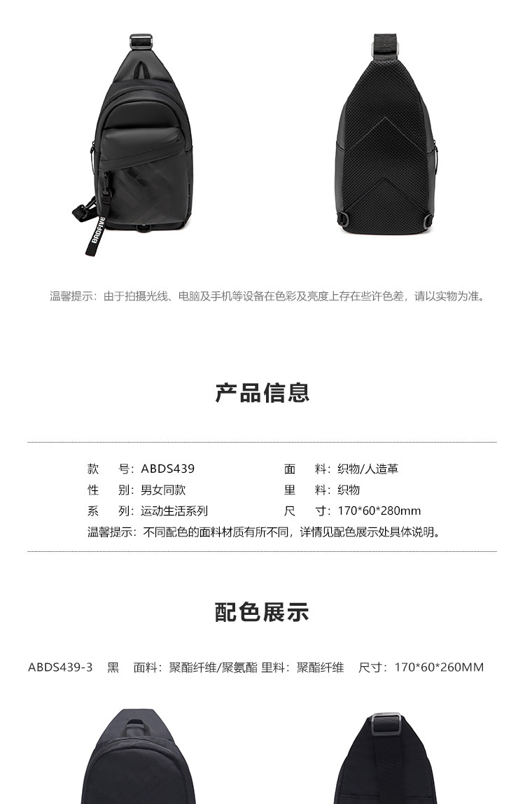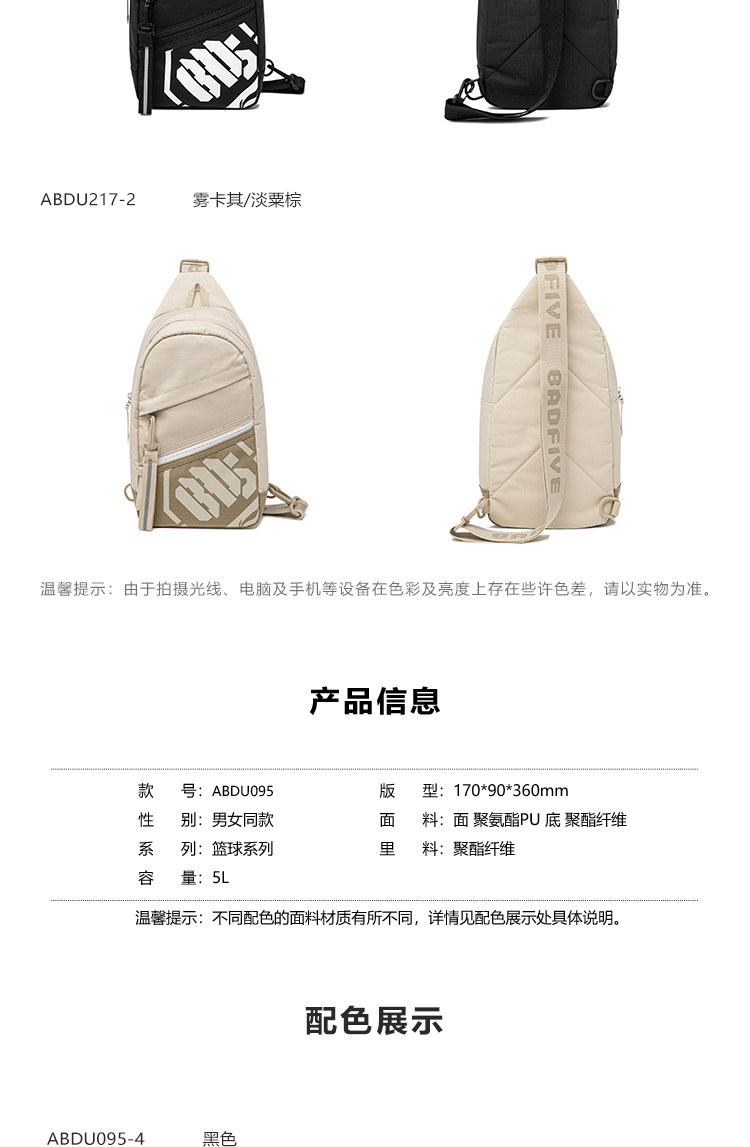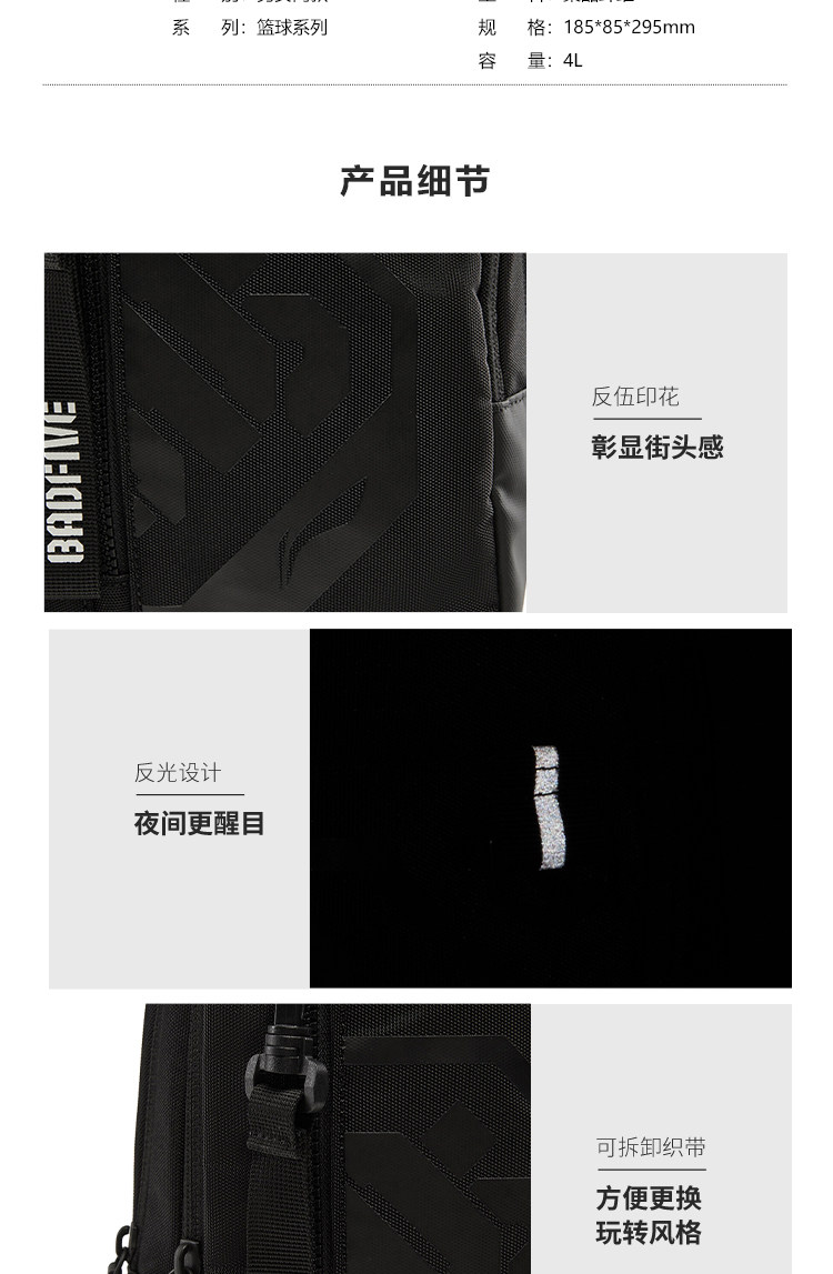 Li-Ning Multifunctional Chest Bag for Men and Women, New Outdoor Lightweight Casual High-End Color-Blocking Crossbody Shoulder Sports Bag