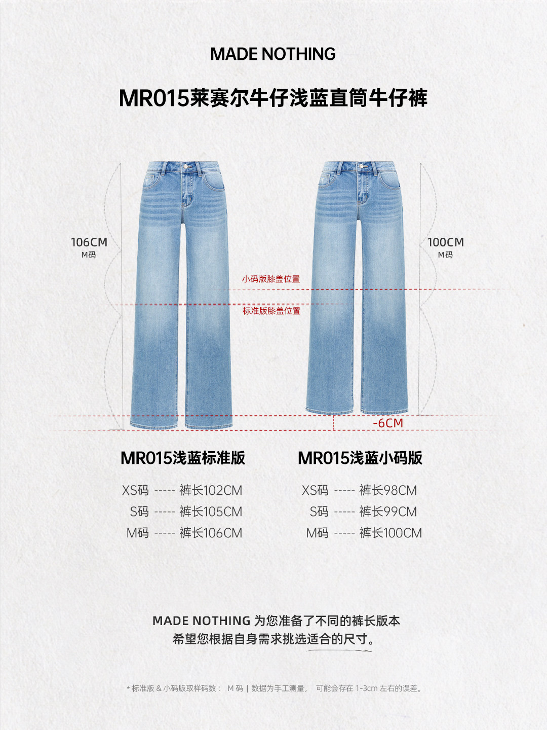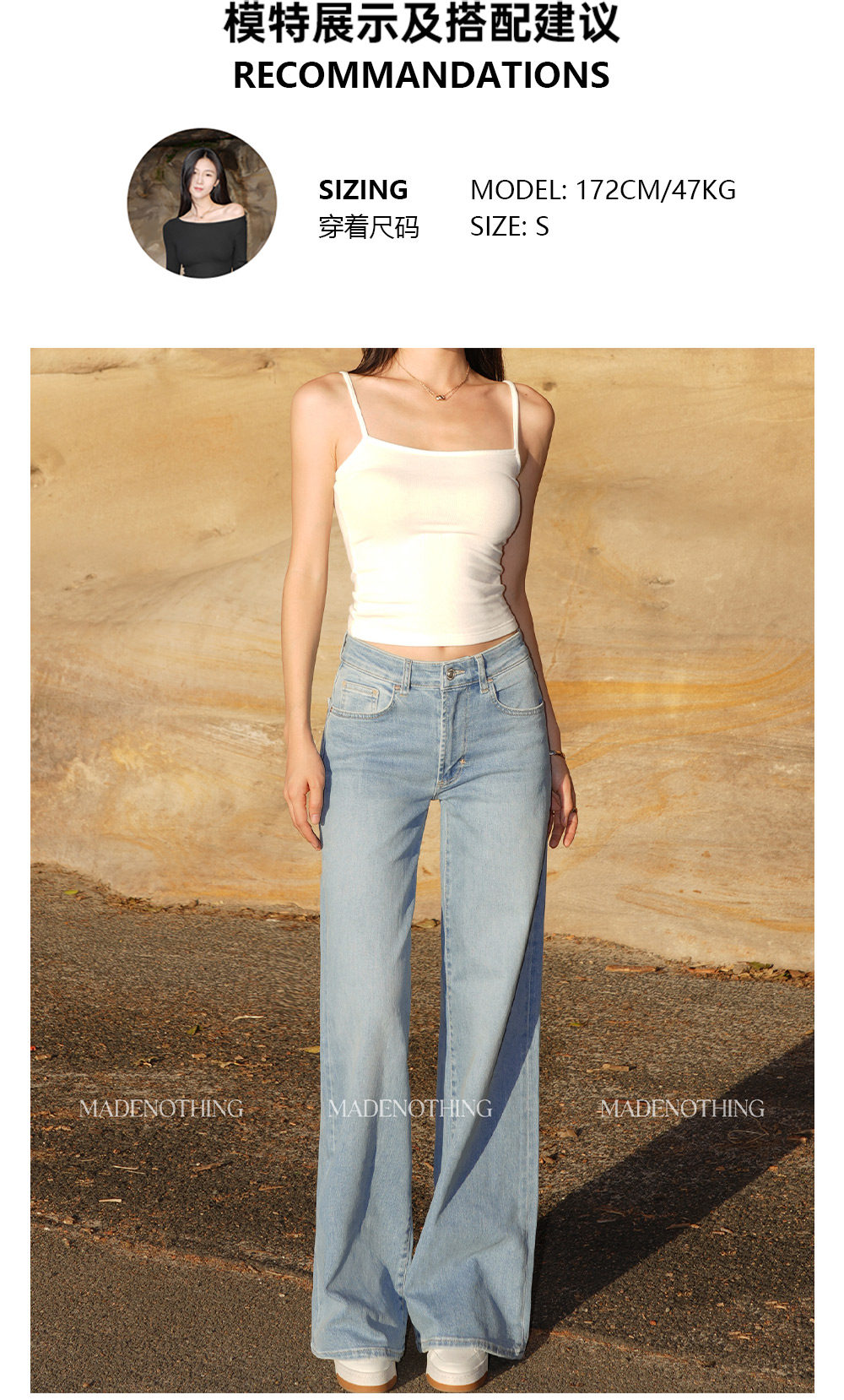Made Nothing Mr015 Light Blue Straight Elastic Mid-Waist Straight-Leg Floor-Length Jeans for Women