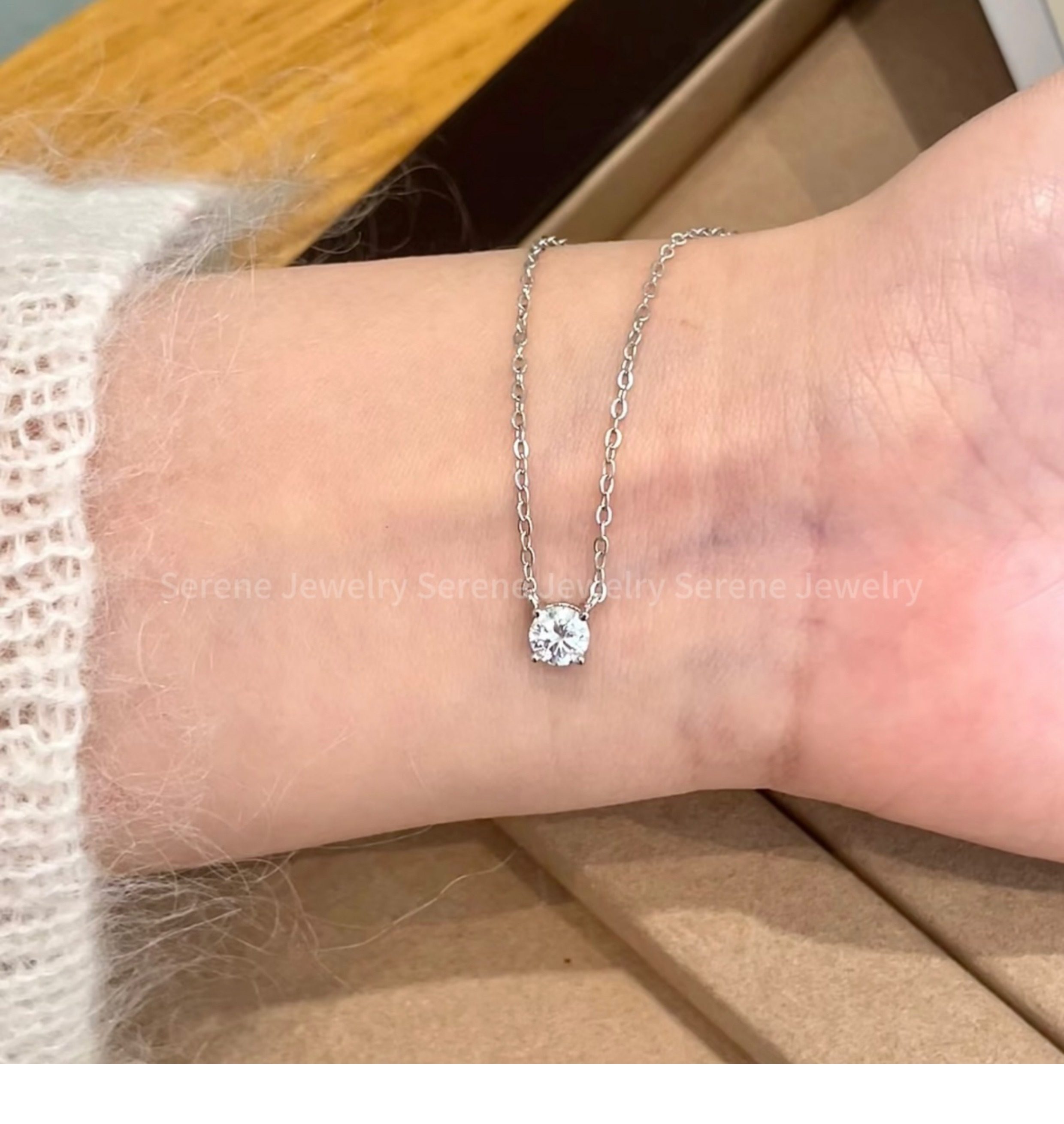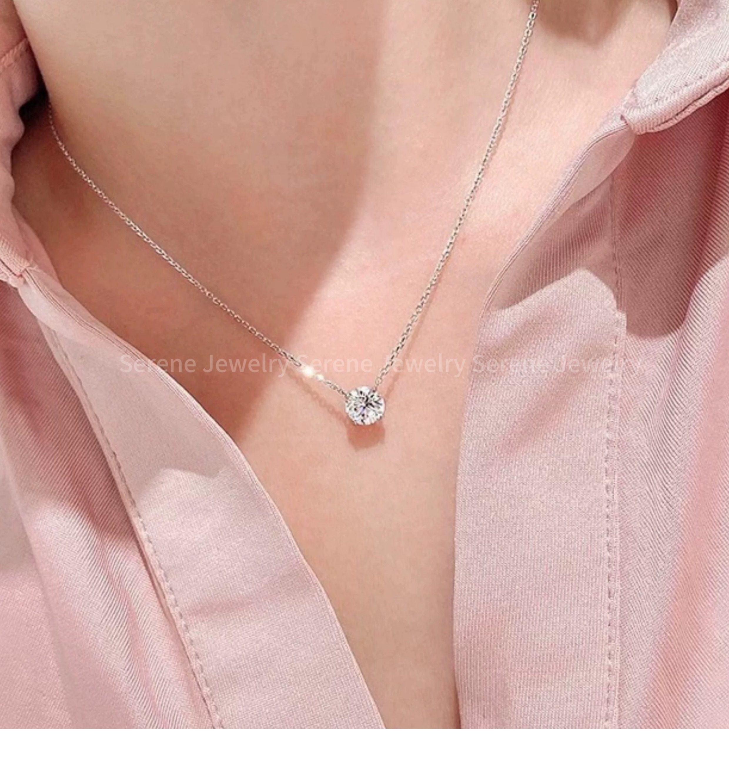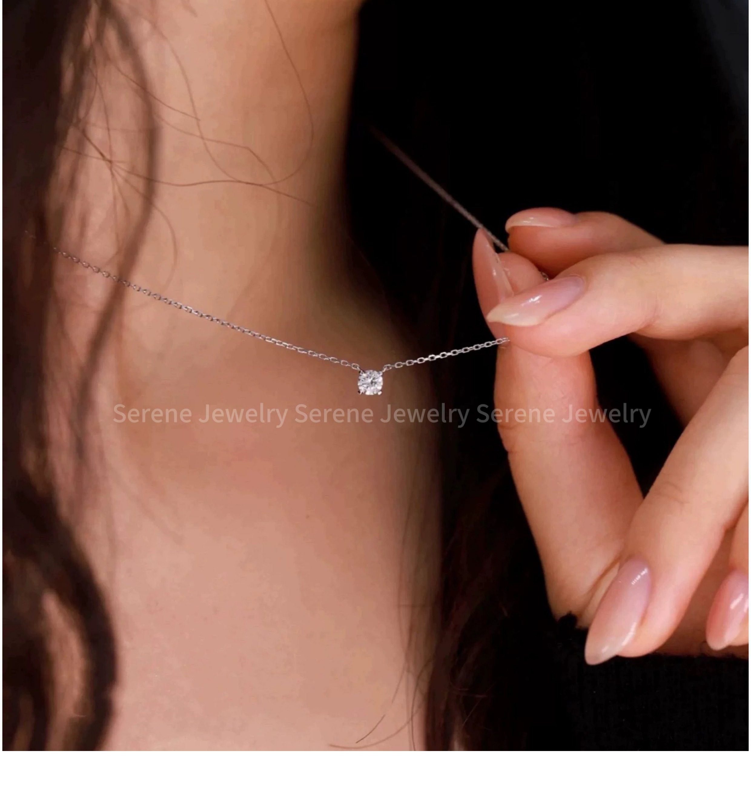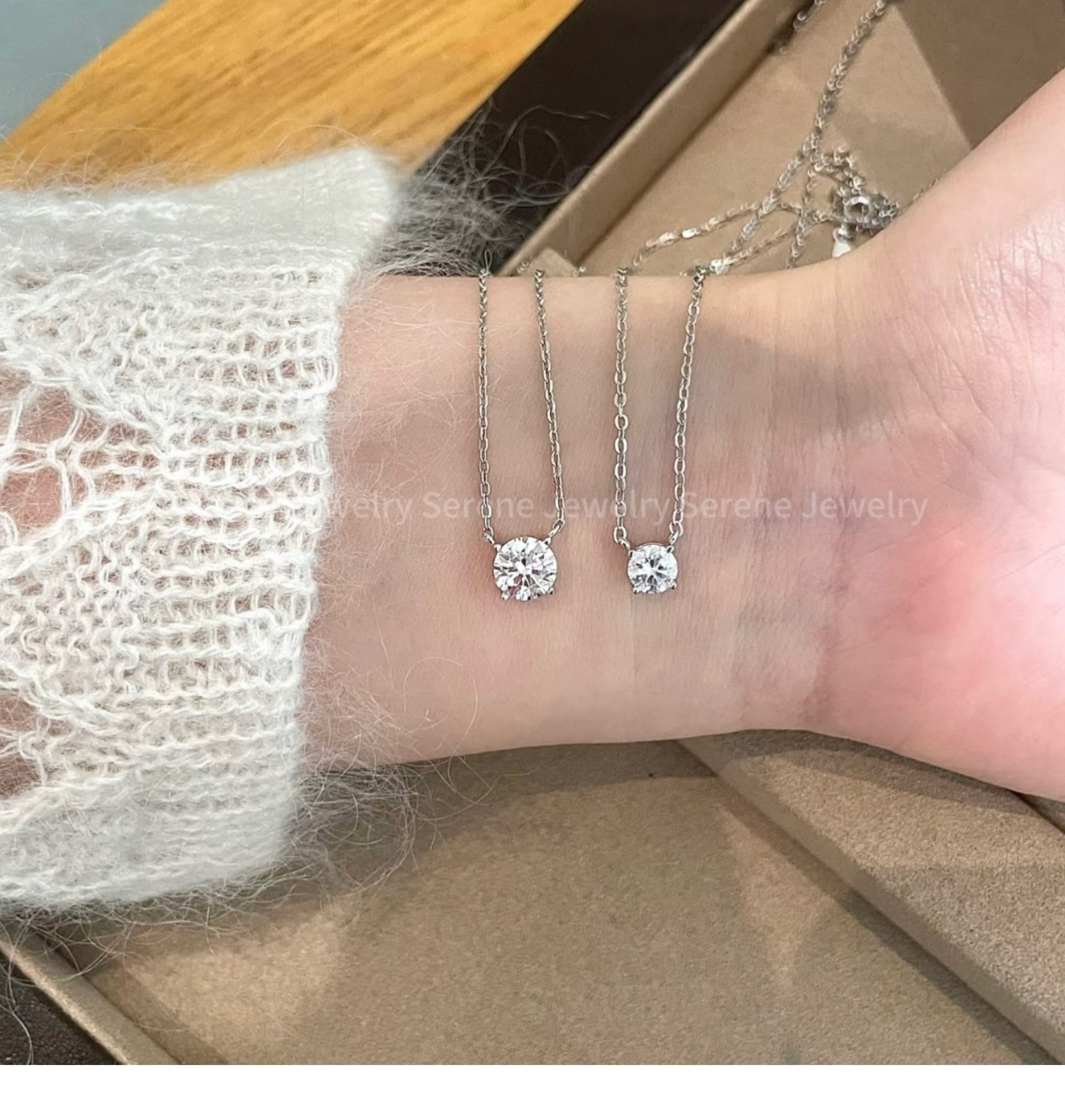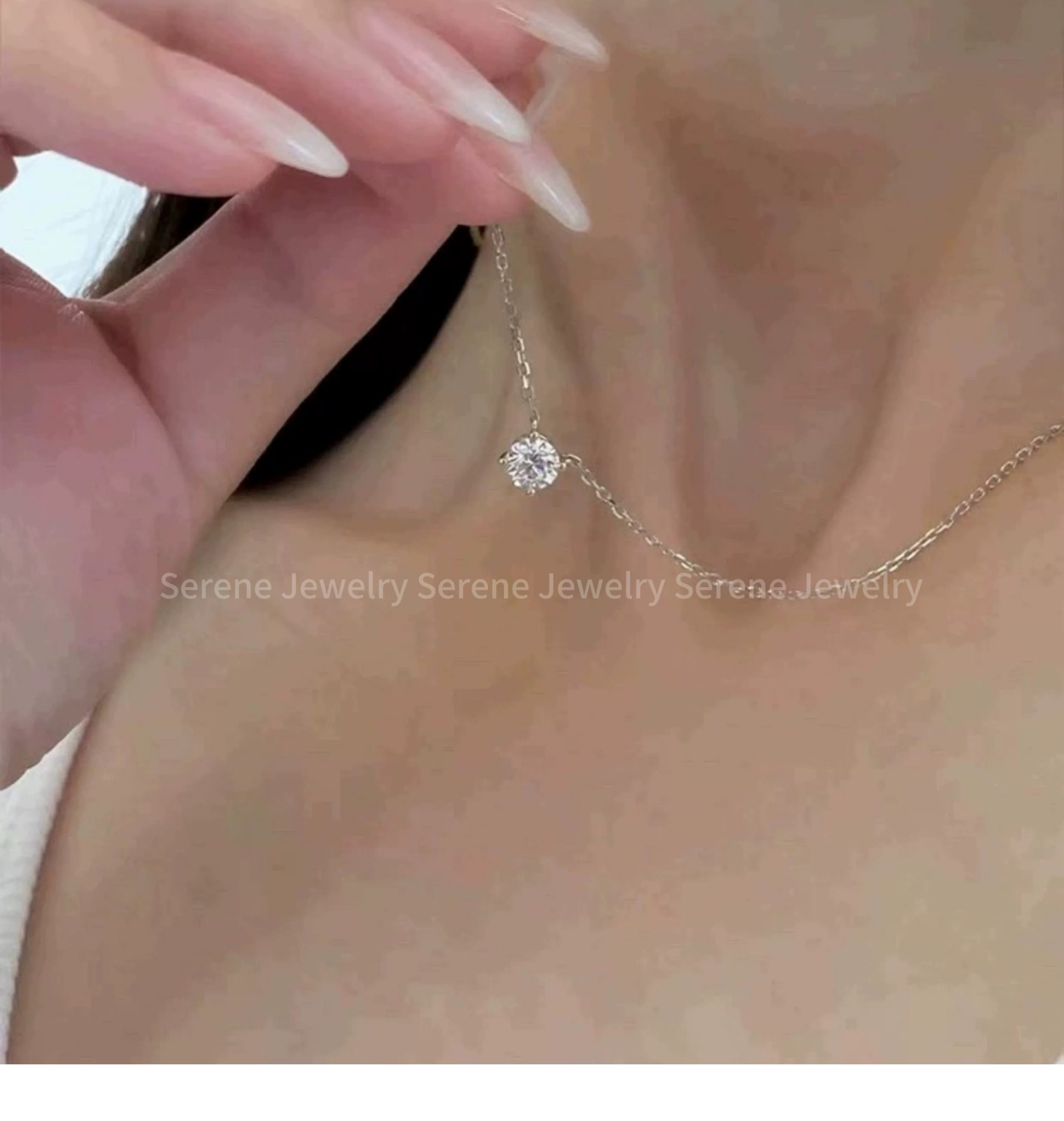 Zhao Lusi Style Four-Prong Moissanite Necklace for Women, S925 Sterling Silver, Light Luxury Niche Single Diamond Clavicle Chain