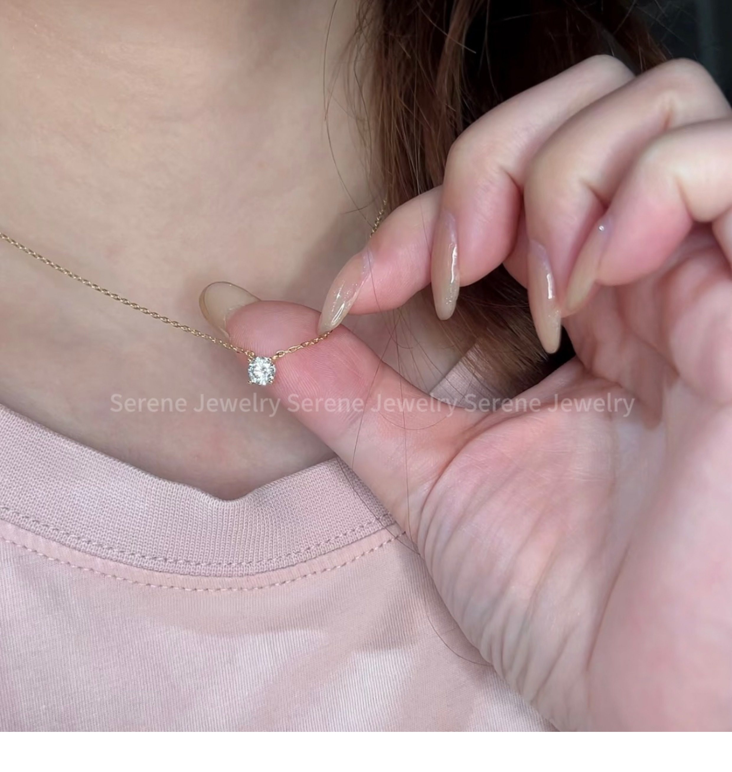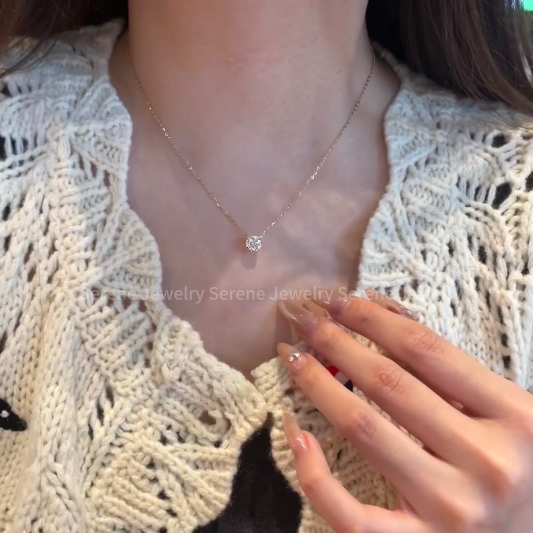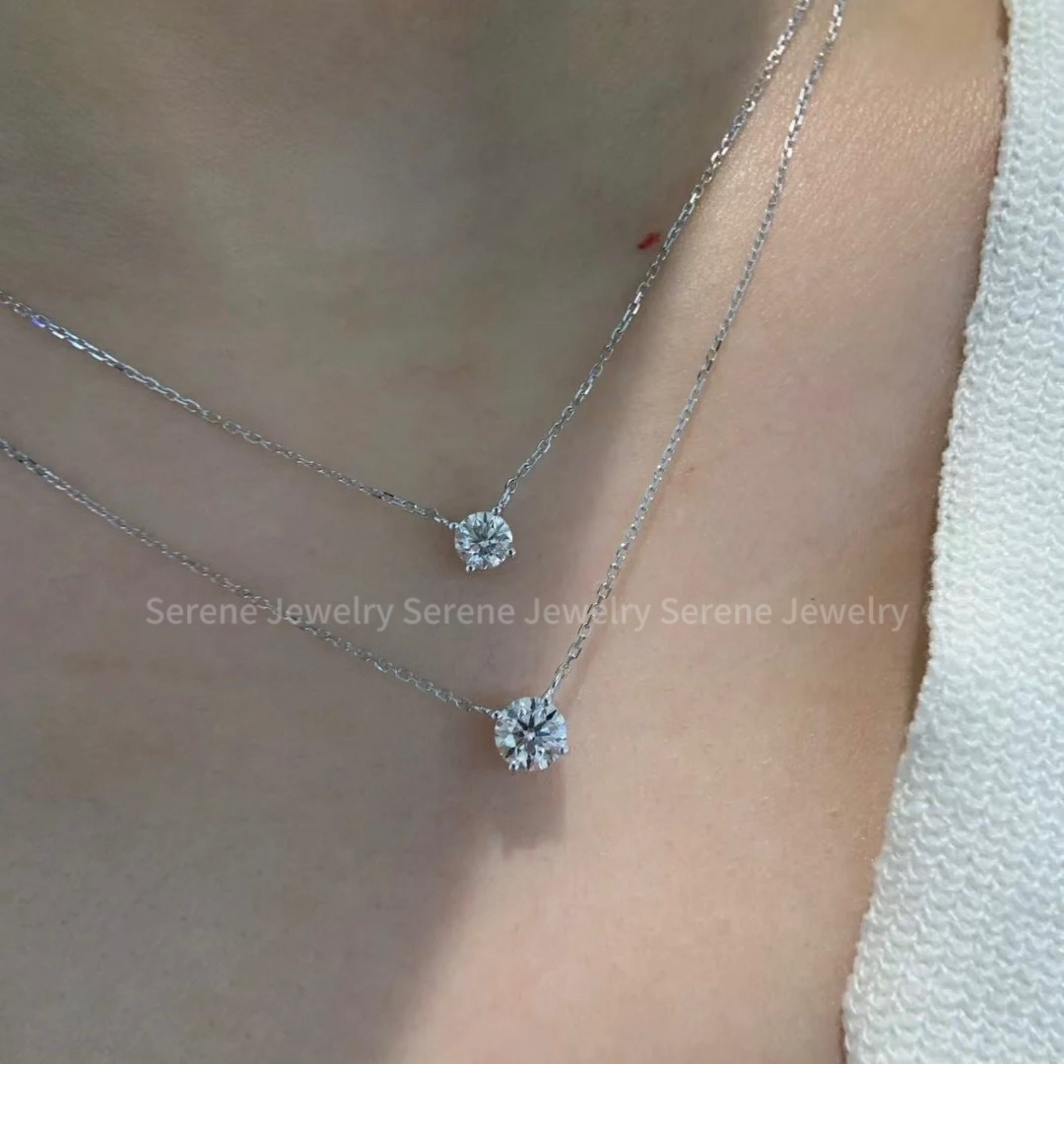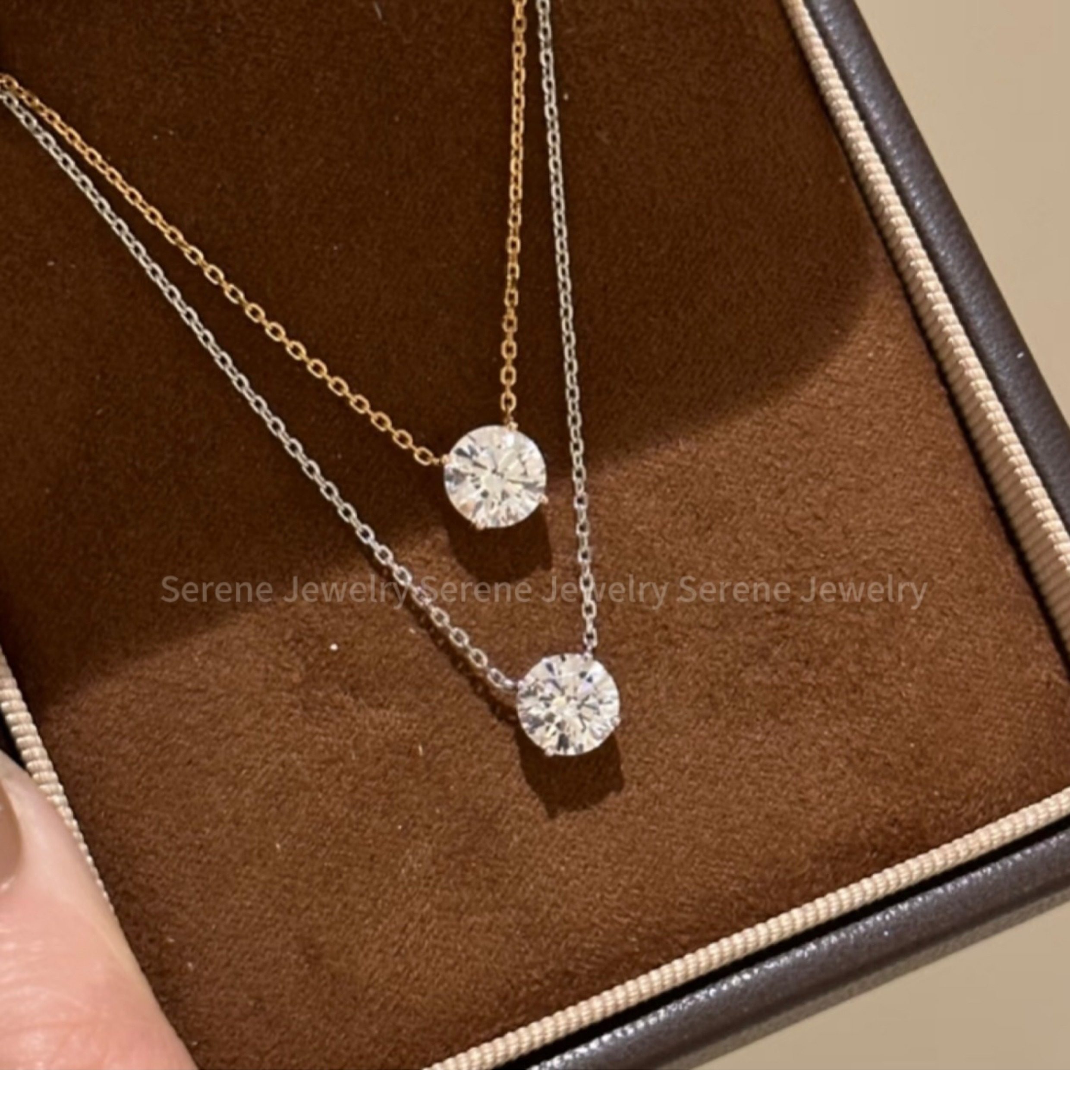 Zhao Lusi Style Four-Prong Moissanite Necklace for Women, S925 Sterling Silver, Light Luxury Niche Single Diamond Clavicle Chain