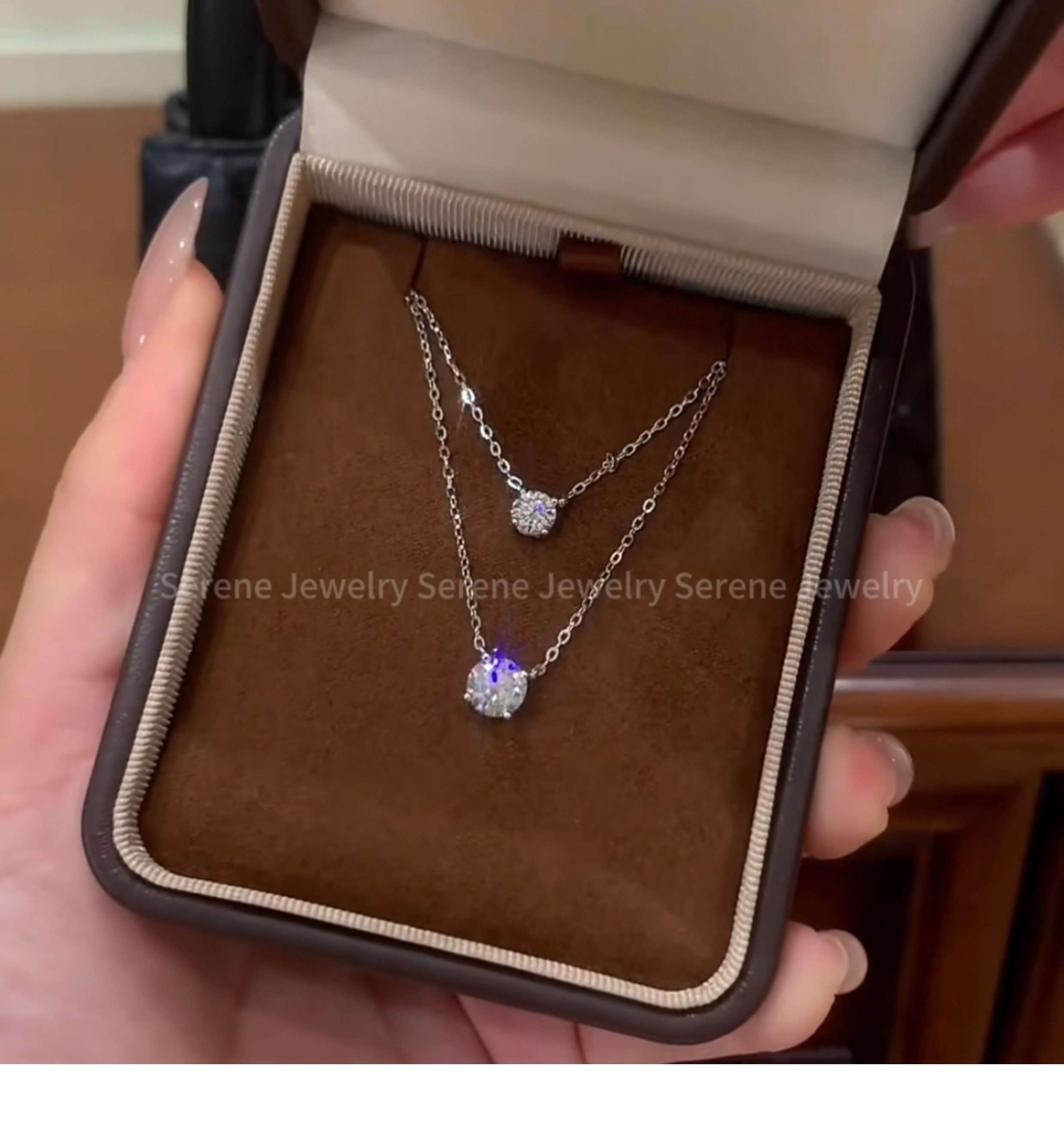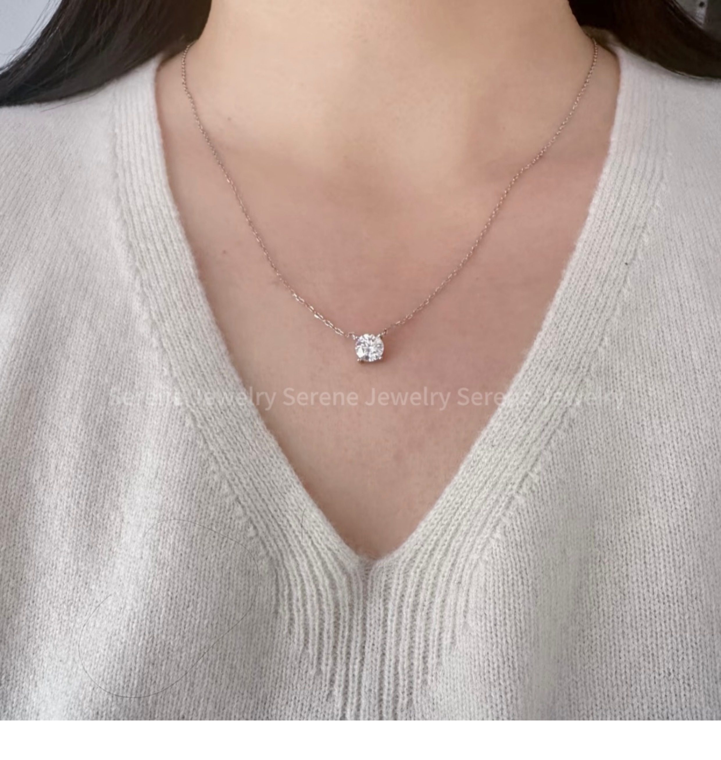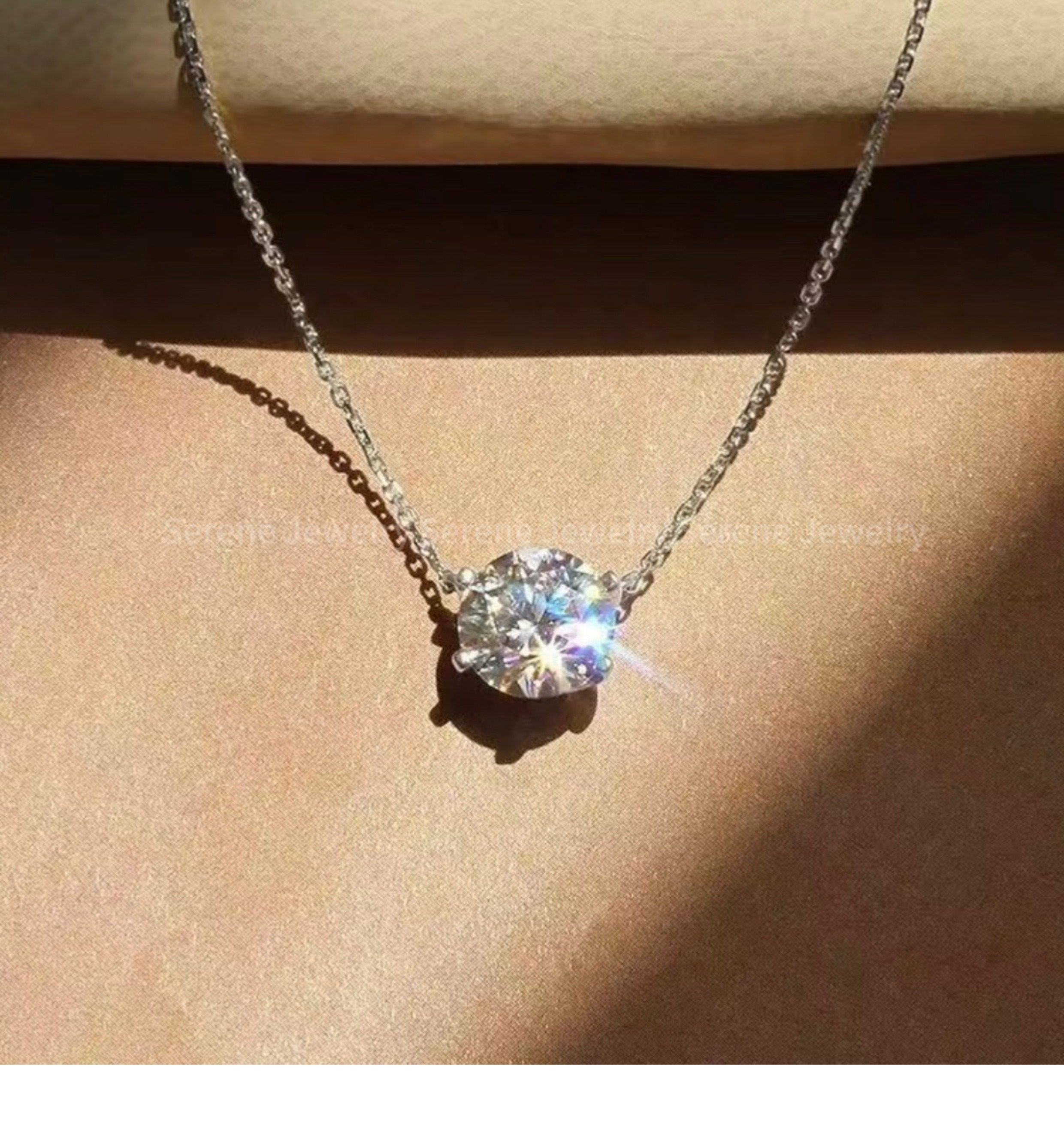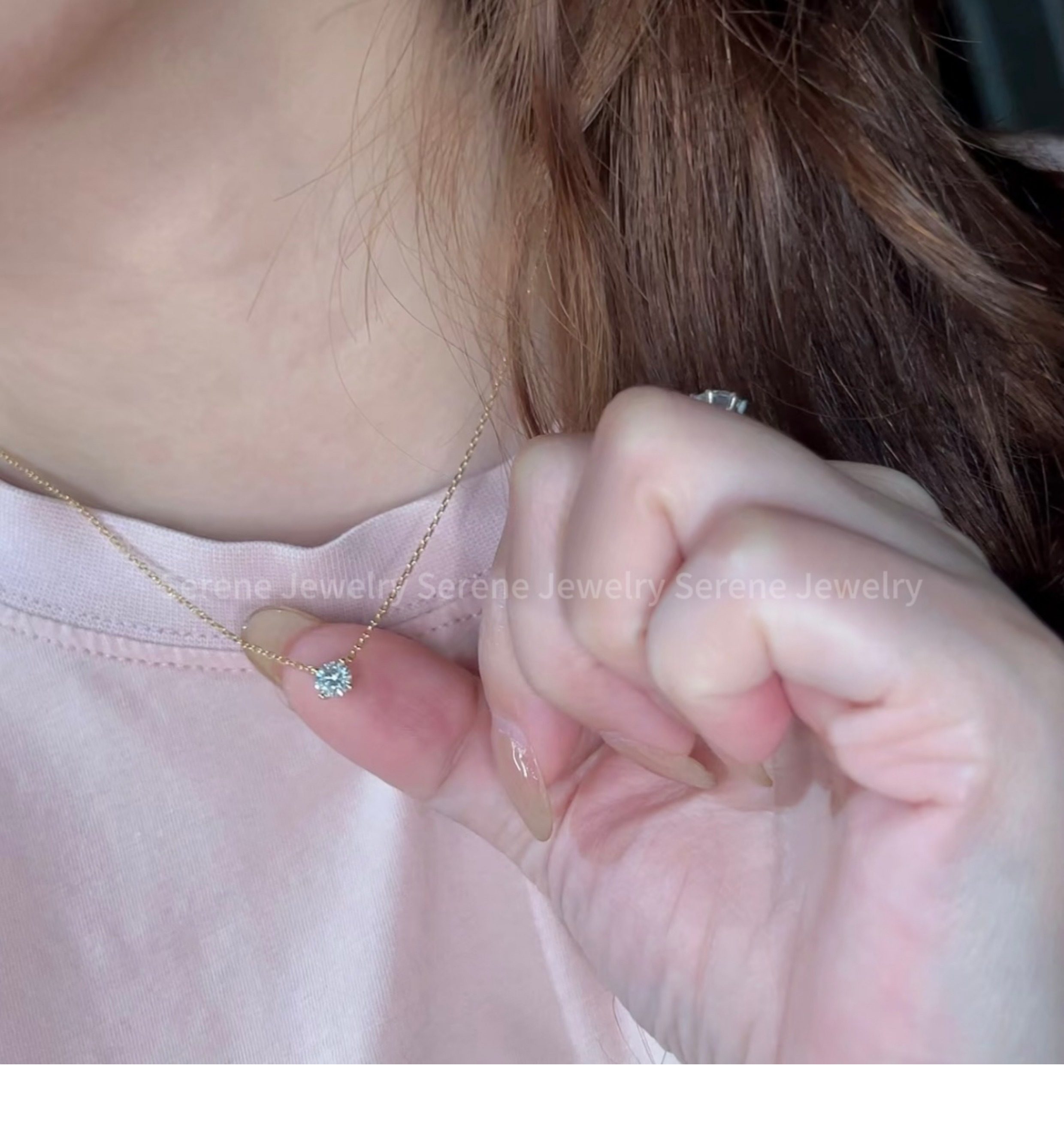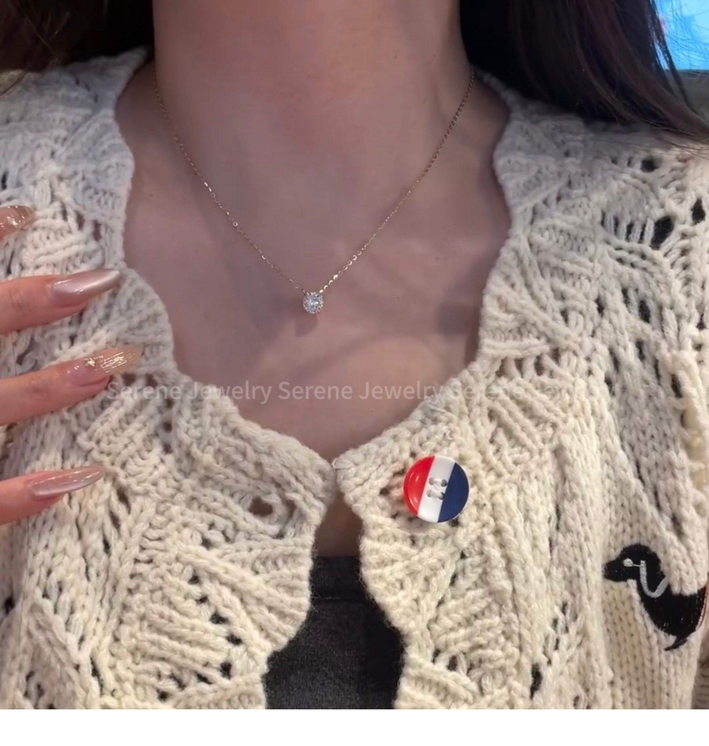 Zhao Lusi Style Four-Prong Moissanite Necklace for Women, S925 Sterling Silver, Light Luxury Niche Single Diamond Clavicle Chain