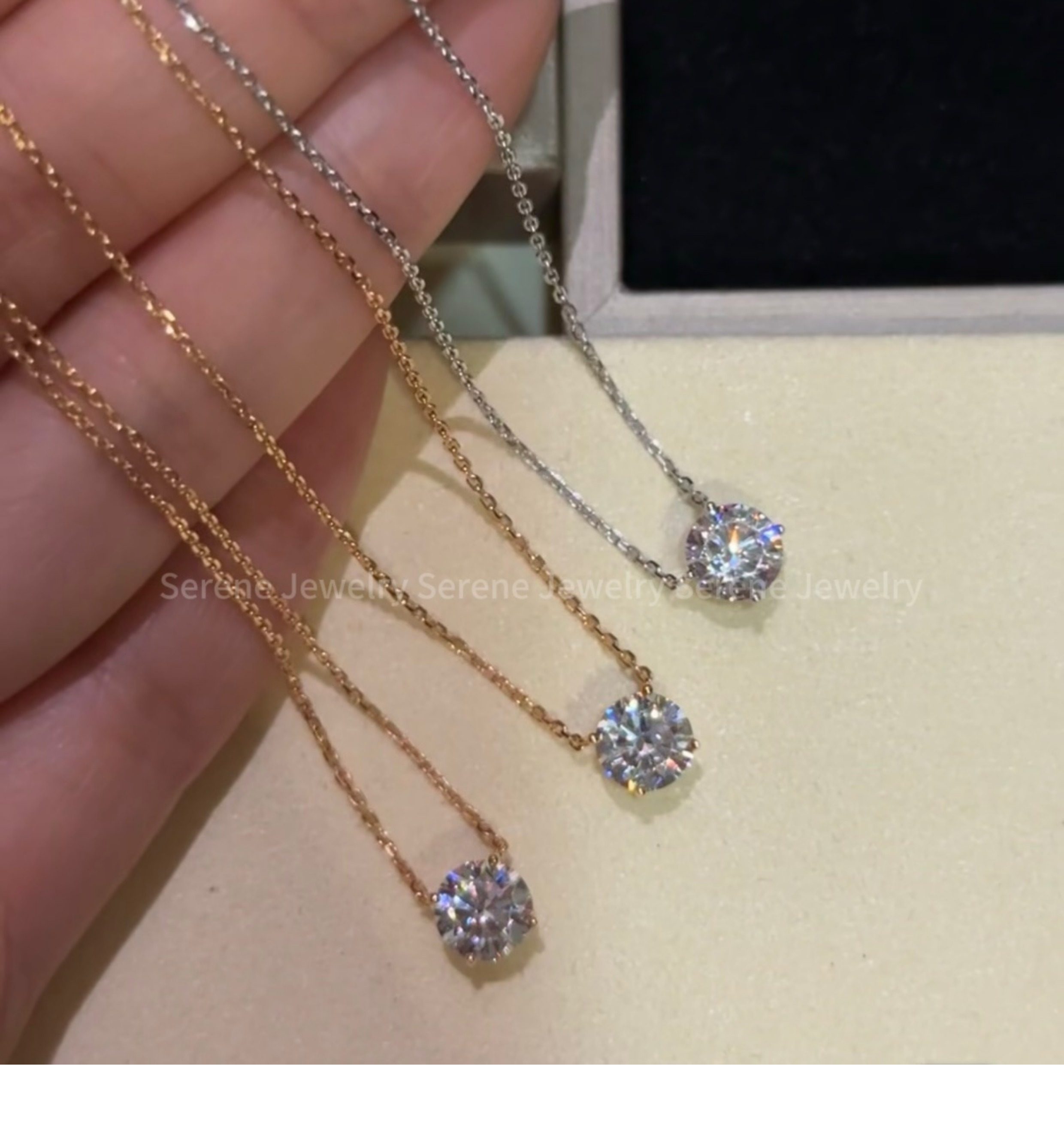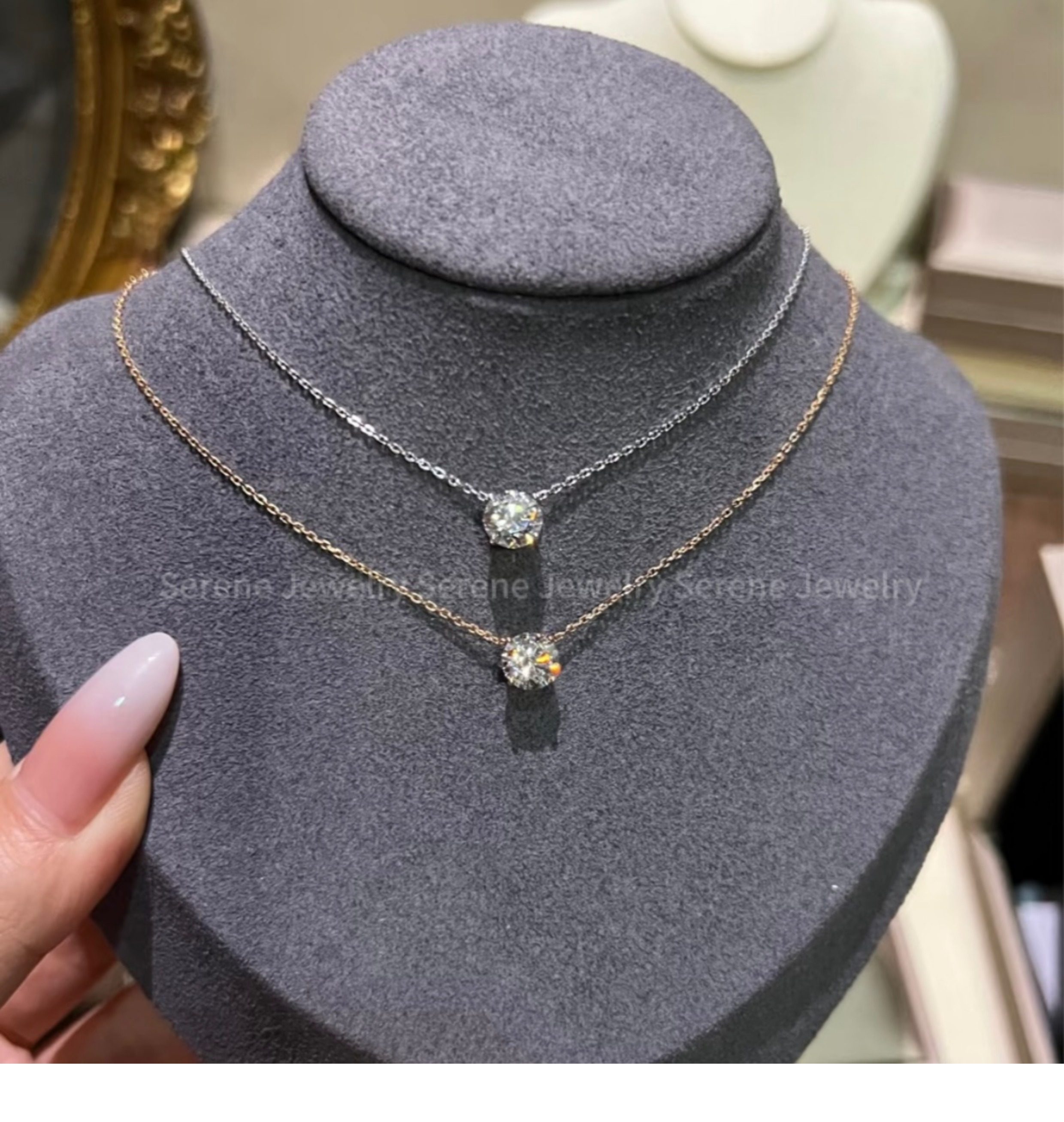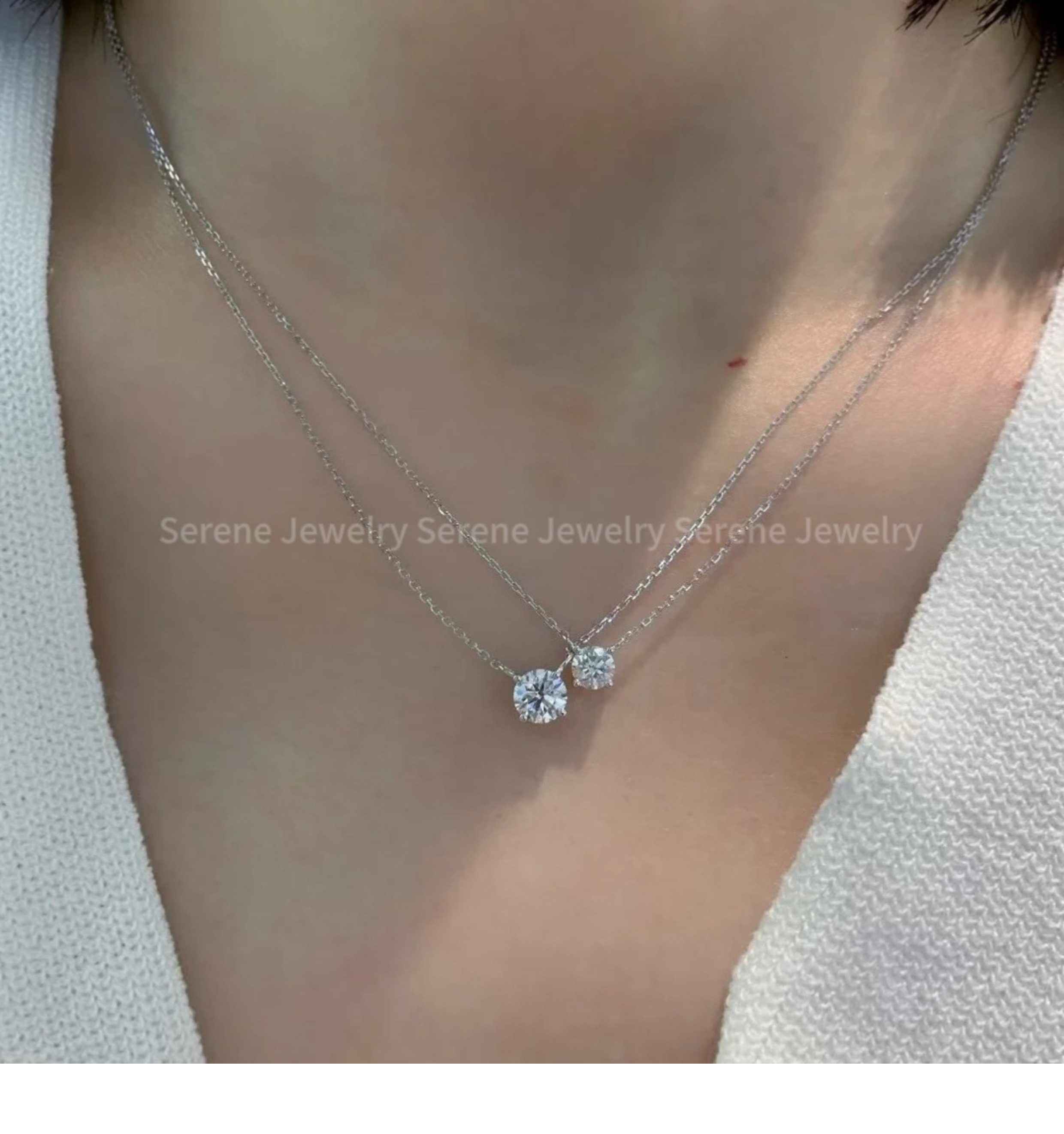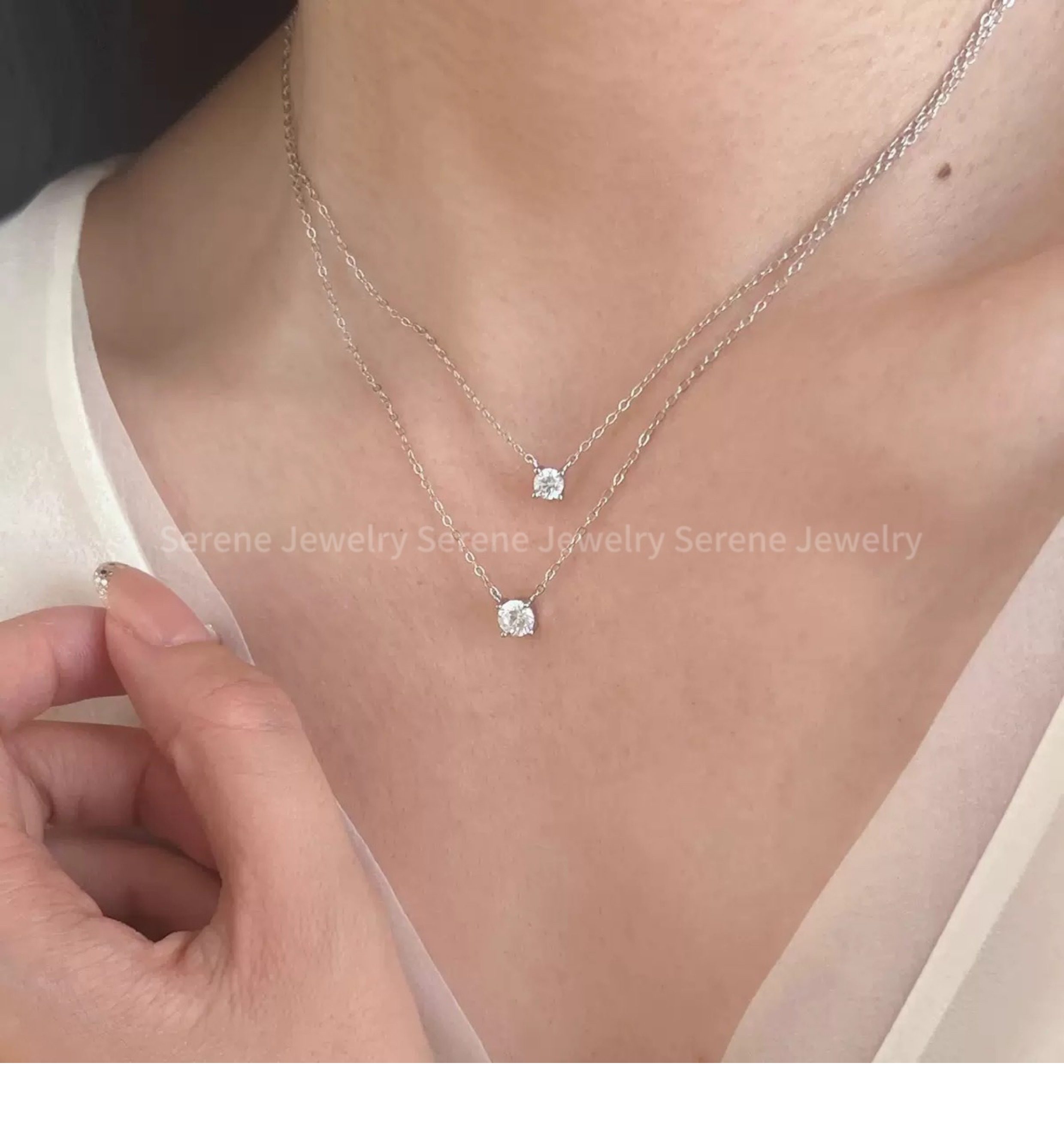 Zhao Lusi Style Four-Prong Moissanite Necklace for Women, S925 Sterling Silver, Light Luxury Niche Single Diamond Clavicle Chain