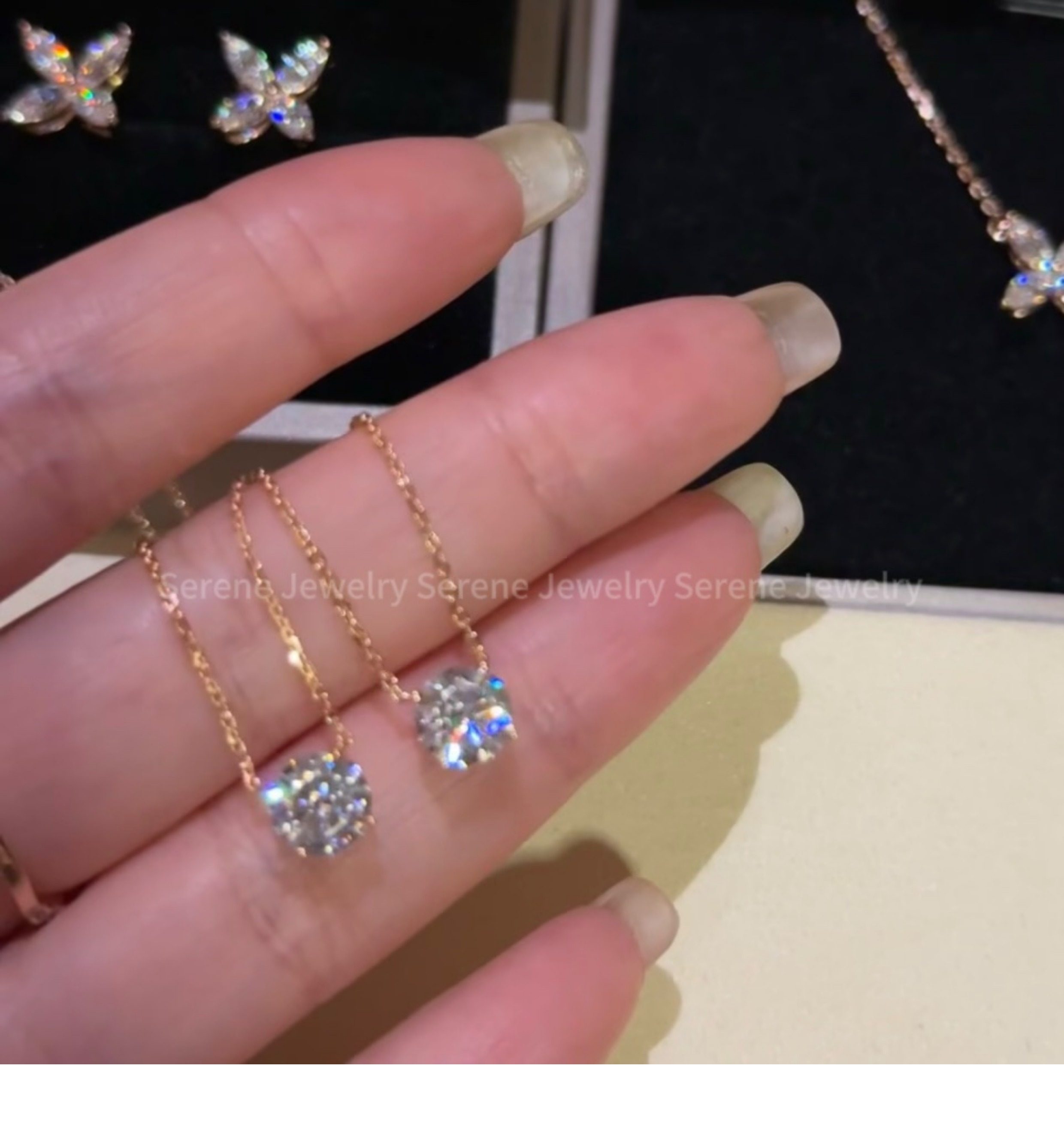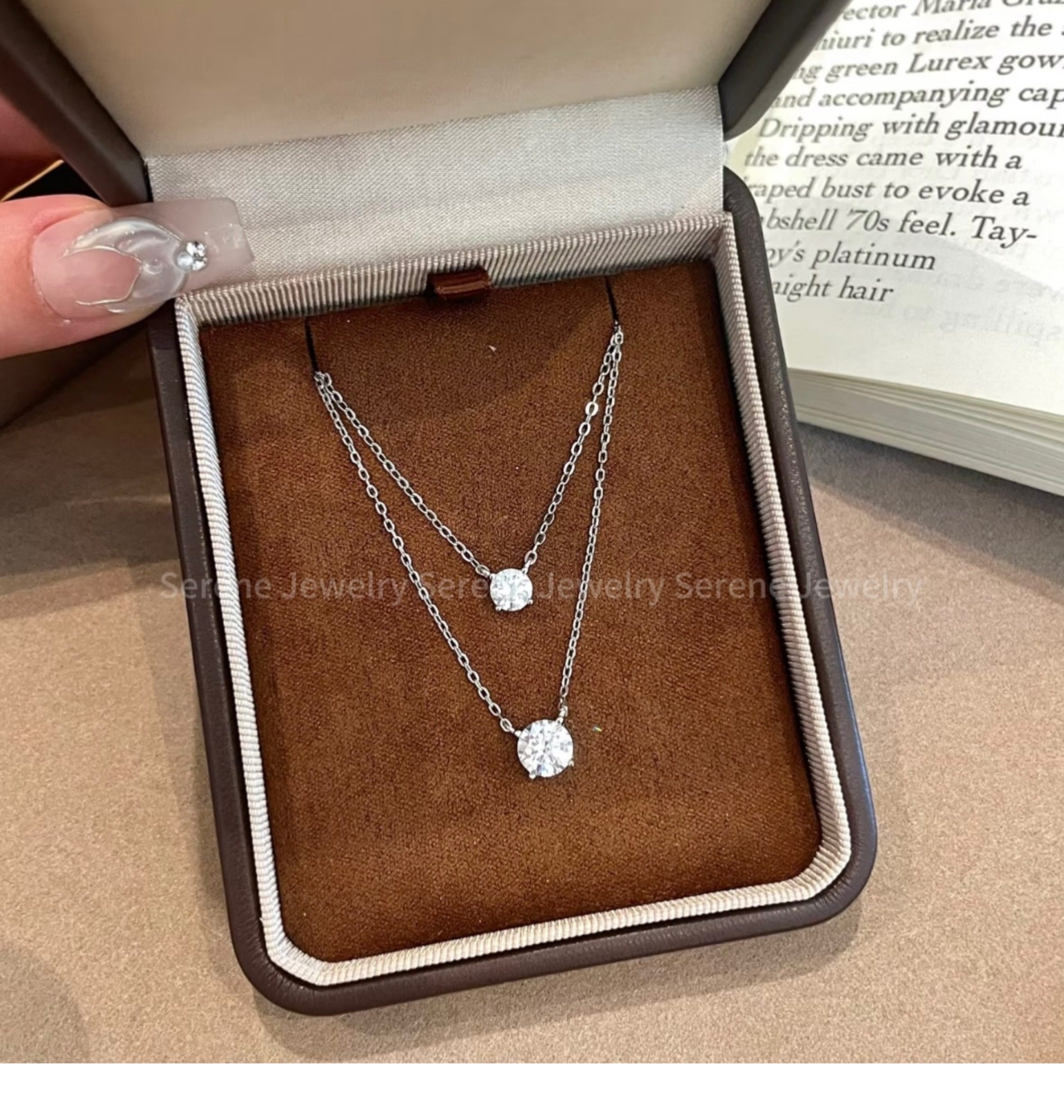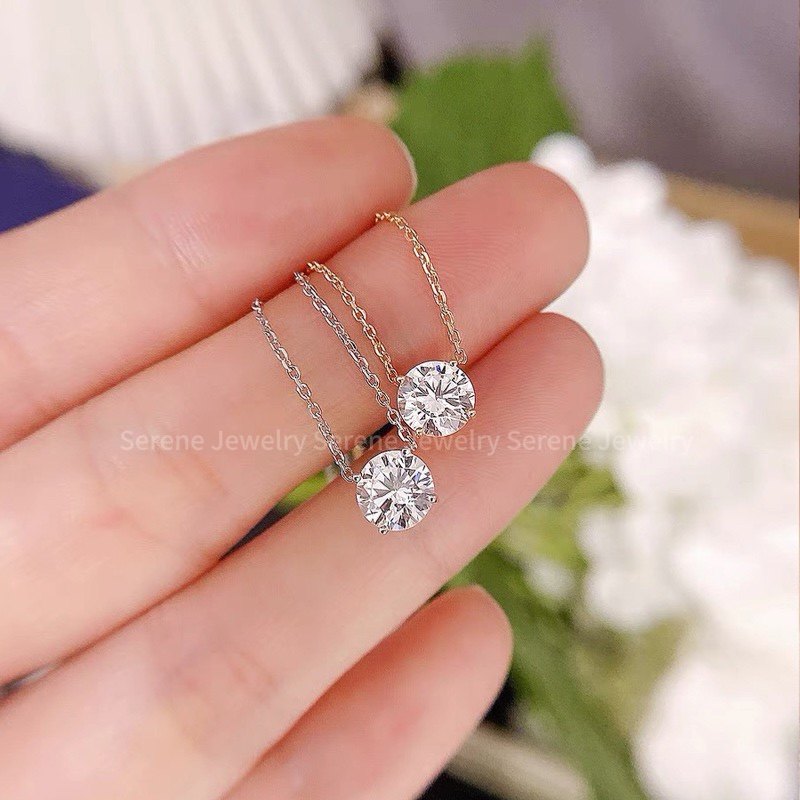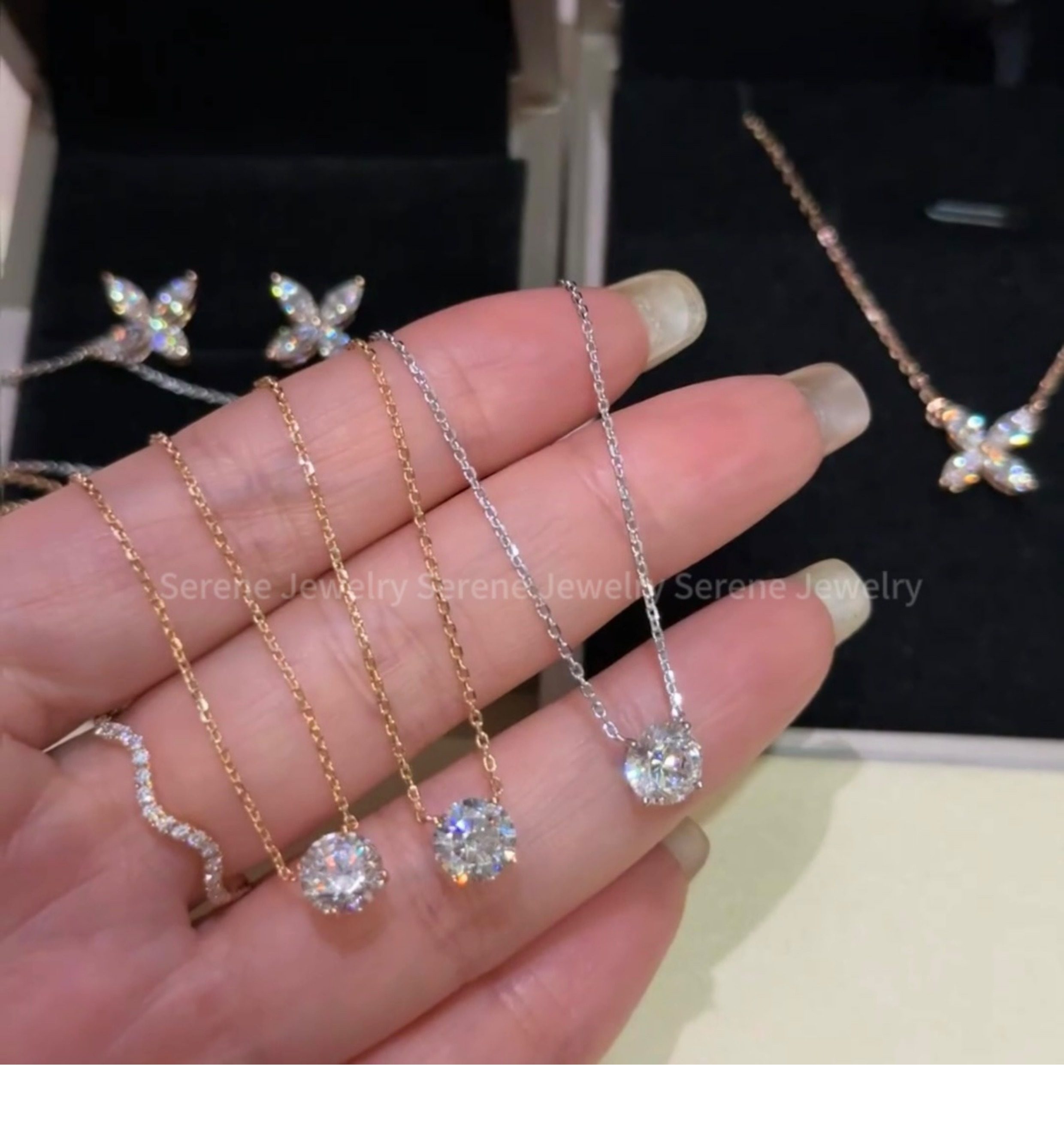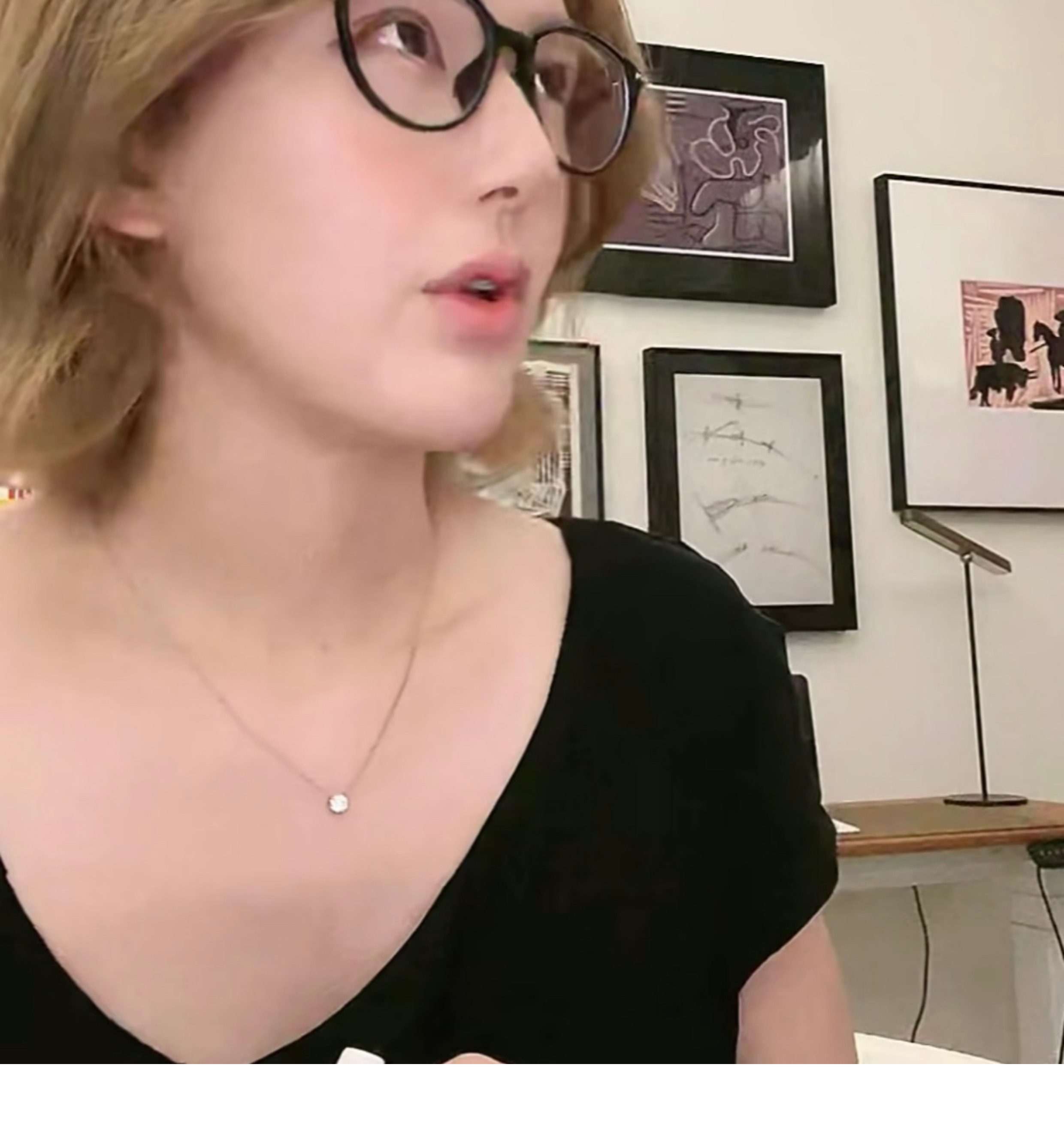 Zhao Lusi Style Four-Prong Moissanite Necklace for Women, S925 Sterling Silver, Light Luxury Niche Single Diamond Clavicle Chain
