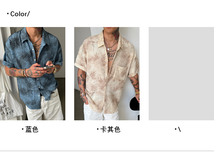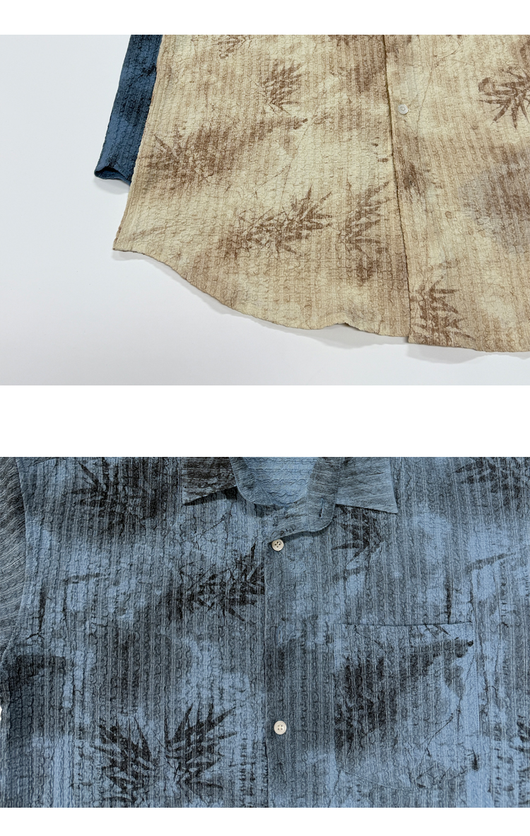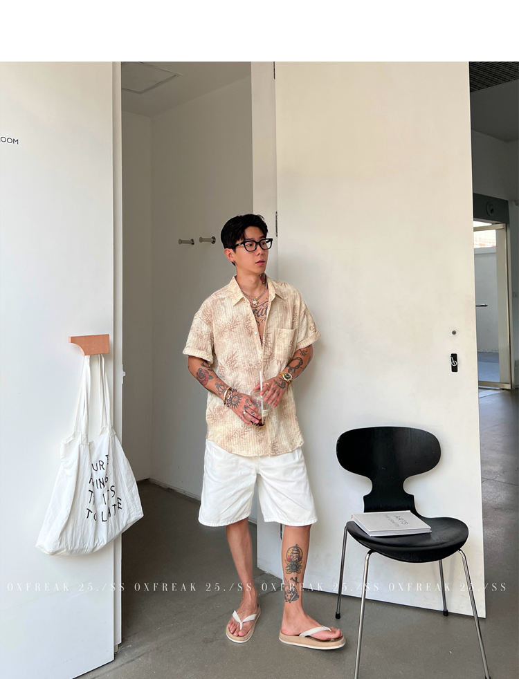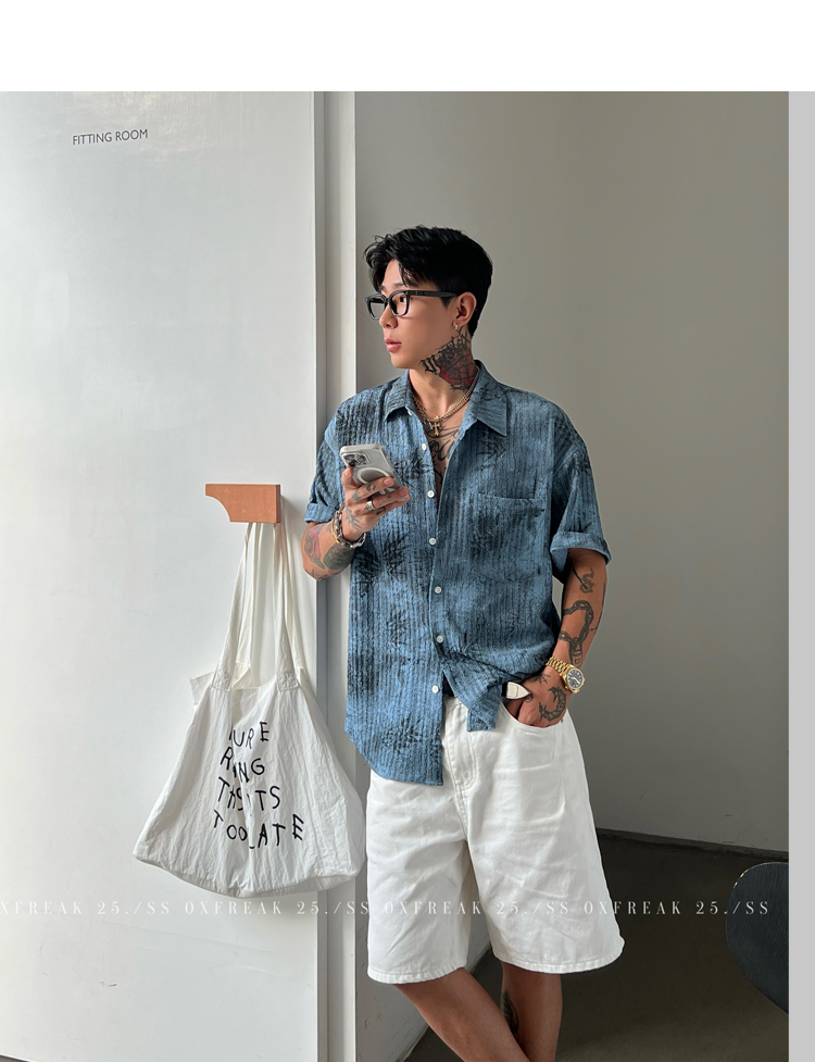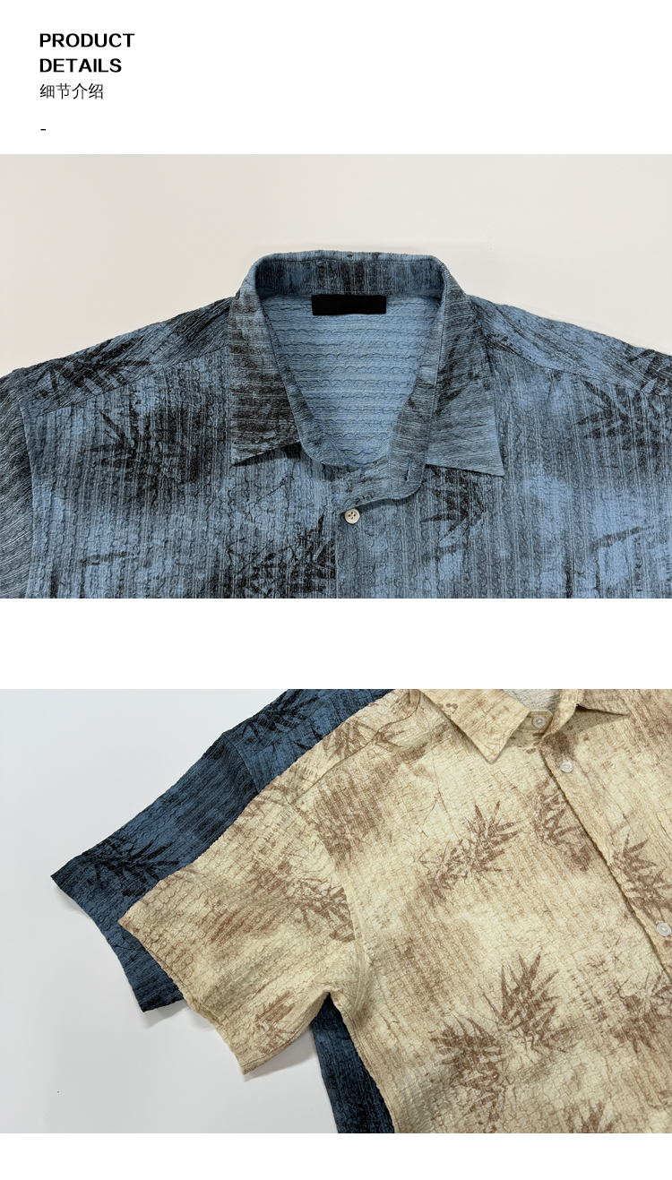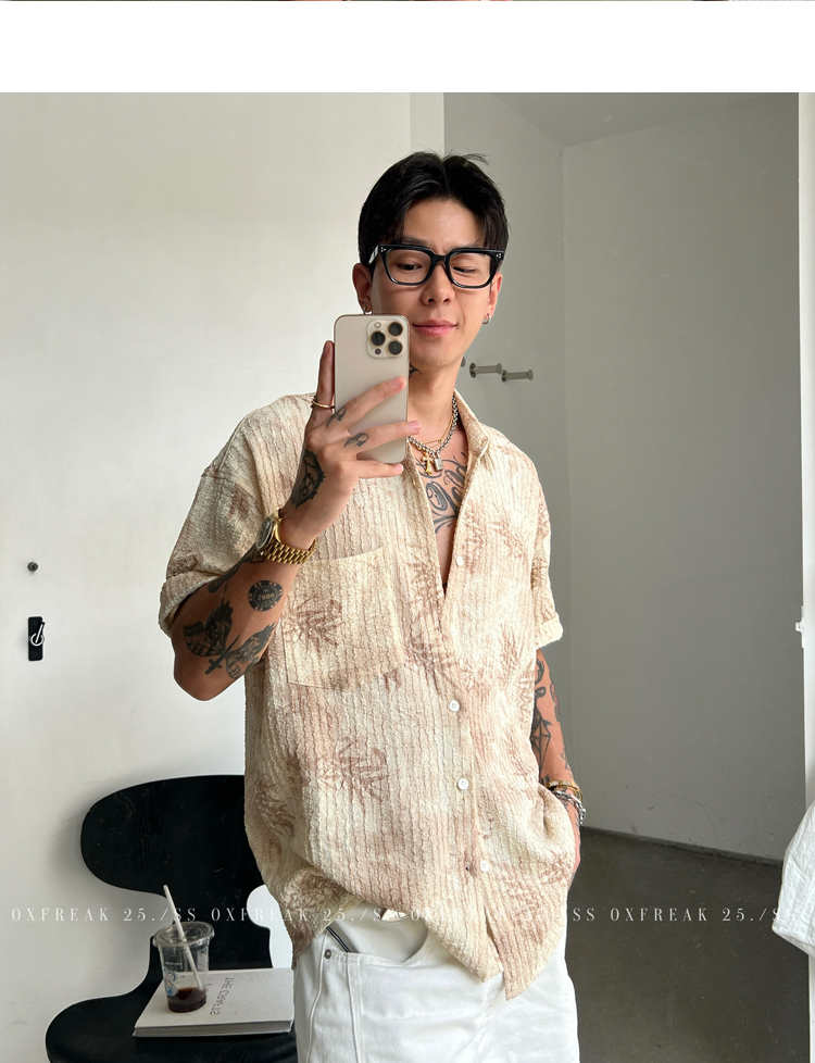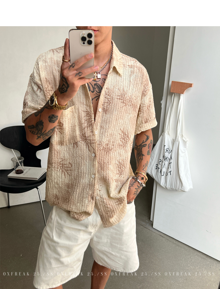 Oxfreak'Tie-Dye Floral Textured' Old Money Style Wrinkled Short-Sleeve Shirt for Men, Vacation Style Shirt for Summer