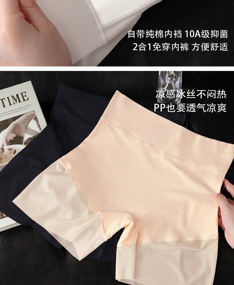 [Limited Time Offer] High-Waisted Tummy Control Butt-Lifting Ice Silk Panties for Women, Anti-Exposure Safety Shorts, Seamless Two-In-One Leggings