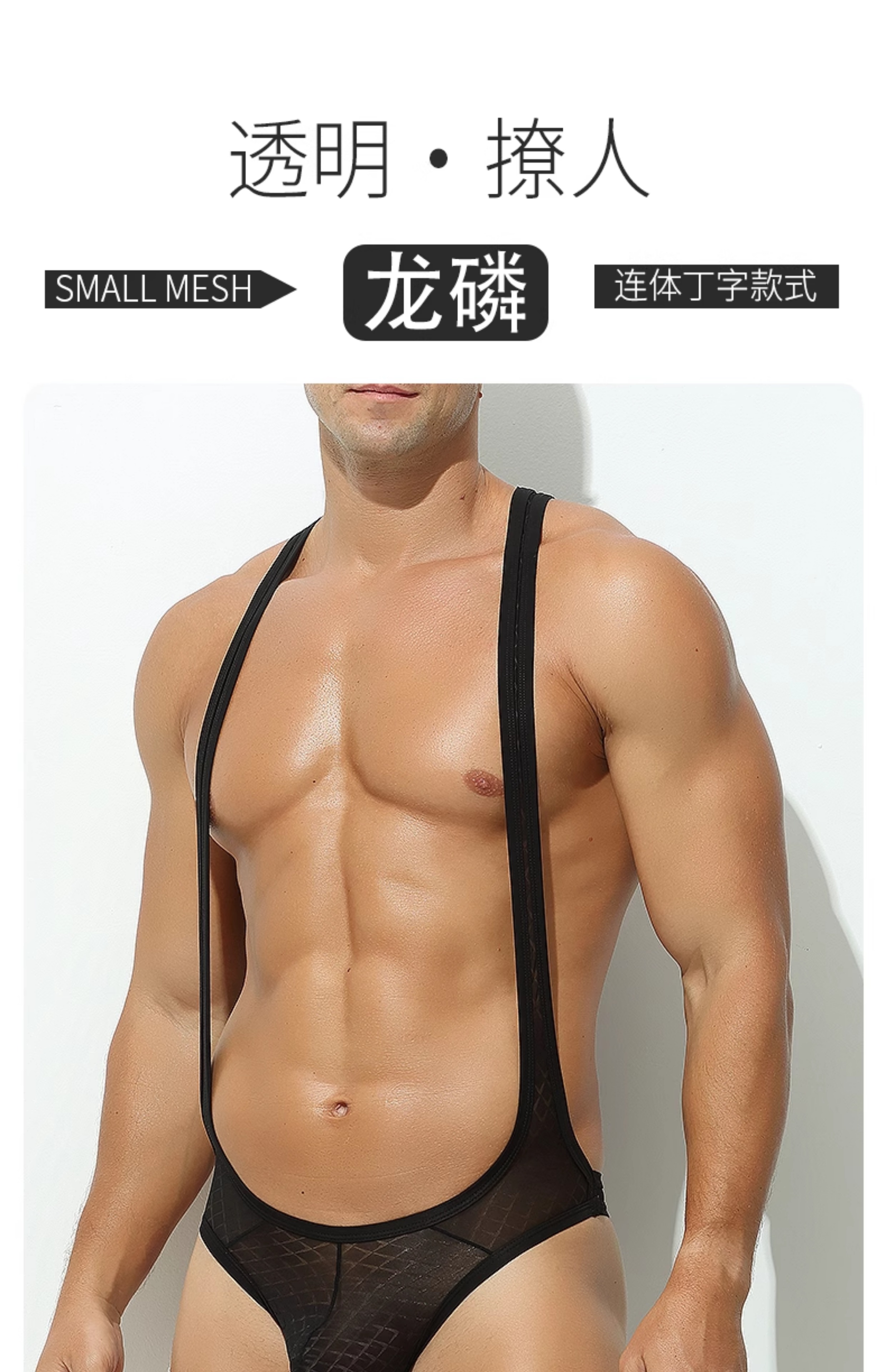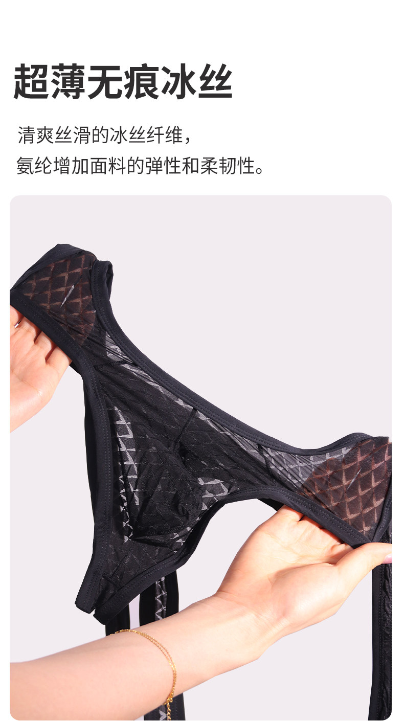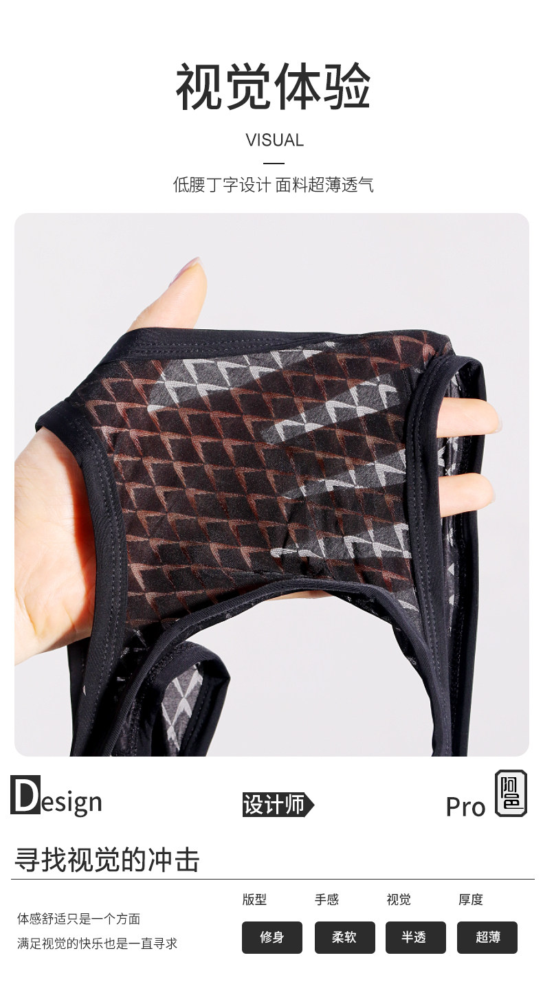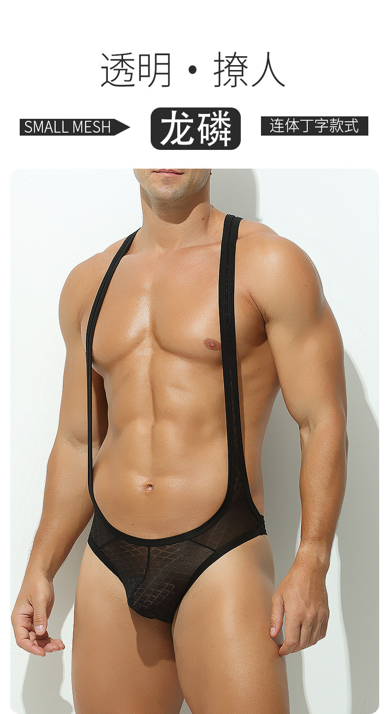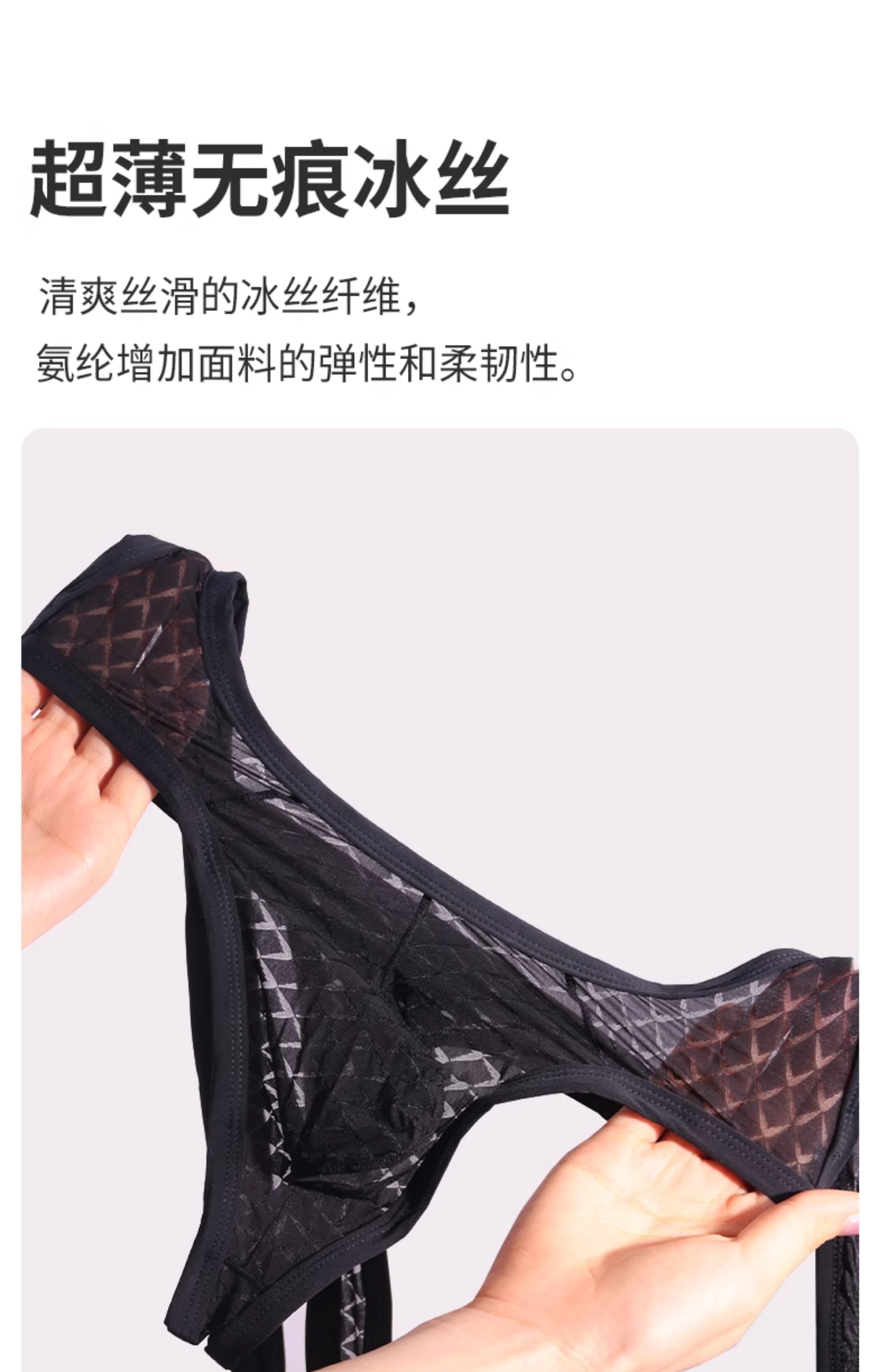 Men's Shapewear One-Piece Thong Mesh Breathable Low-Rise Sexy Lingerie Ultra-Thin Transparent Summer Briefs