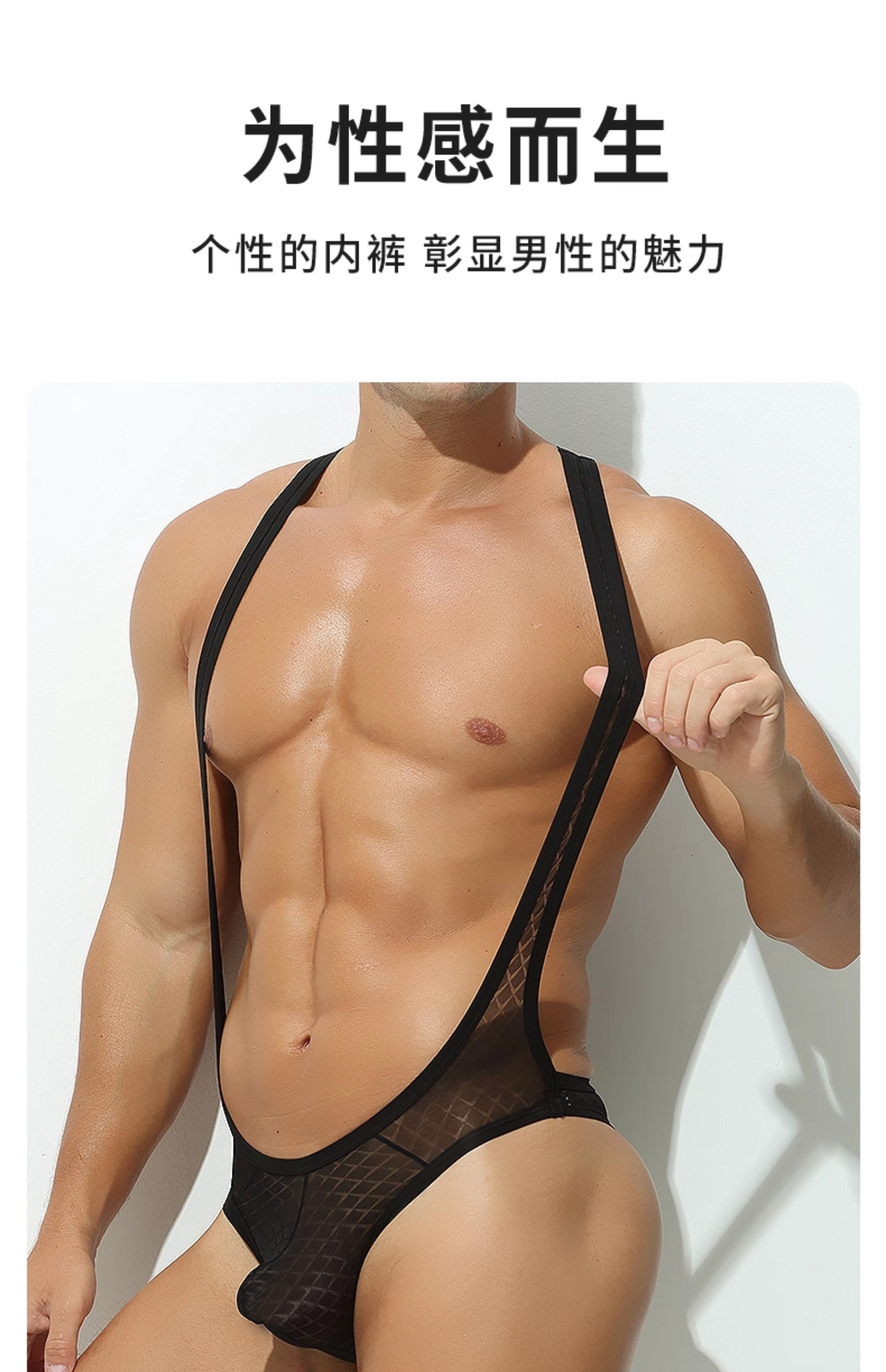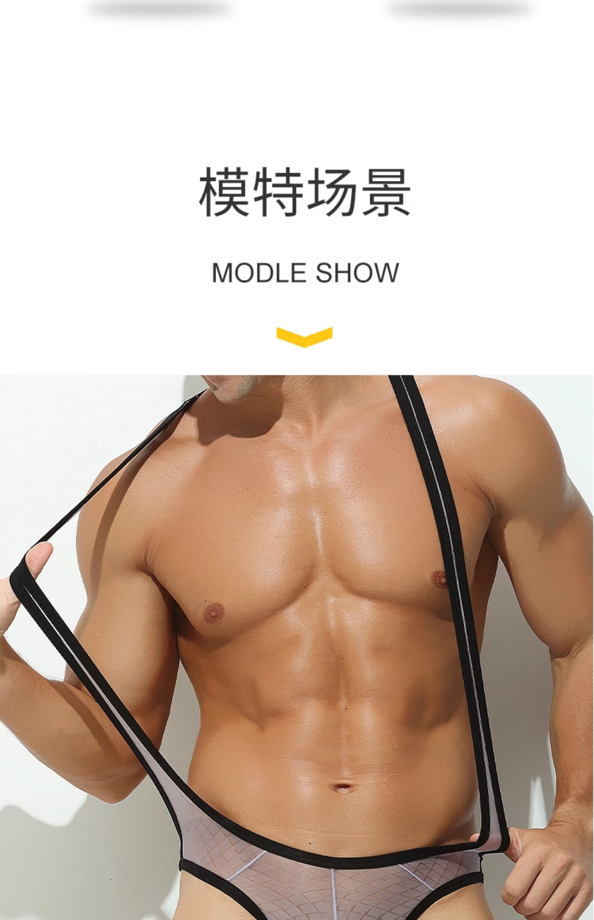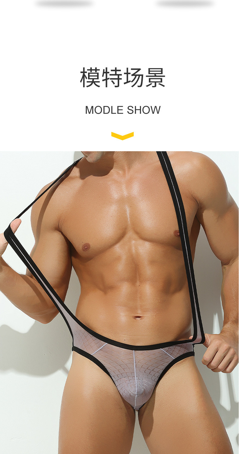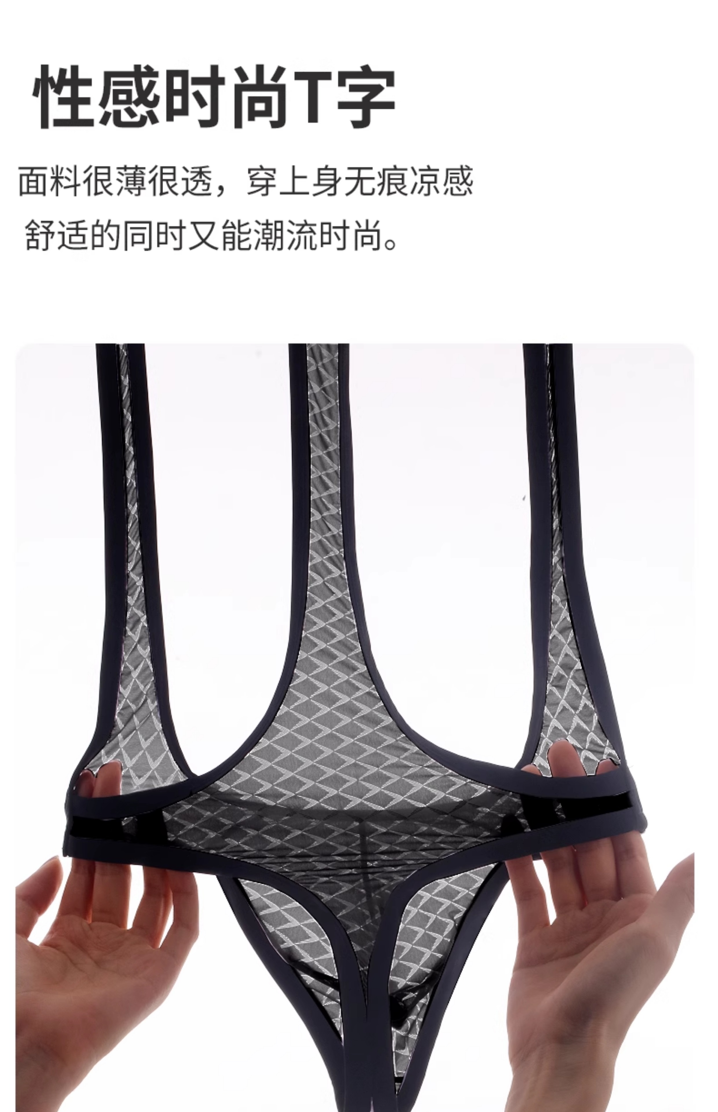 Men's Shapewear One-Piece Thong Mesh Breathable Low-Rise Sexy Lingerie Ultra-Thin Transparent Summer Briefs