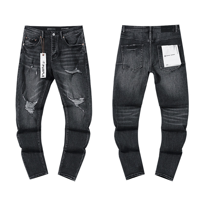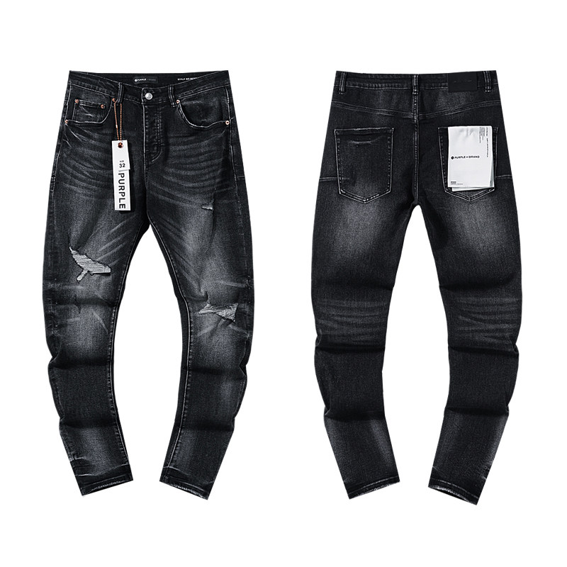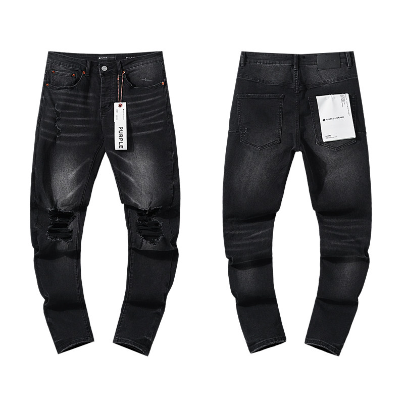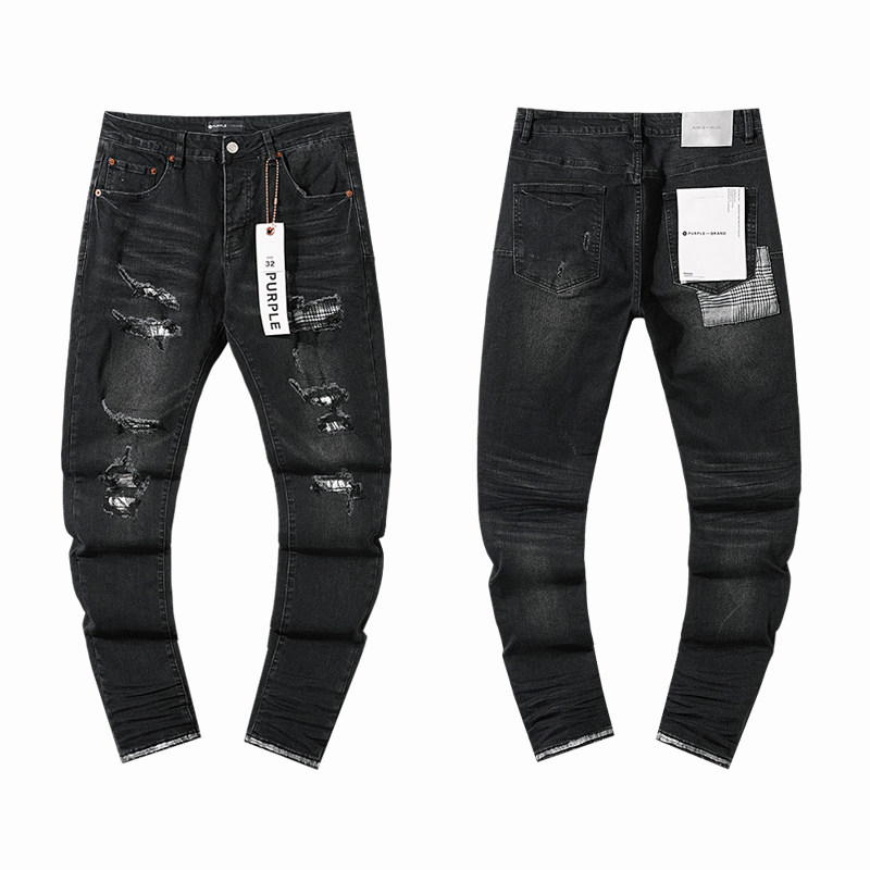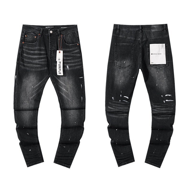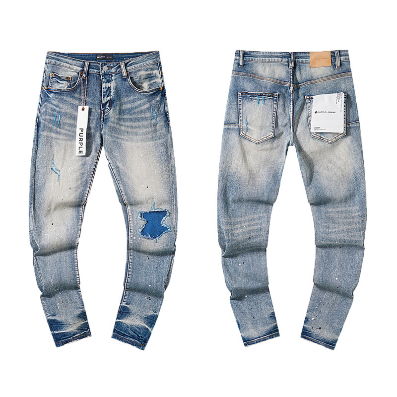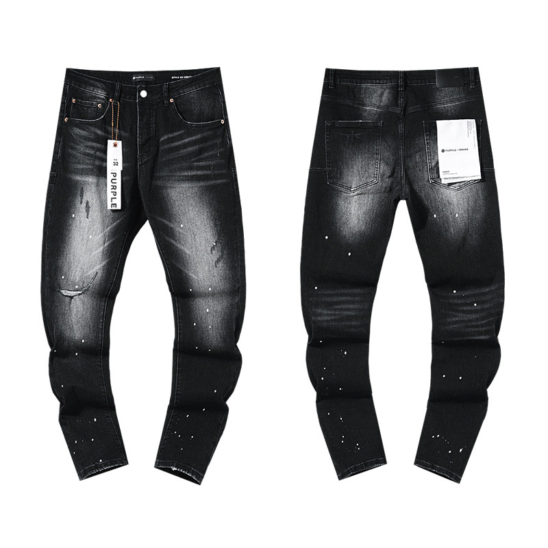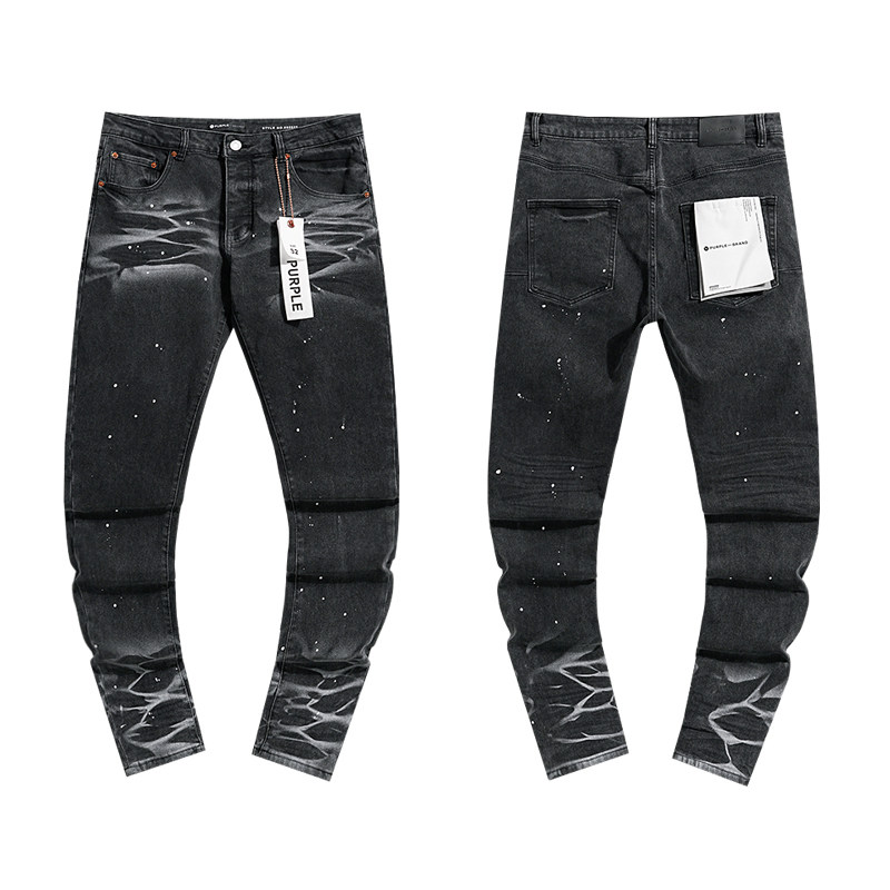 Correct Version of Purple Brand Stretch Jeans, High Street Style Long Pants, Ripped and Splattered Ink Pants, Distressed Pants
