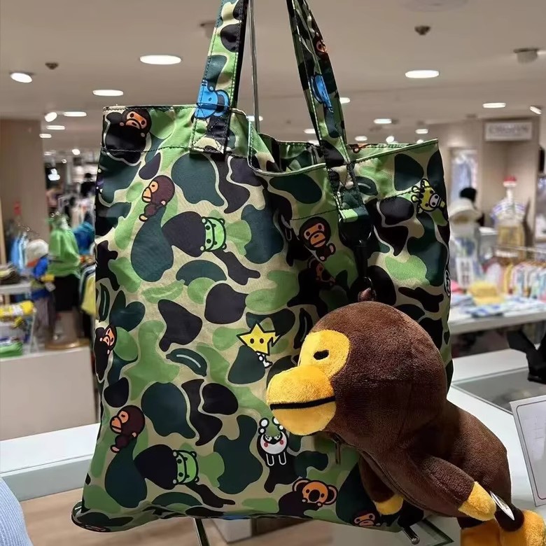 Baby Milo Tote Bag, Same Style as the Homebody Girl, Green Camouflage Little Monkey Pattern, Can Be Stored, Eco-Friendly Bag, Handbag, Shoulder Bag