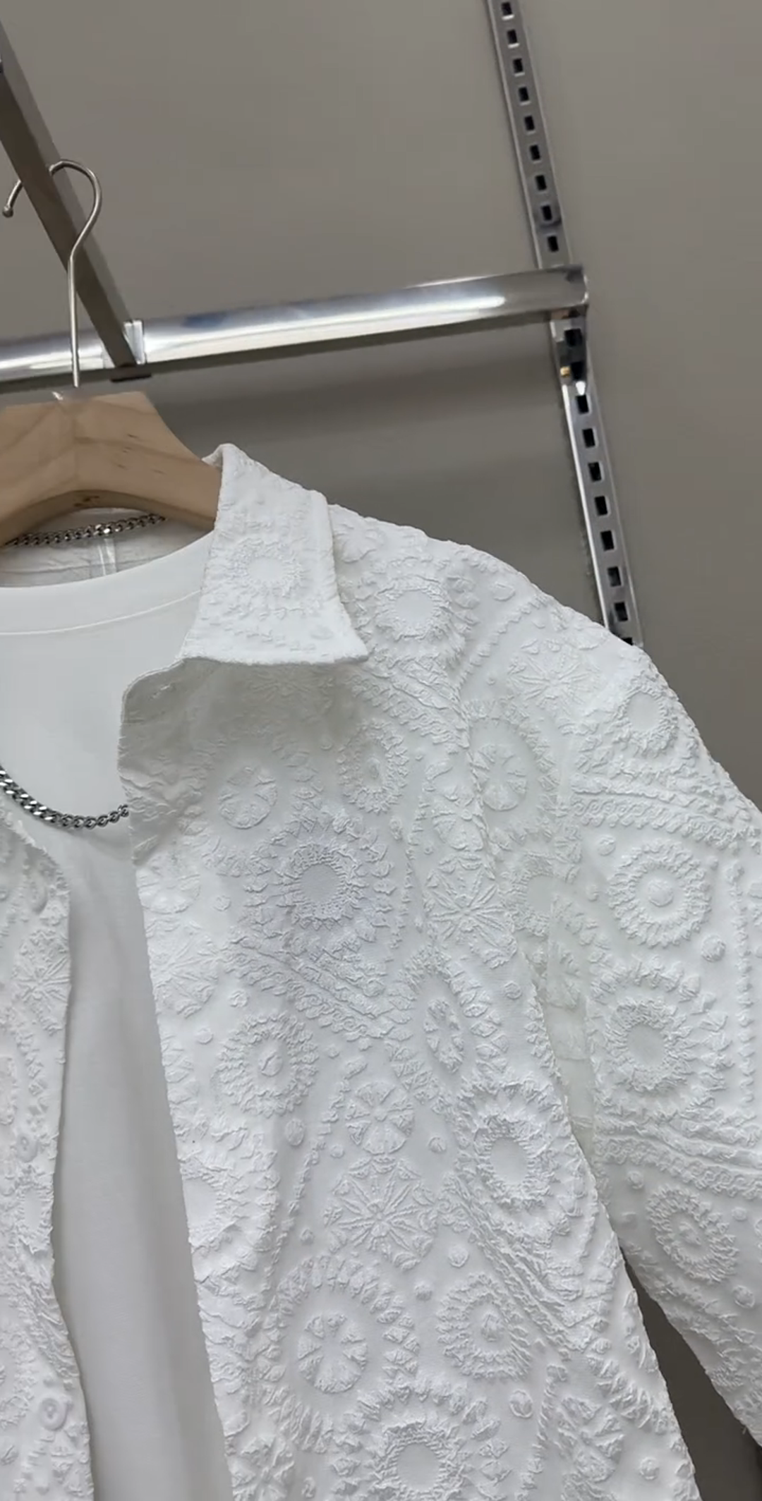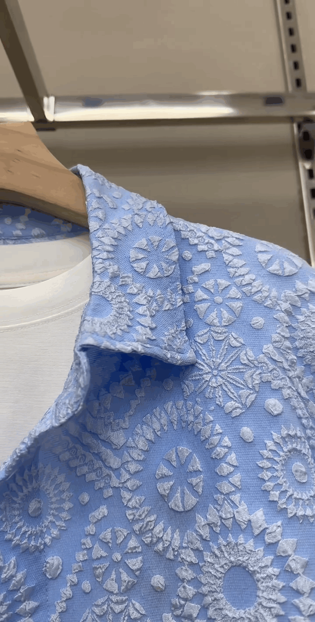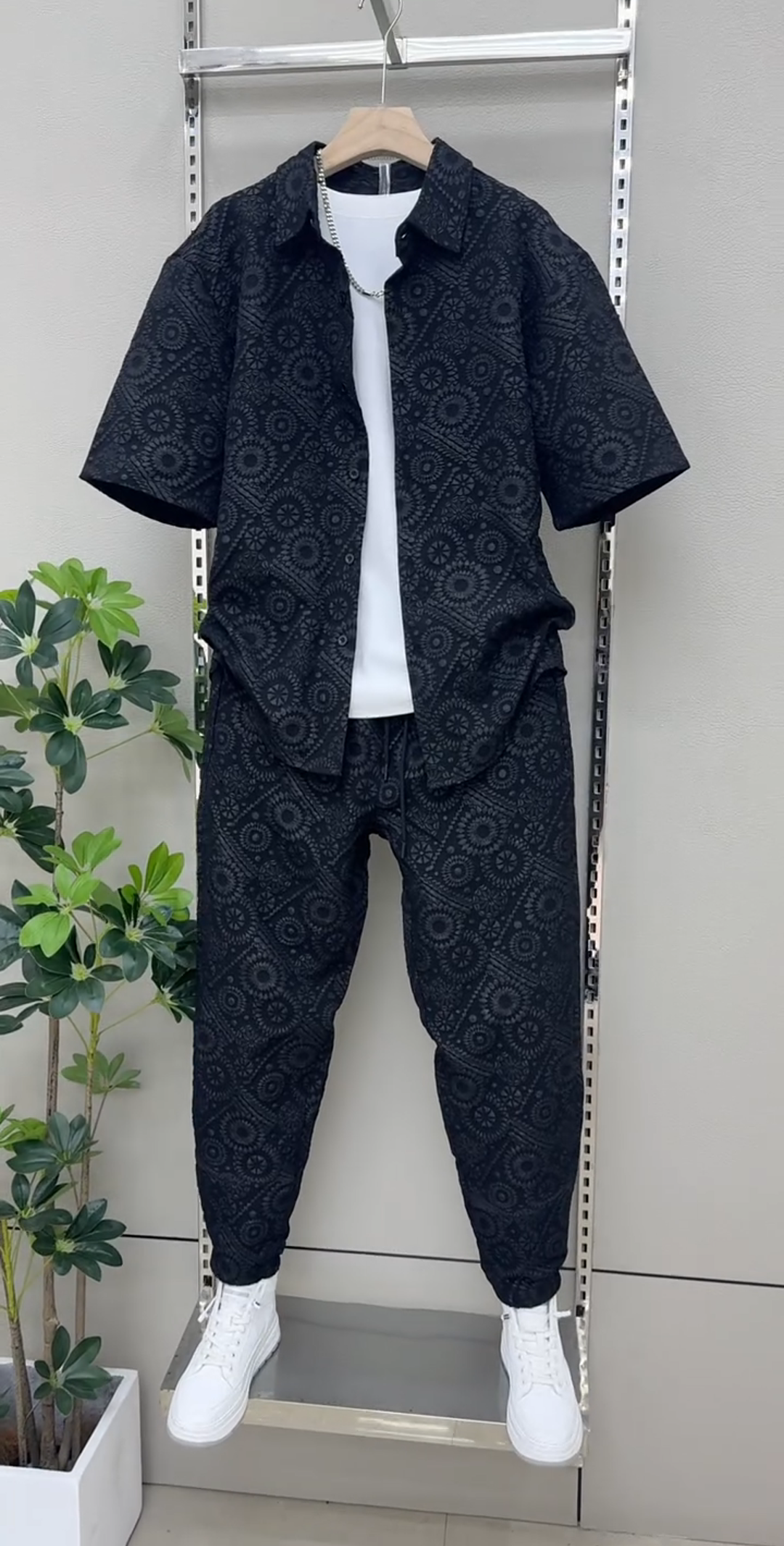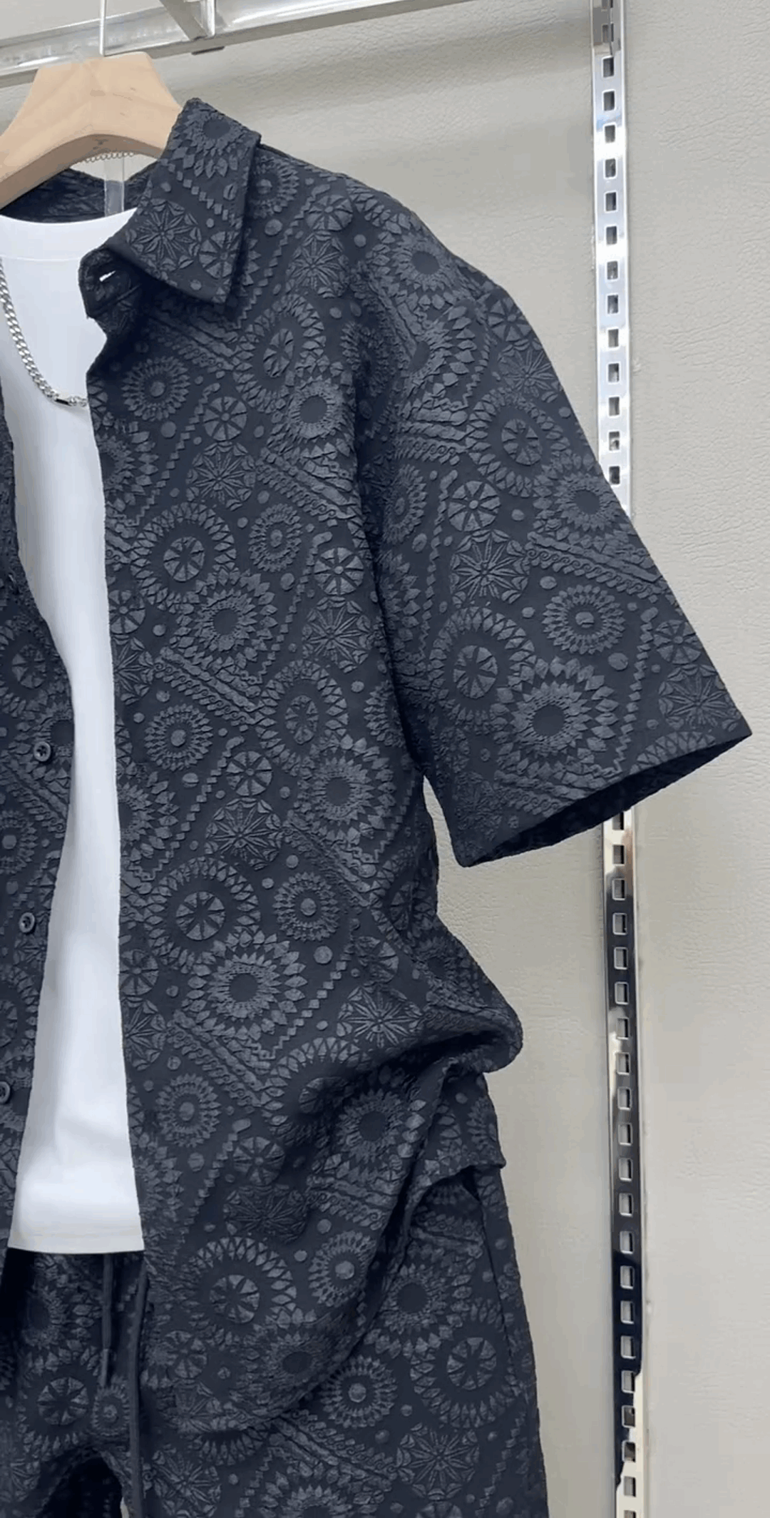 Summer Thin Men's Lapel Chanel-Style Embossed Suit with Shorts, Short-Sleeved, Fashionable, Loose Two-Piece Set, Long Pants, Couple Style