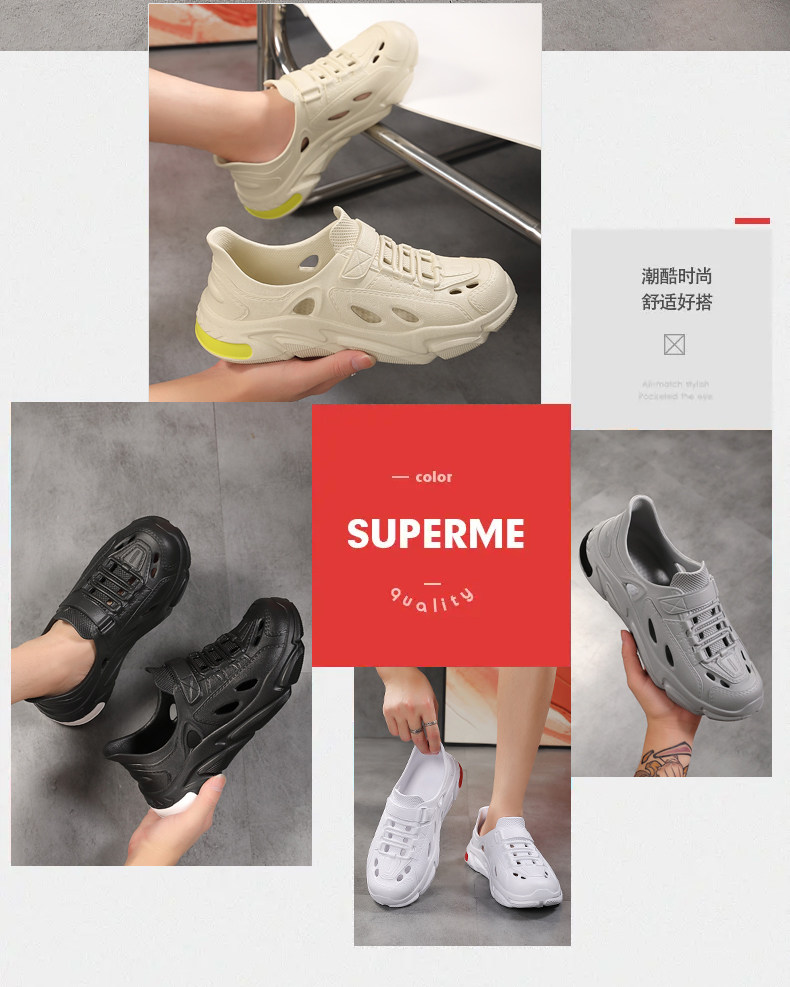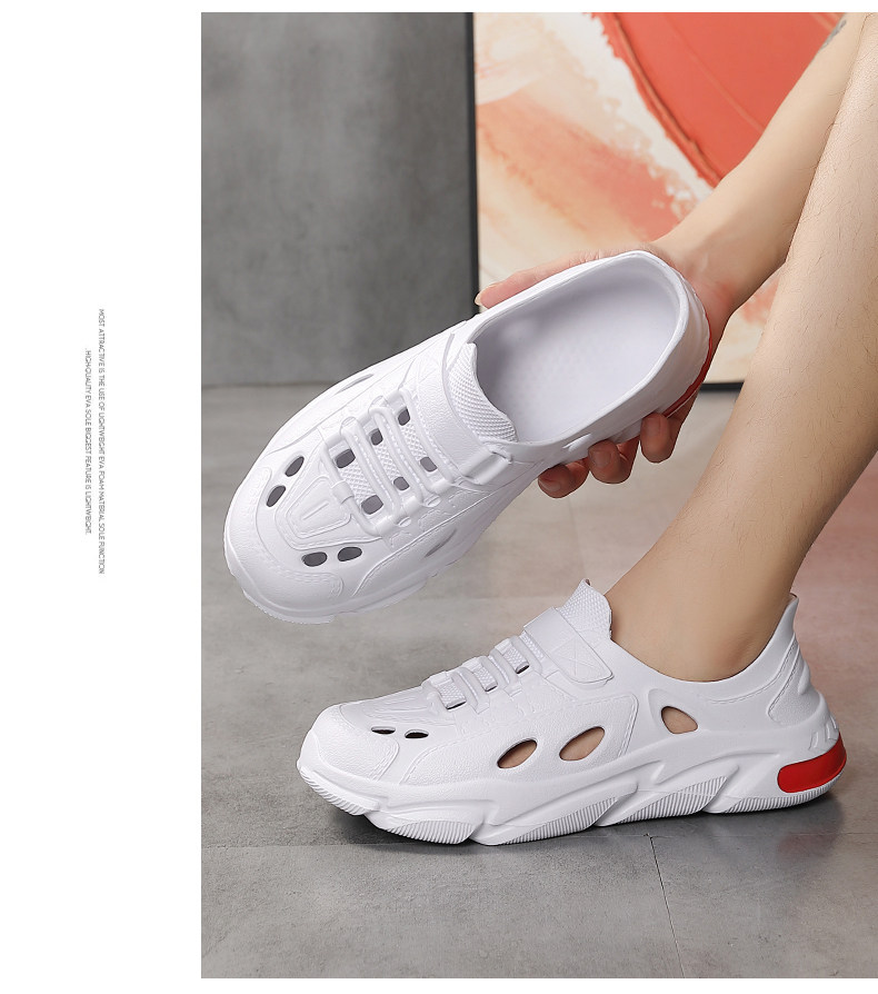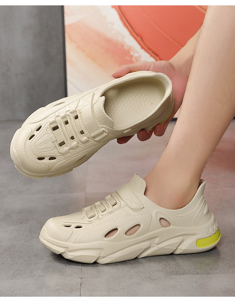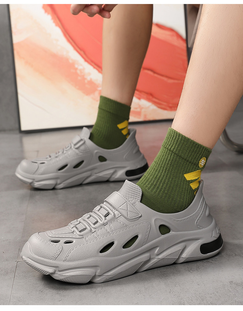 Men's Summer Clogs for Outdoor Wear, Odor-Resistant, Non-Slip, Thick-Soled, Sporty, Water-Resistant, Full-Coverage, Trendy Beach Sandals