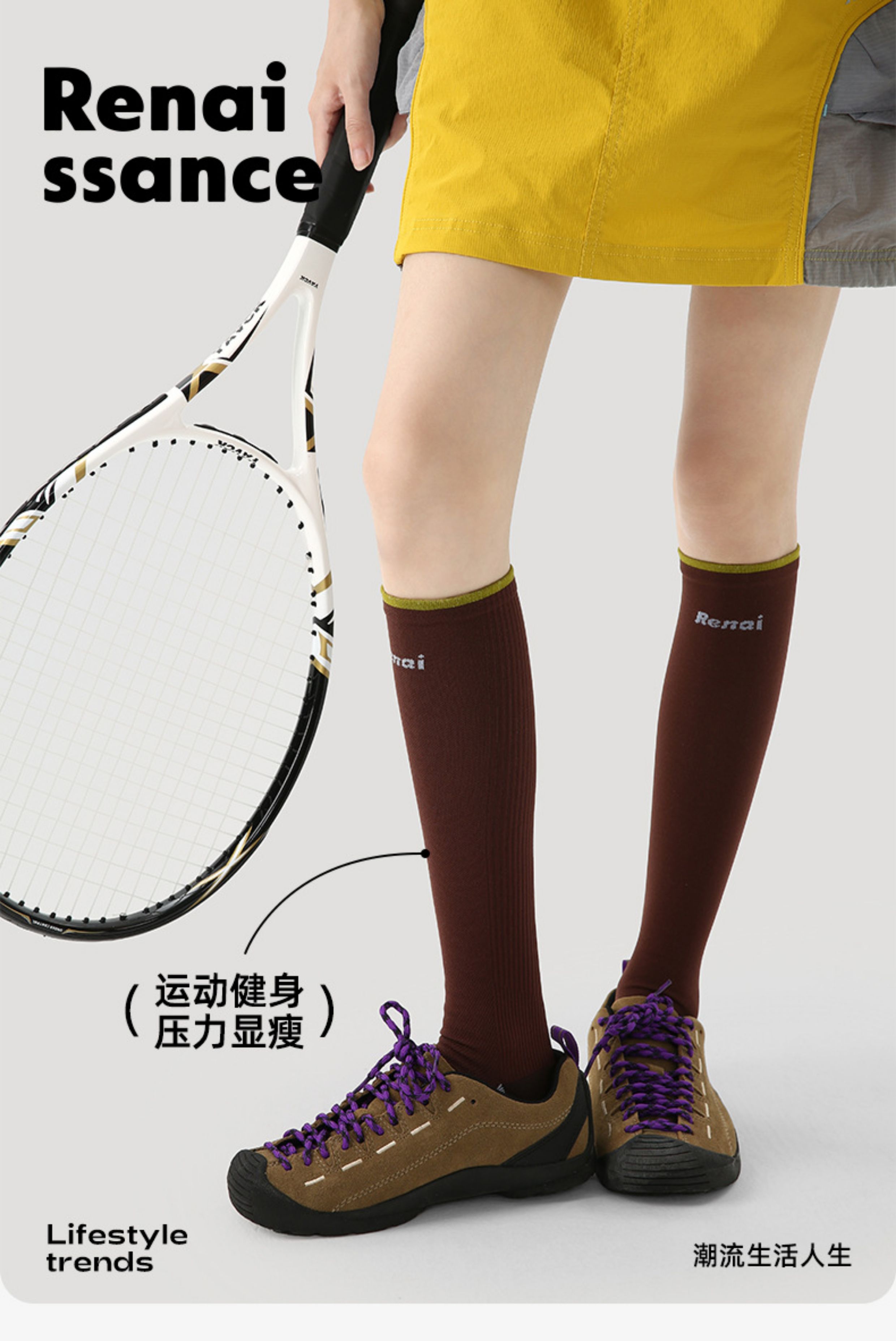 Renaissance Compression Sports Socks for Women, Mid-Calf Length, Suitable for Fitness, Running, Jump Rope, Yoga, Slimming Legs, Calf Compression Socks