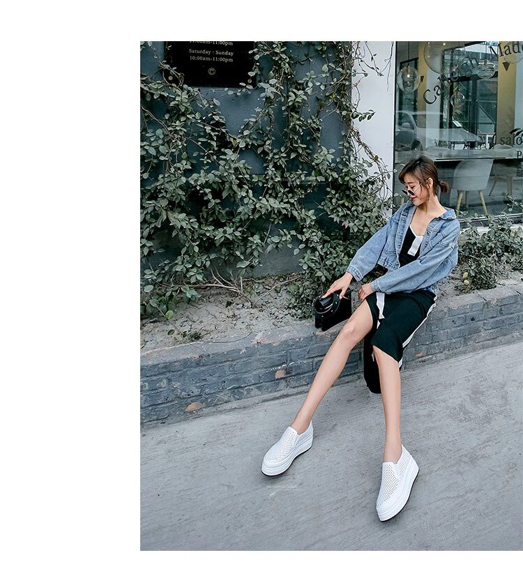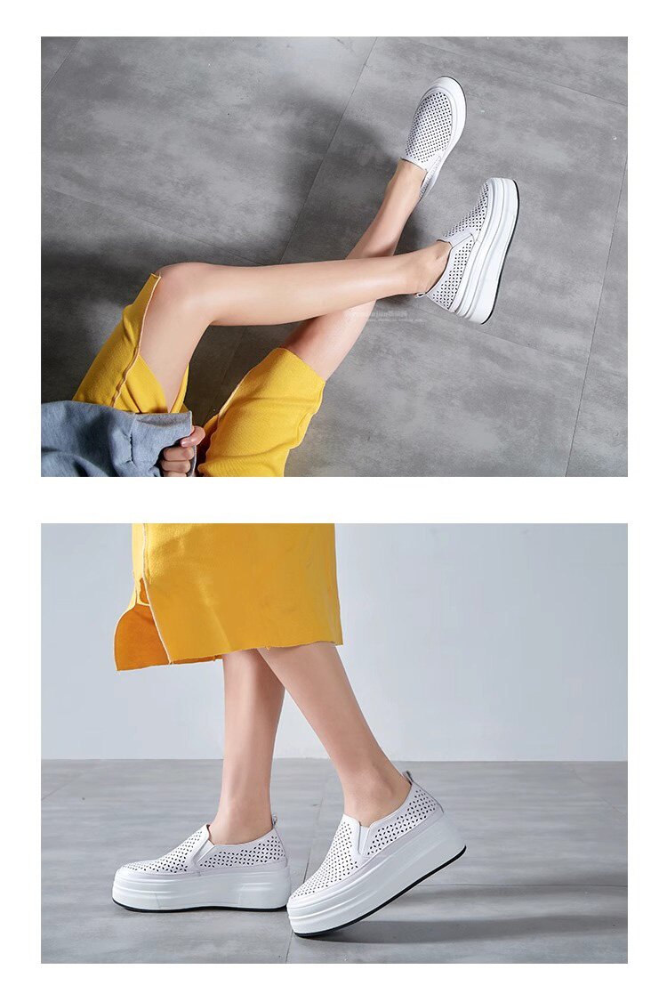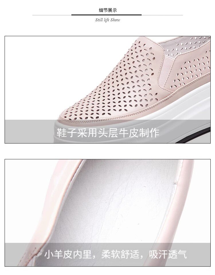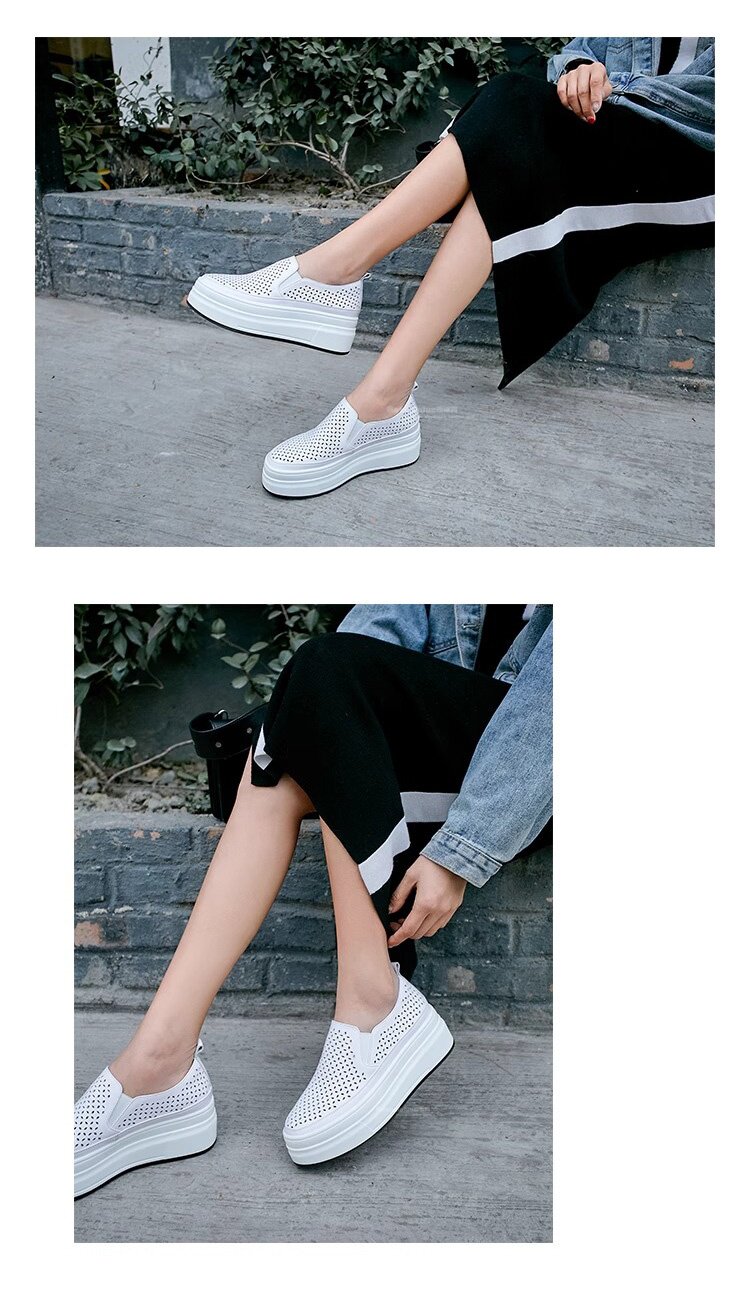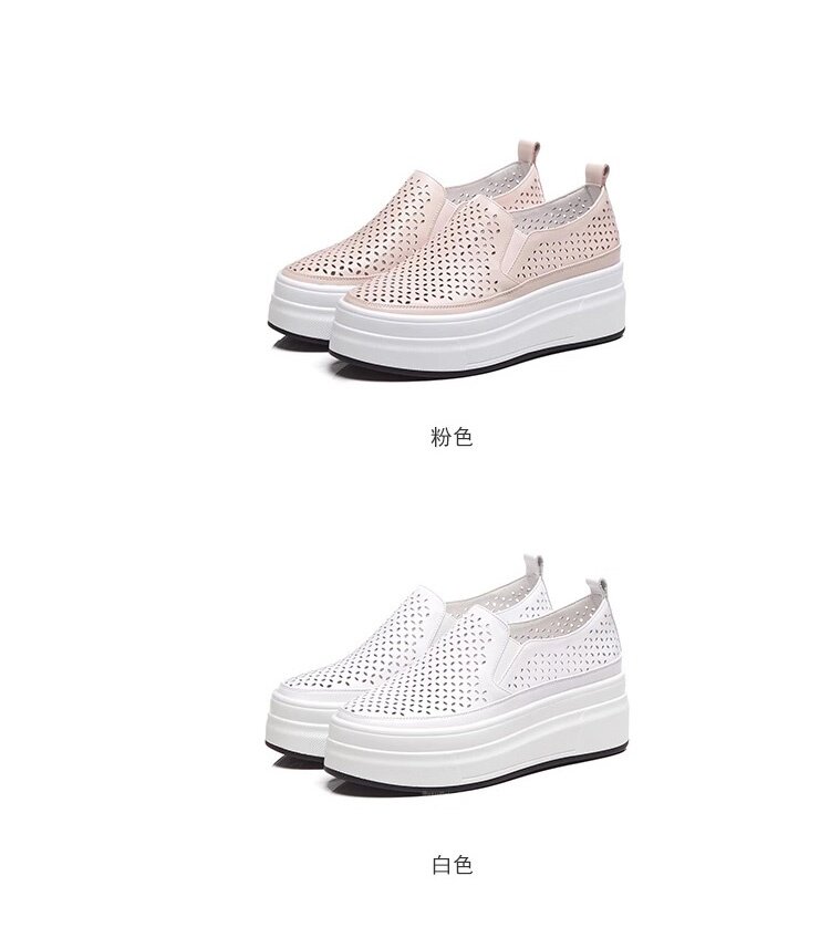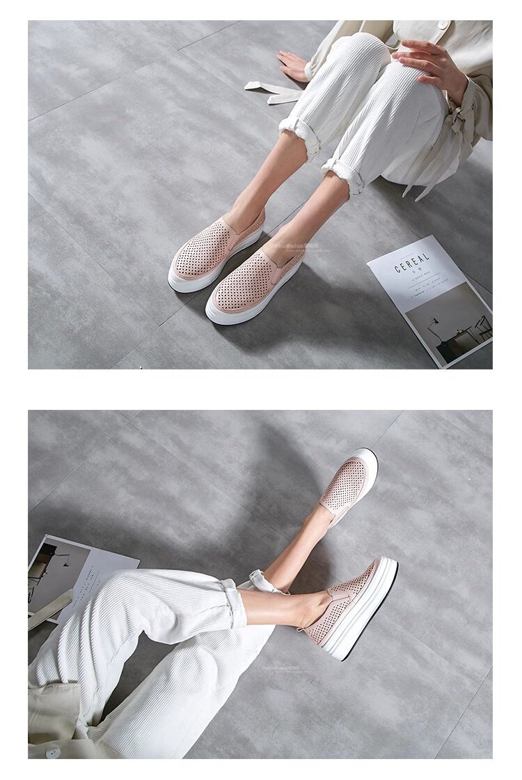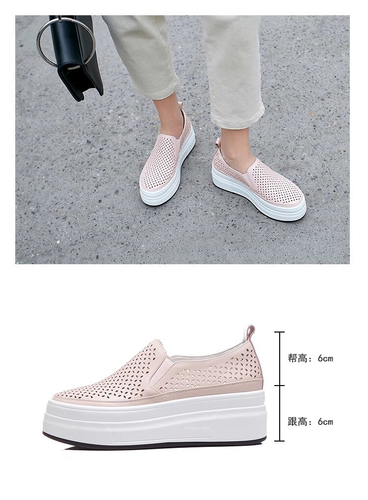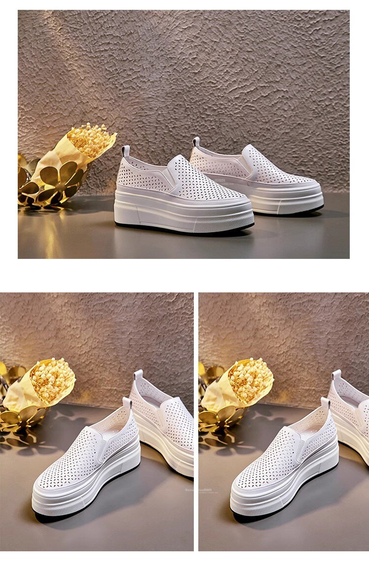 Hong Kong Genuine Leather Hollow-Out White Shoes for Women 2026 Summer New Slip-On Thick-Soled Loafers Versatile Breathable Casual Shoes