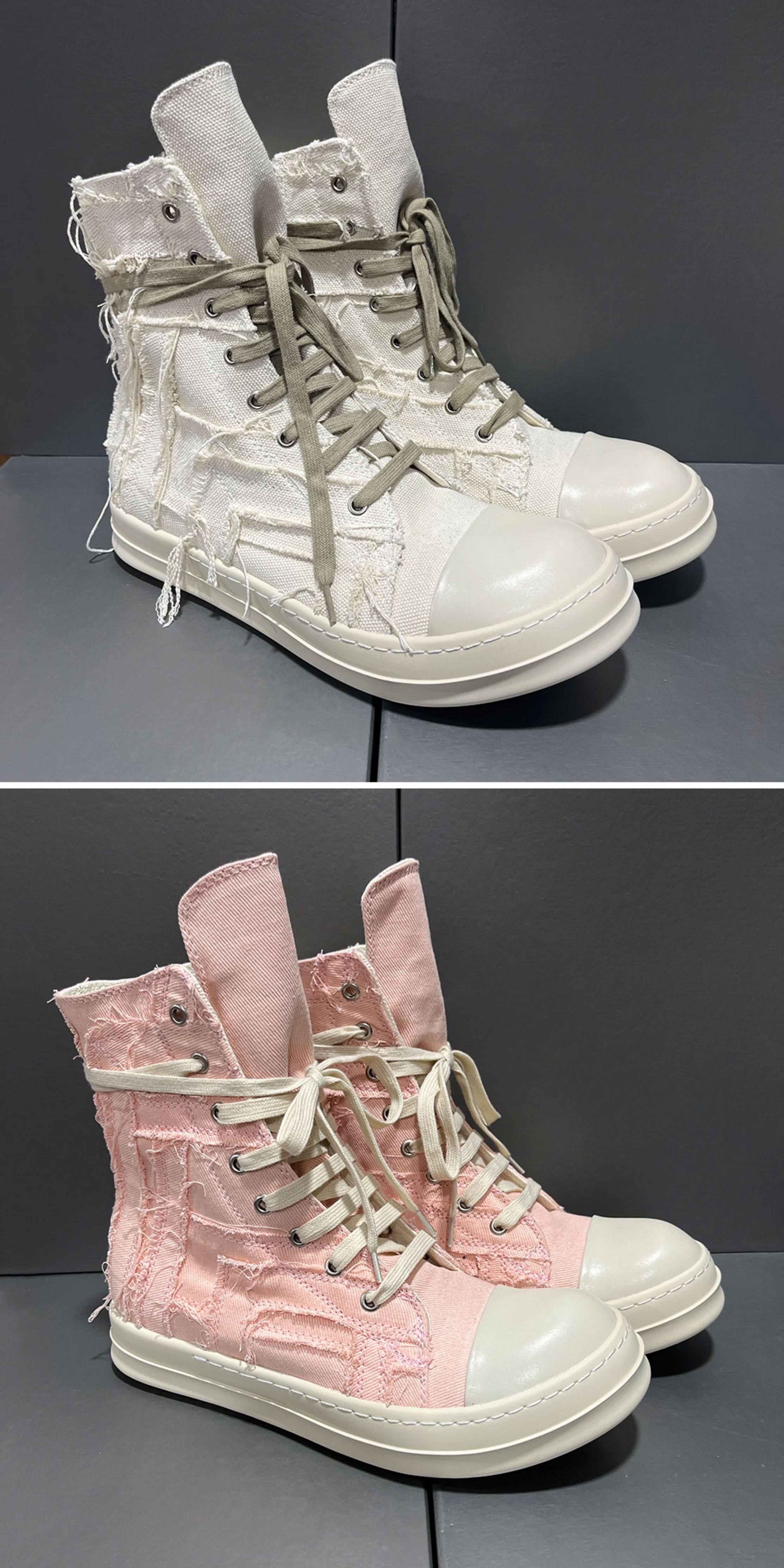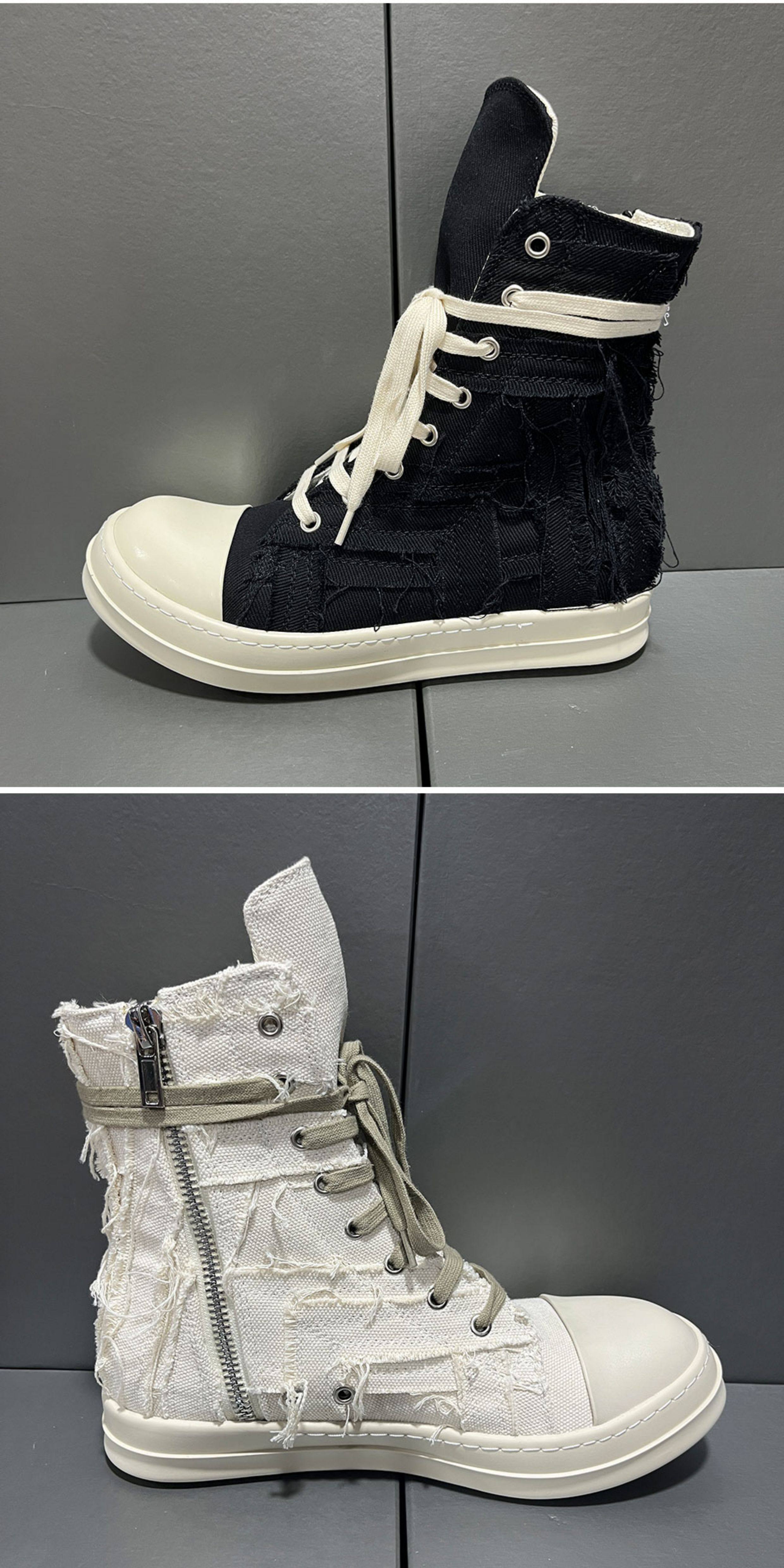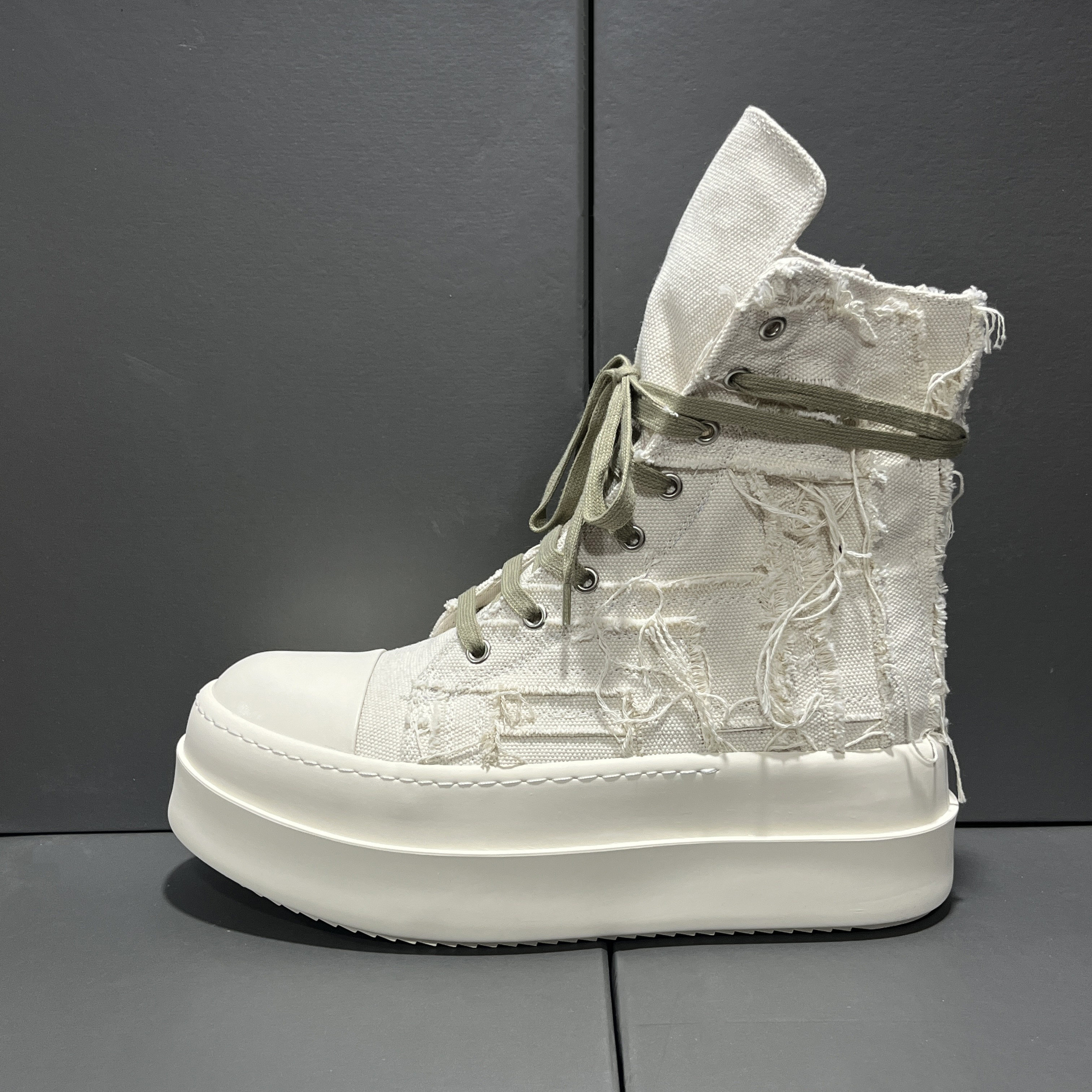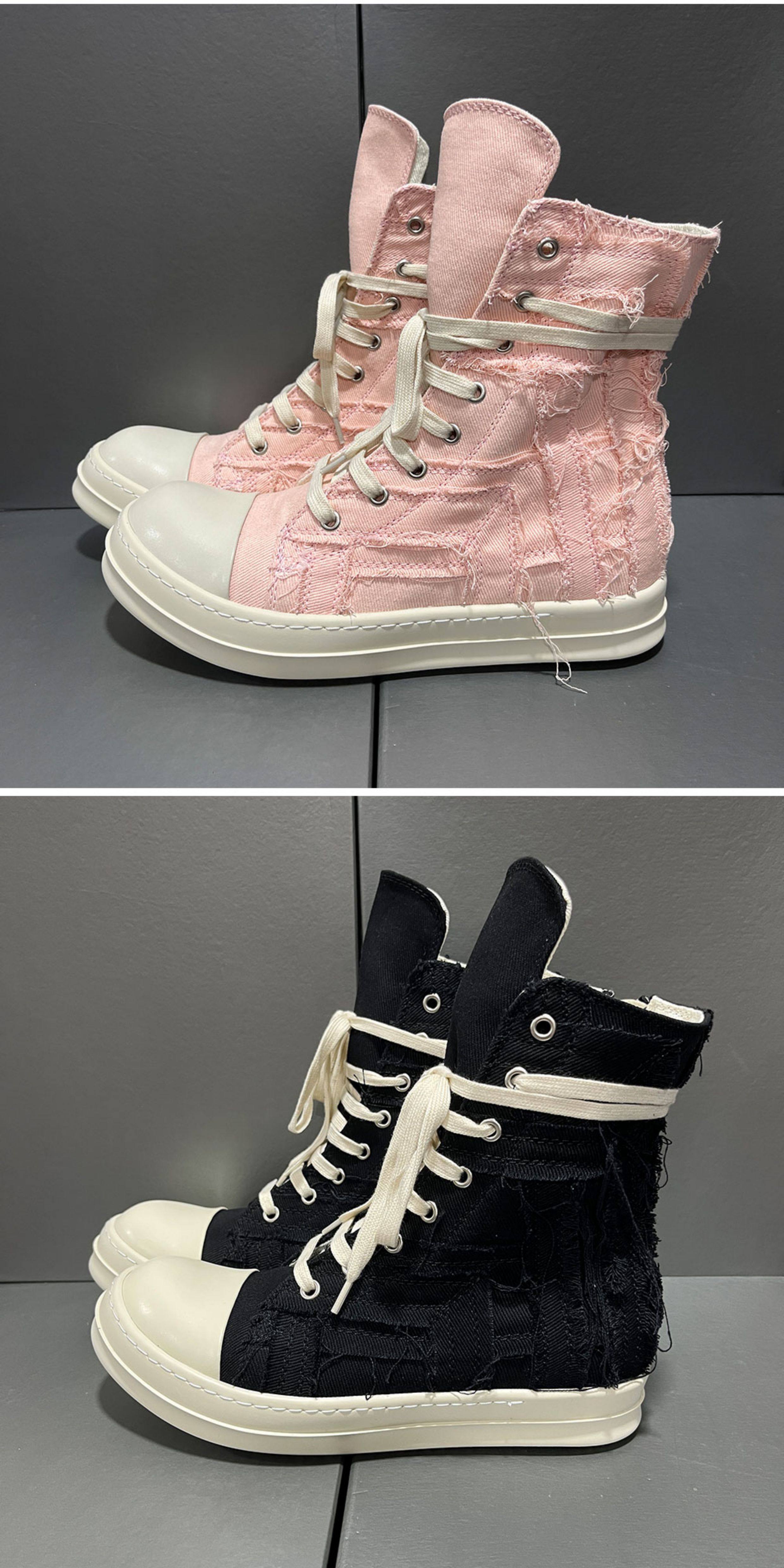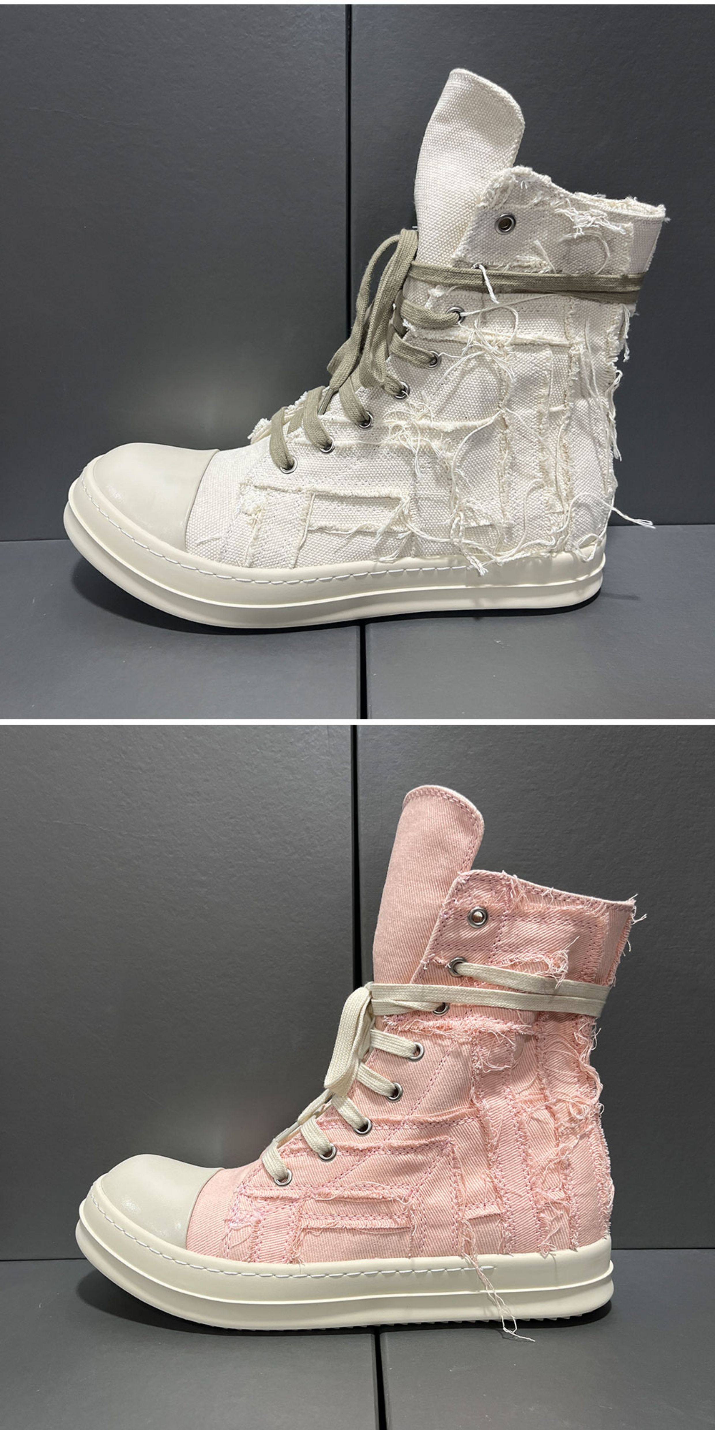 2025 New Style Tassel Distressed High-Top Canvas Thick-Soled Casual Curved Line Trendy European and American Height-Increasing Couple Shoes