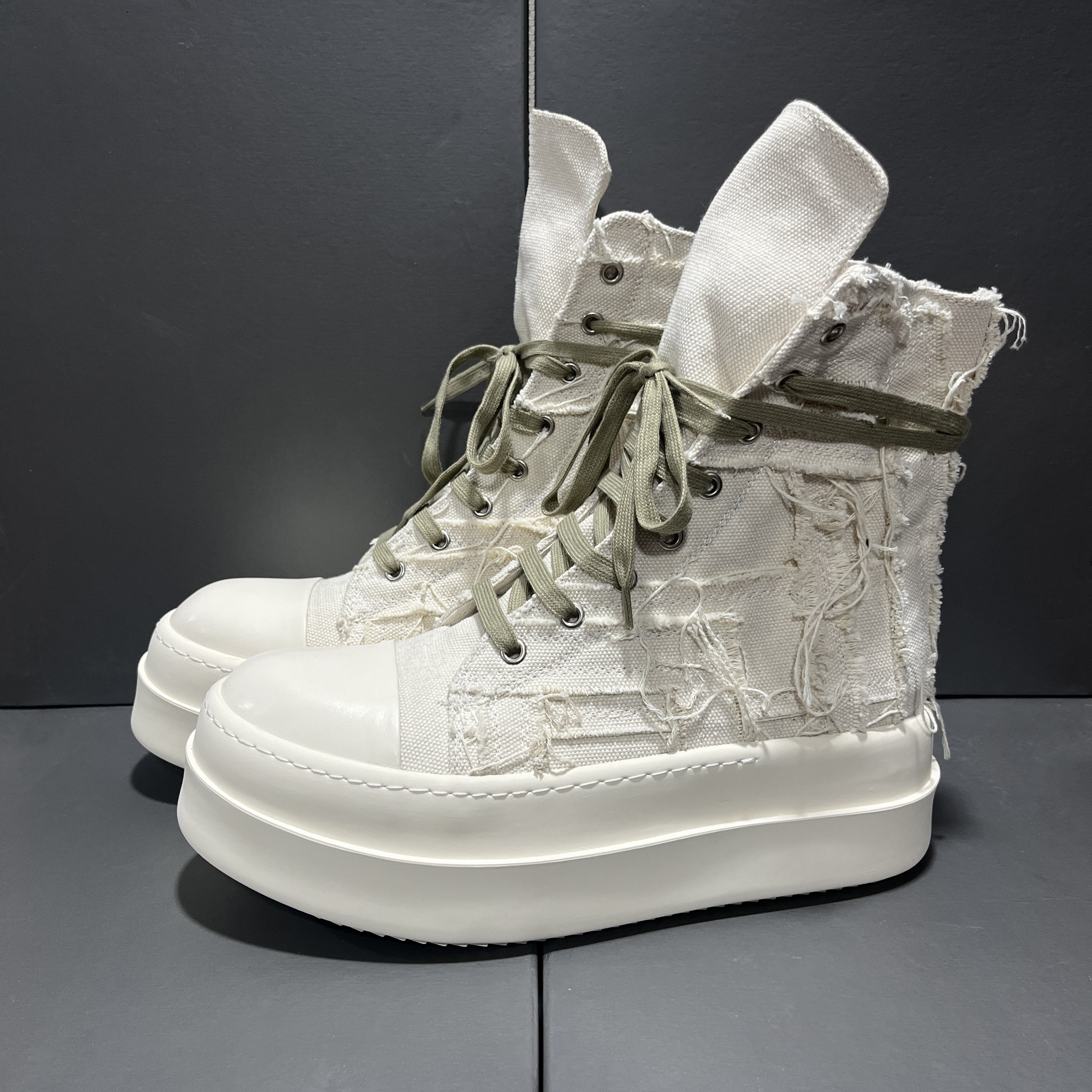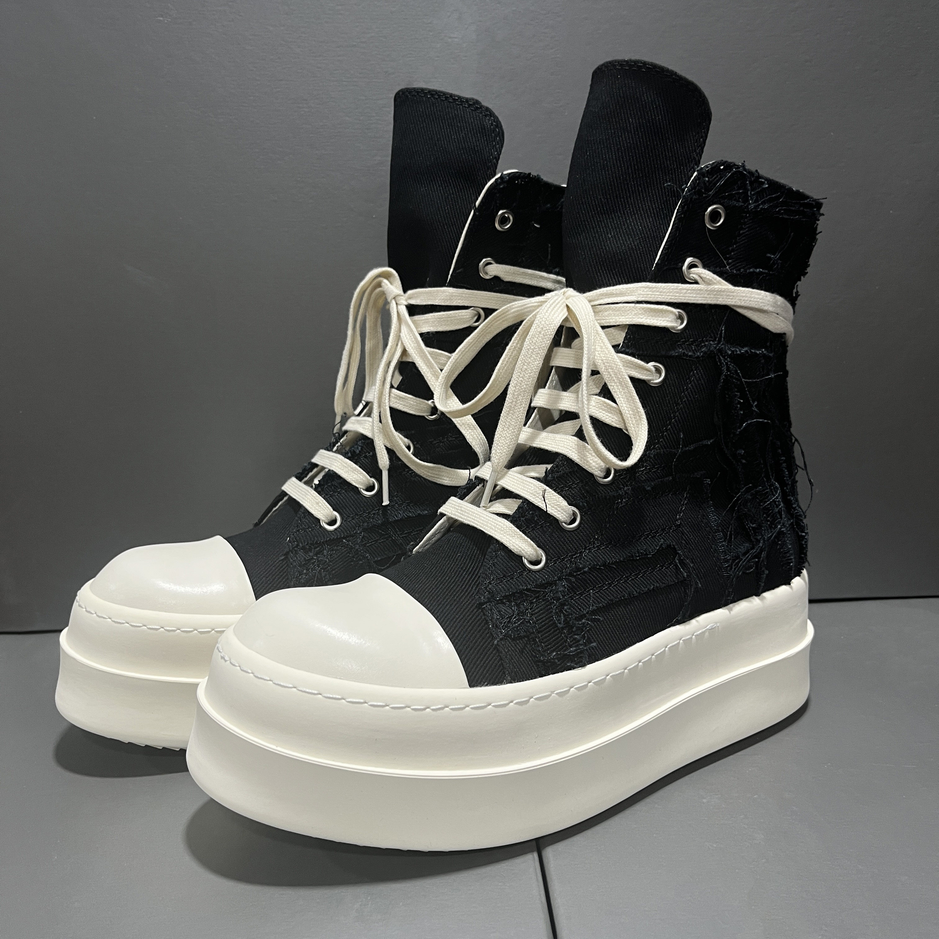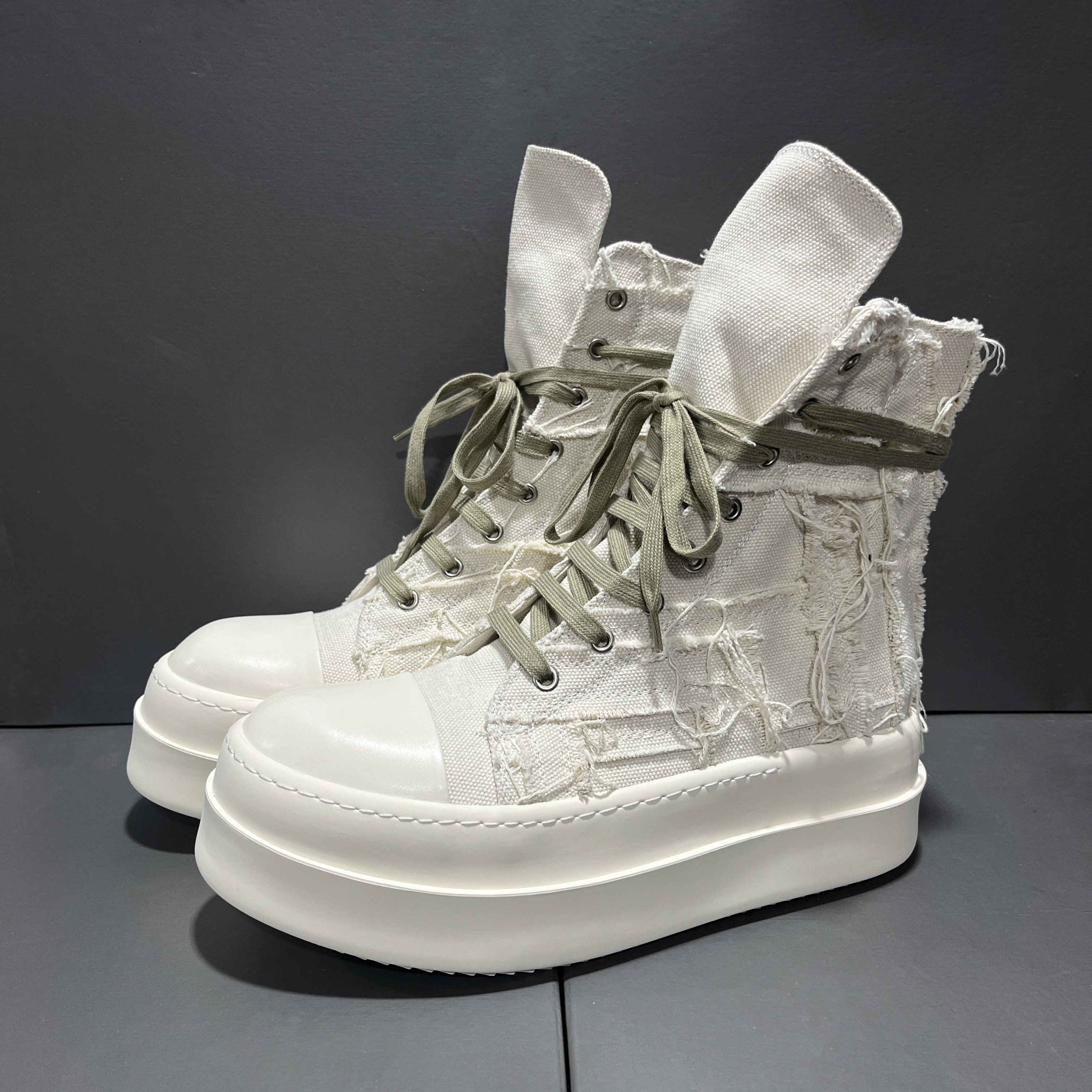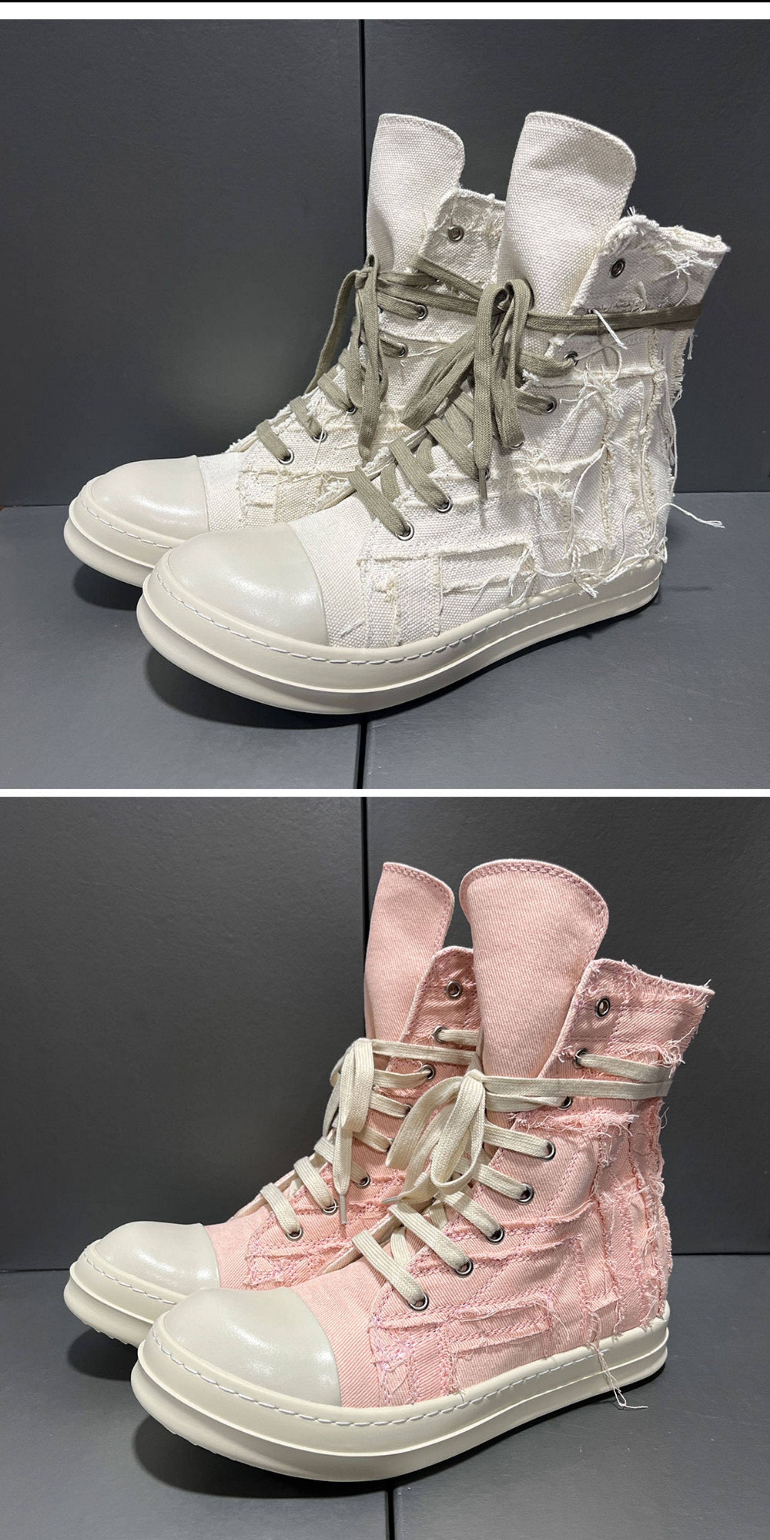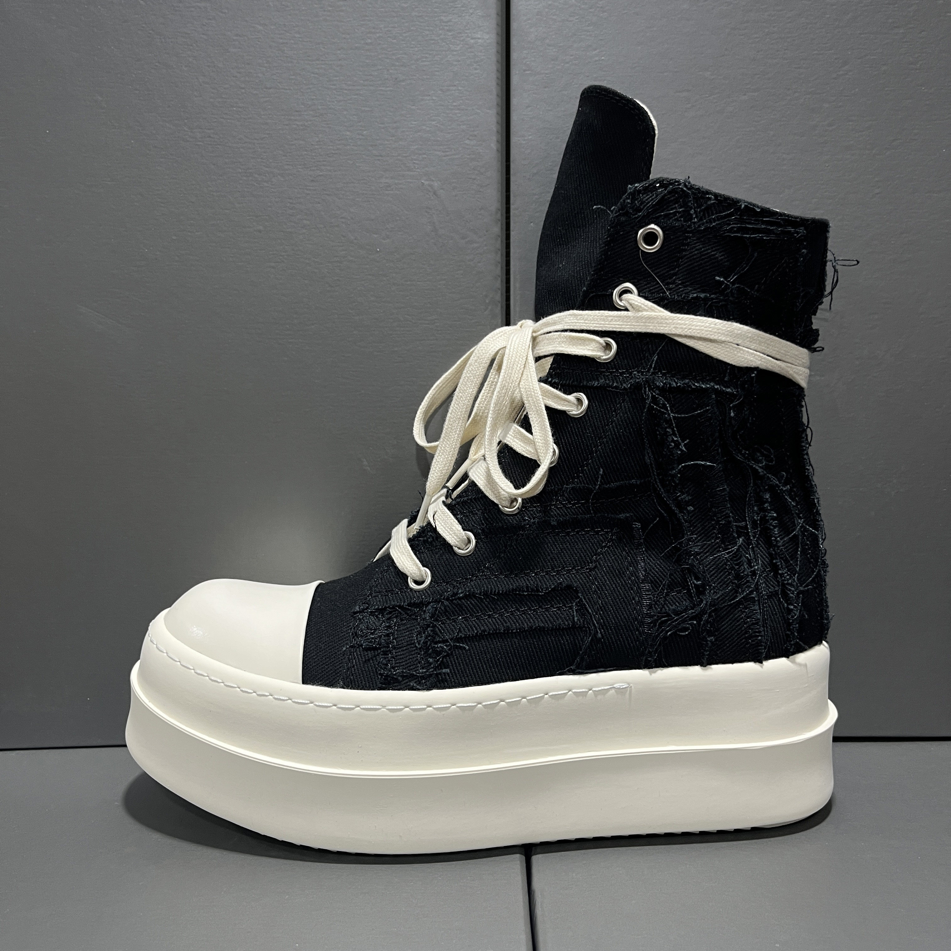 2025 New Style Tassel Distressed High-Top Canvas Thick-Soled Casual Curved Line Trendy European and American Height-Increasing Couple Shoes