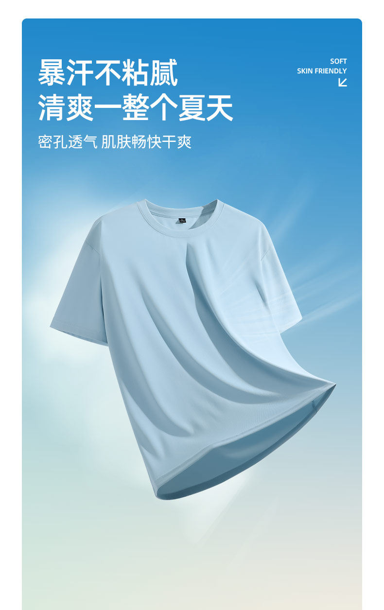 Pull-Back Quick-Drying Men's T-Shirt 2026 New Summer Thin Men's Ice Silk Short-Sleeved Cool Breathable Sports Top Trendy Q