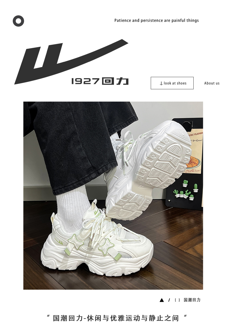 Hui Li Official Flagship Store Matcha Green Dad Shoes Women's Shoes 2025 Autumn New Casual Lightweight Sports Shoes for Women