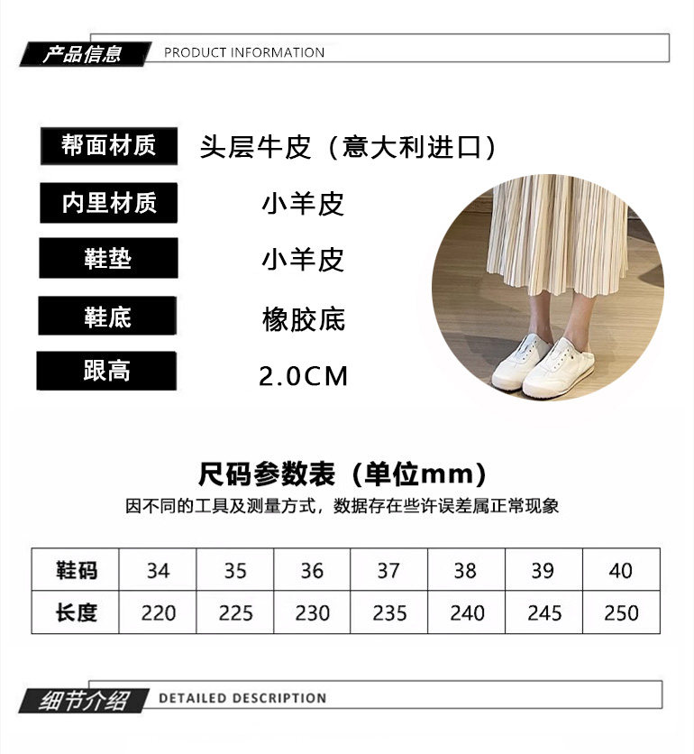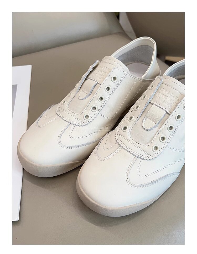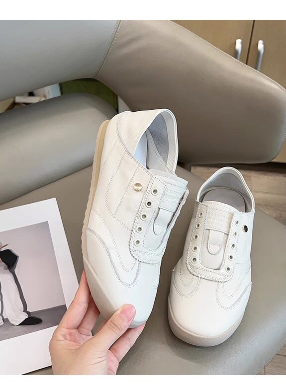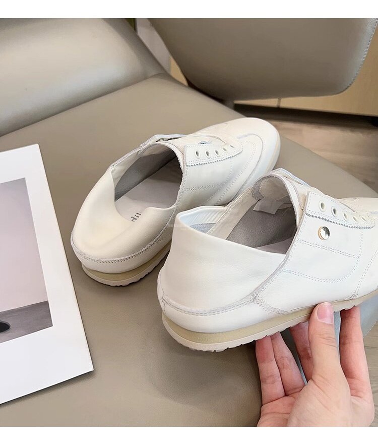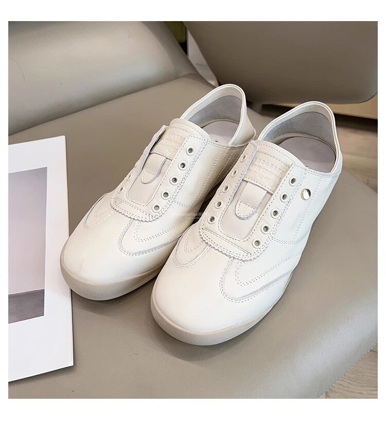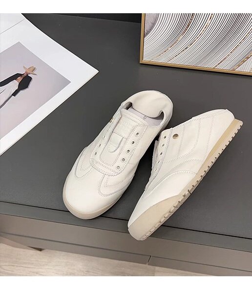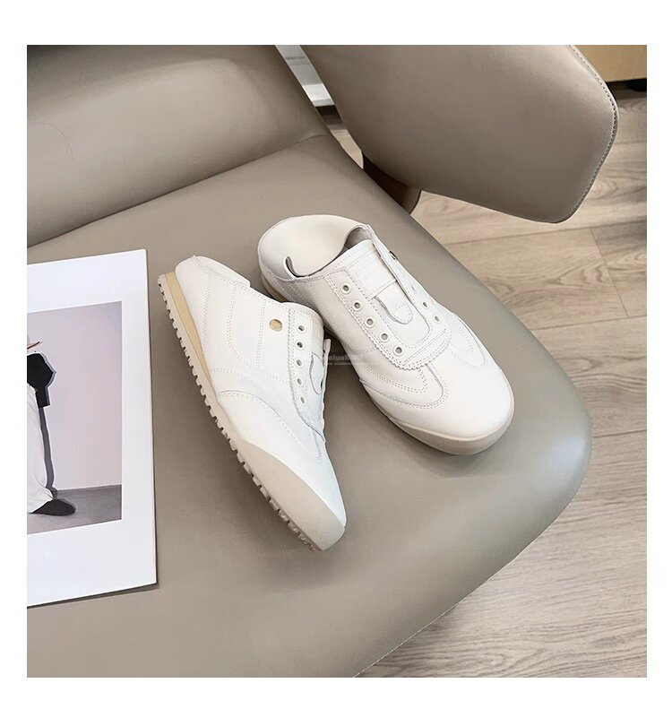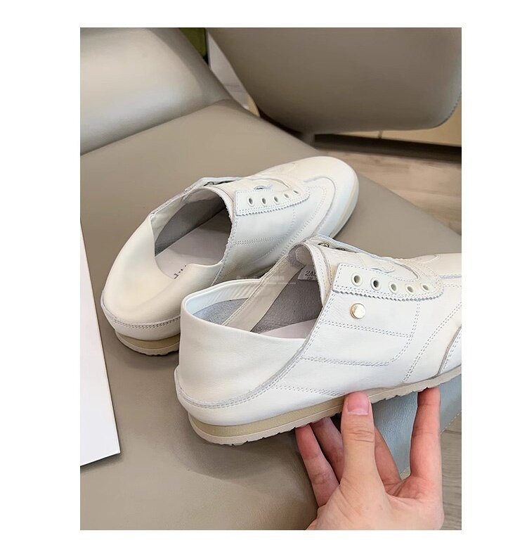 Hong Kong Genuine Leather Flat White Shoes for Women 2026 Summer New Slip-On Commuter Sneakers Two-Way Casual Shoes