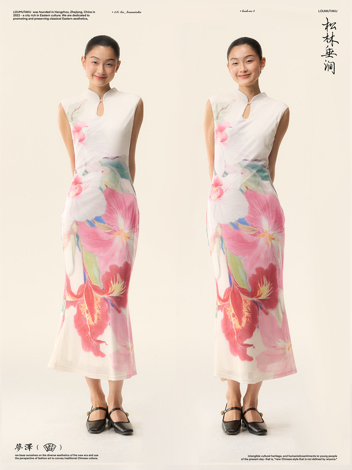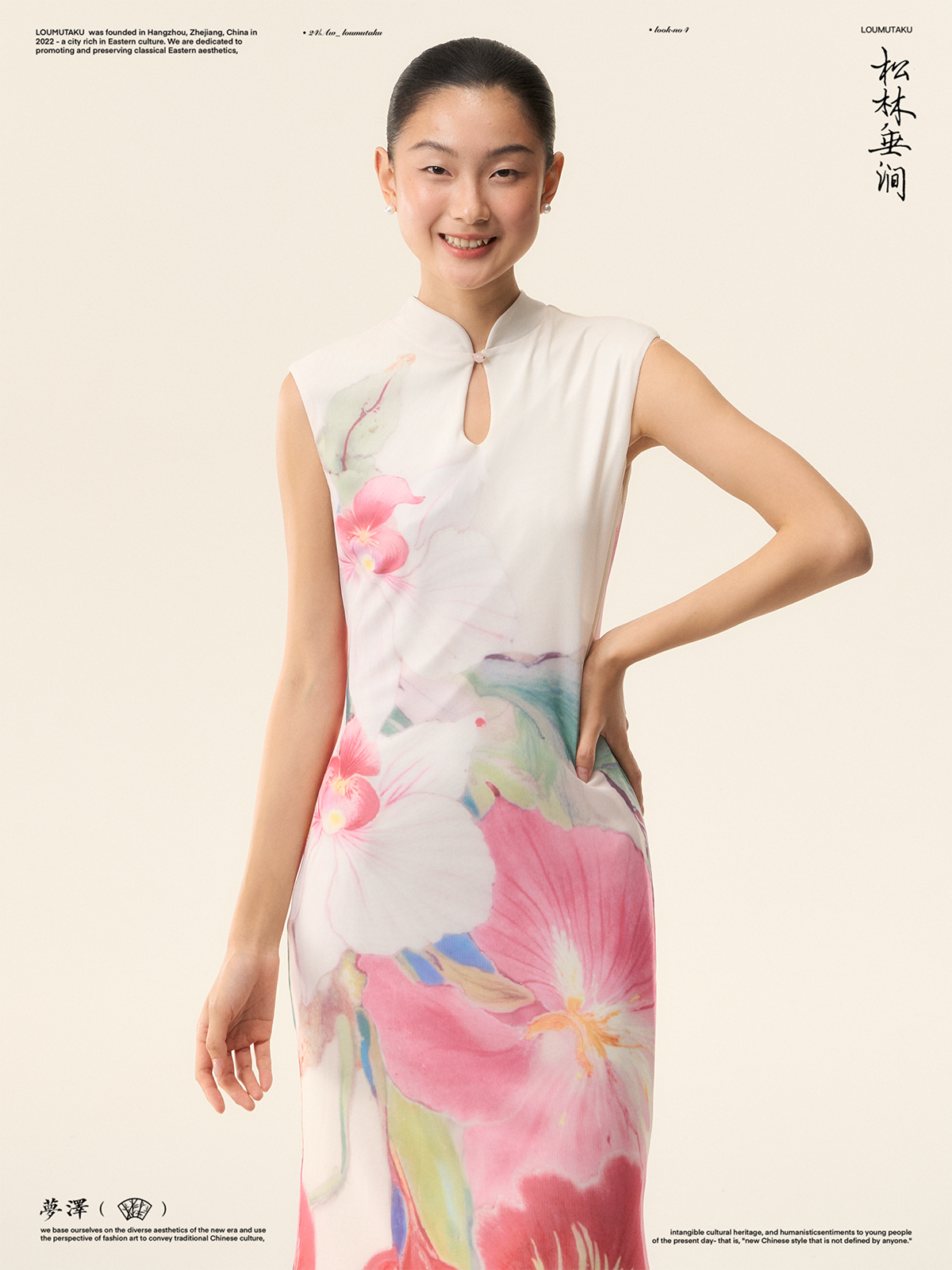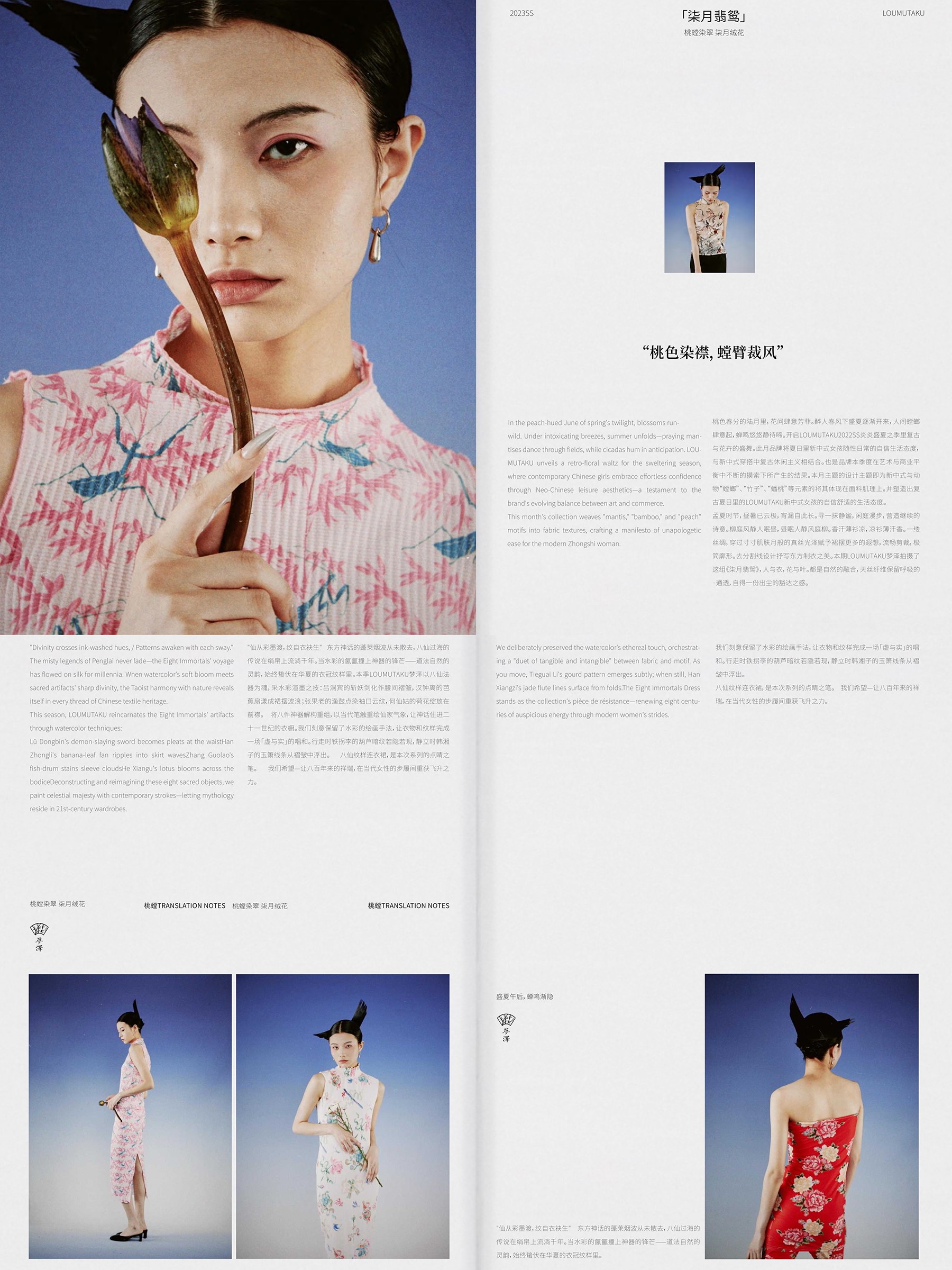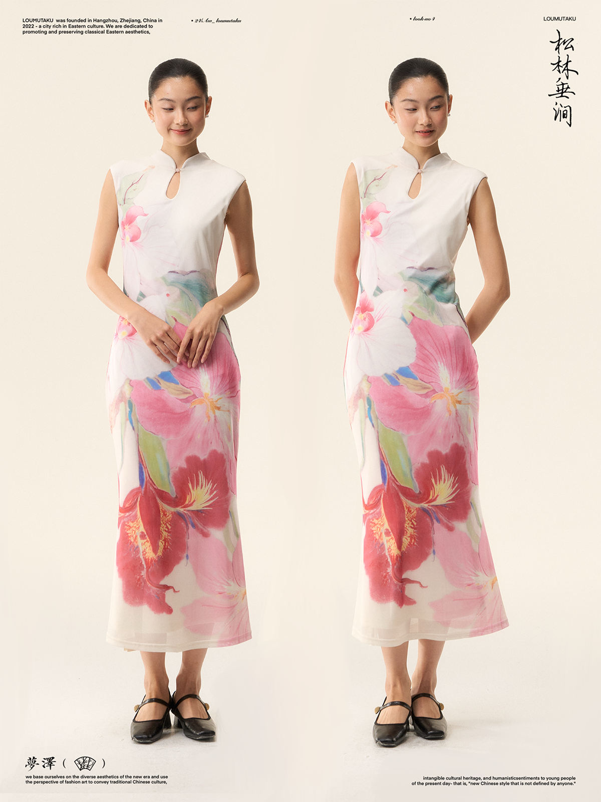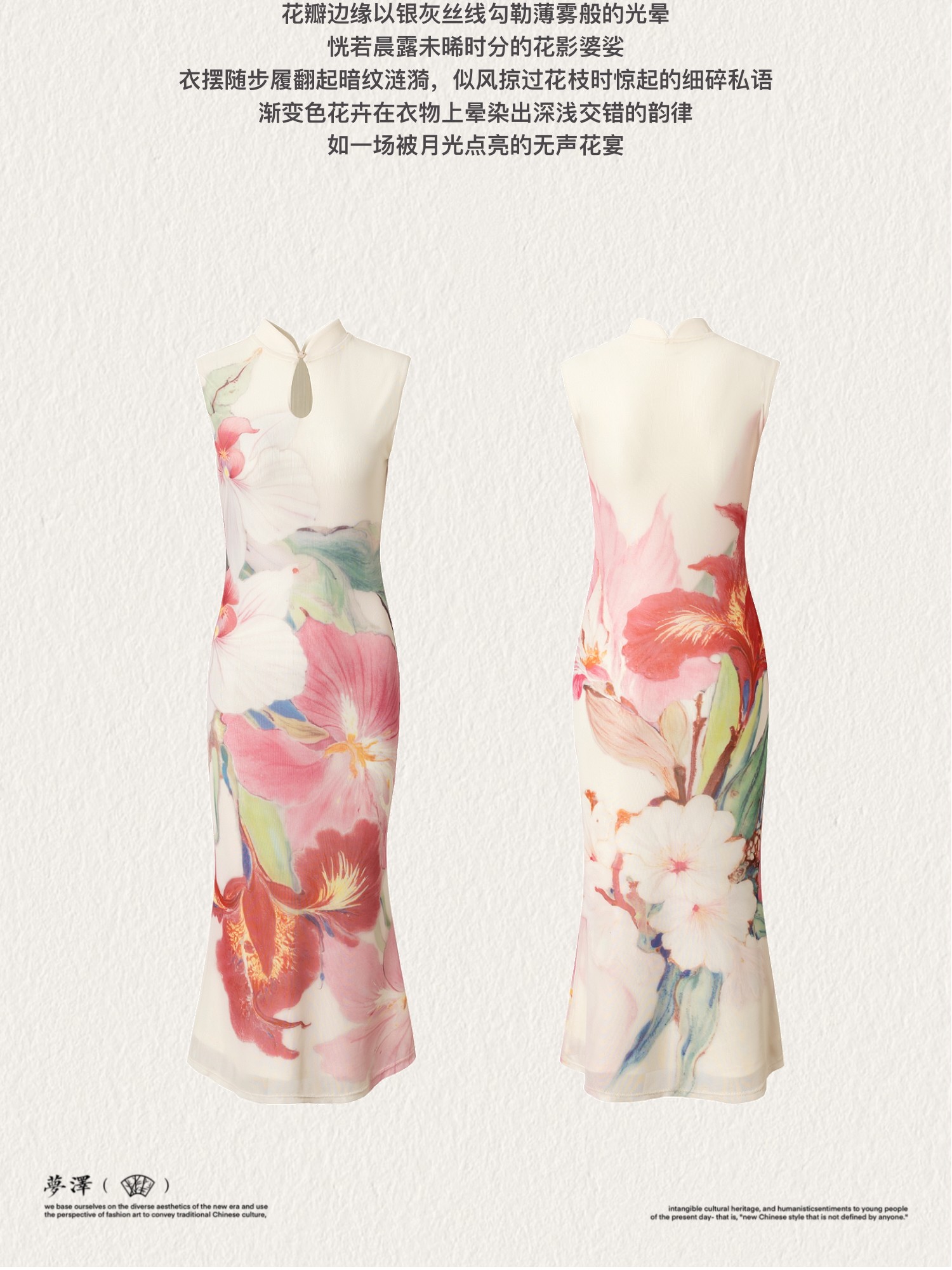 Loumutaku Mengze's "Flowers in Layers of Rhythm" New Chinese Style Double-Sided Floral Cheongsam Dress for Women in Summer